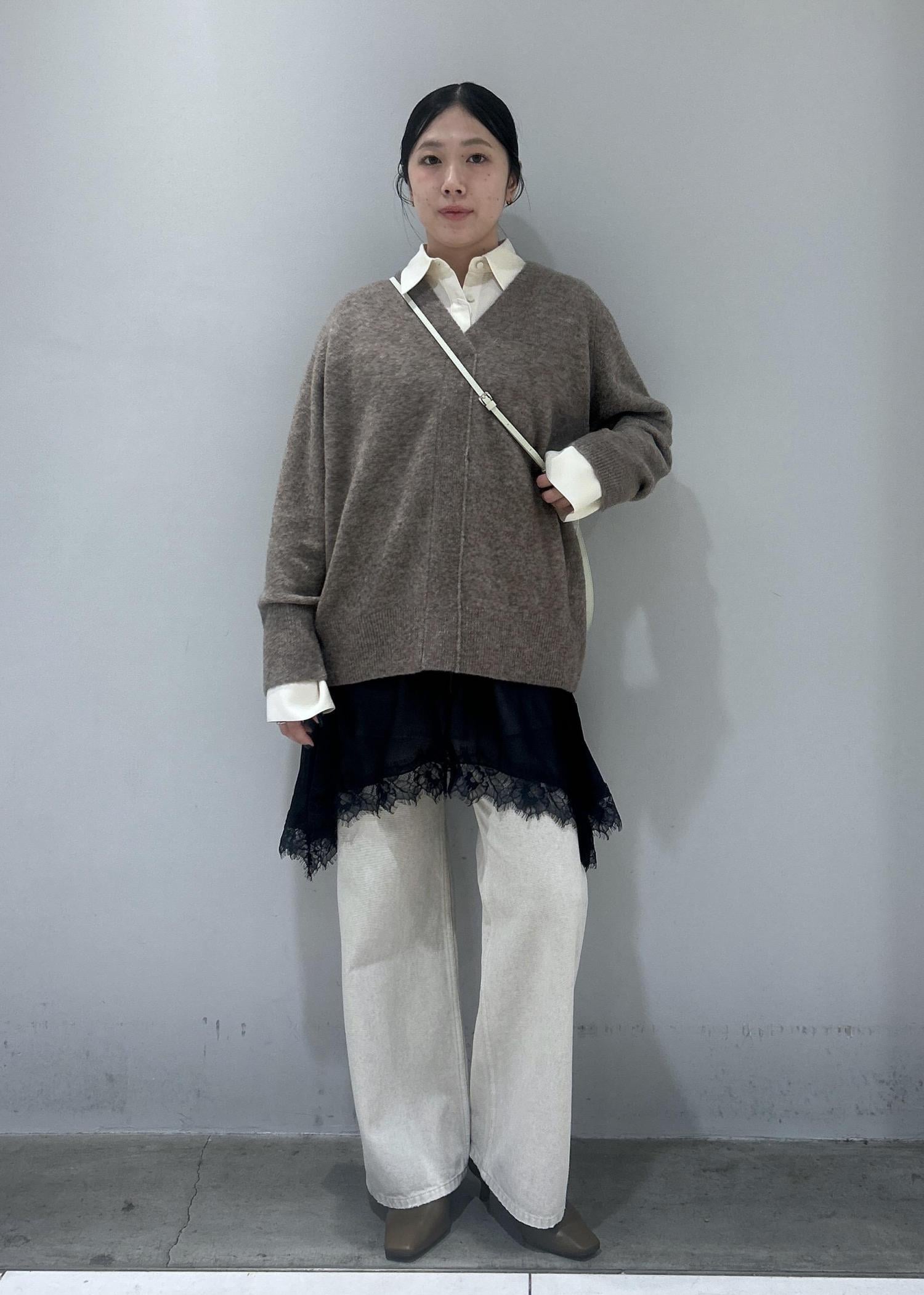 本日は【LINEAPIU ヤクMIX Vネックプルオーバー】を使った、レイヤードコーデです。