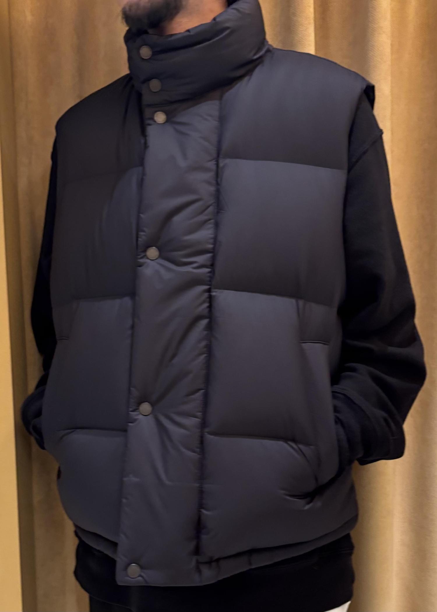 ニットの上からも、ジャケットの上からも自在に羽織れる超軽量ダウンベスト。