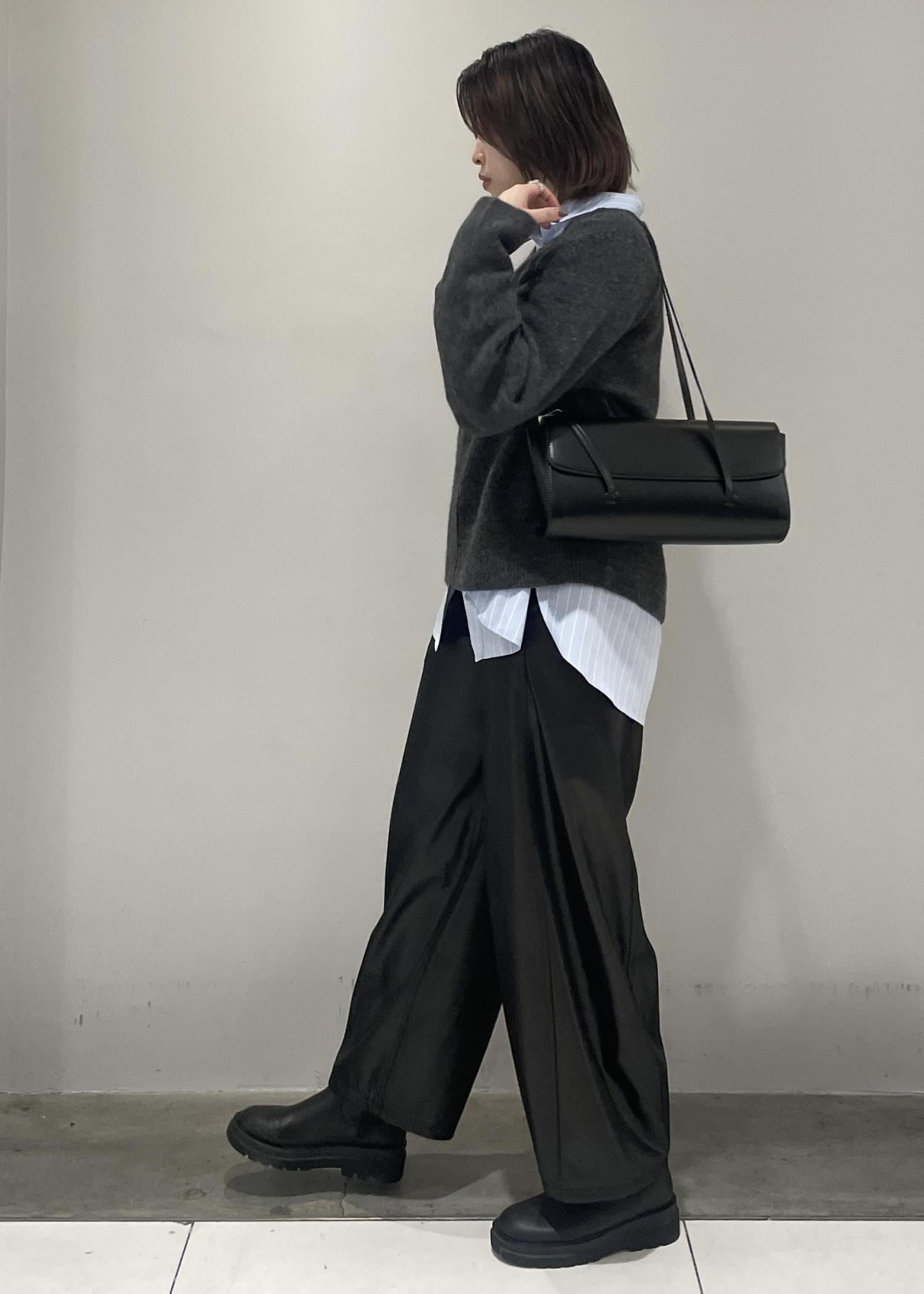 今回は、暖かさ抜群のLINEAPIU ヤクMIX Vネックプルオーバーを使ってモノトーンコーデを組んでみました♡
