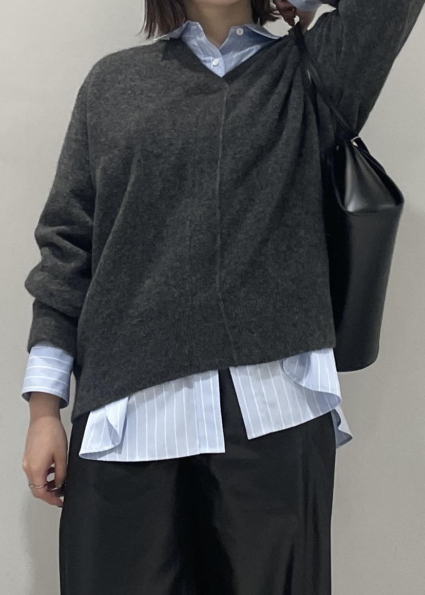 LINEAPIU ヤクMIX Vネックプルオーバーを使ったモノトーンコーデ