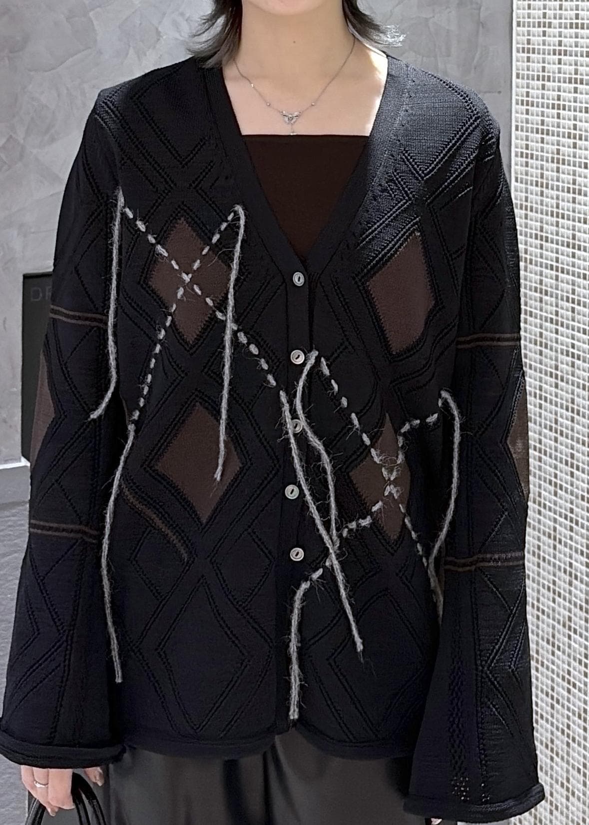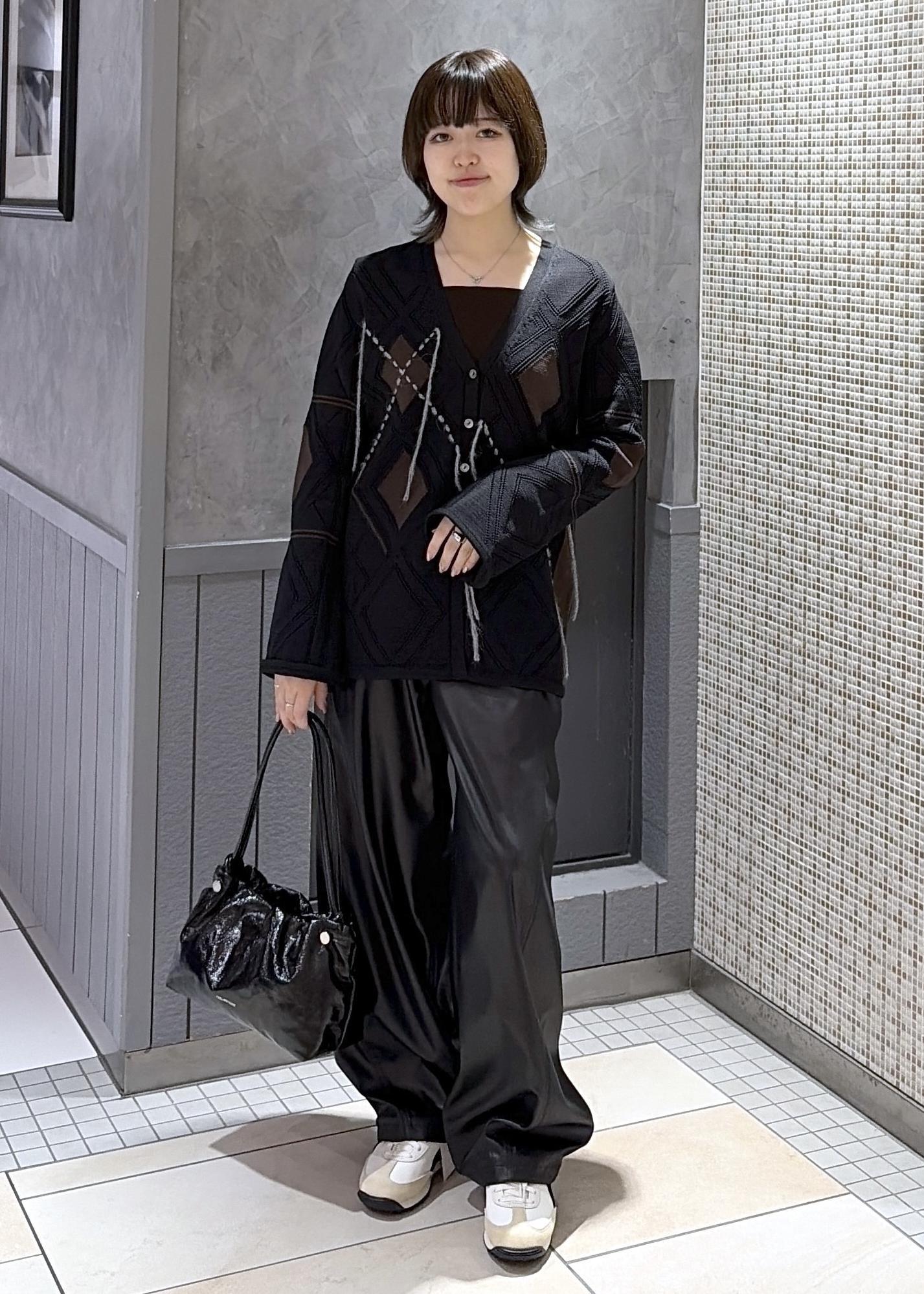 ADAM ET ROPÉ FEMMEパターンニットカーディガンブラック系 / F¥18,700レビュースッキリ見えします◎ 袖はやや長めで、フレアになってるのもかわいいです。コーディネートの主役になってくれます!