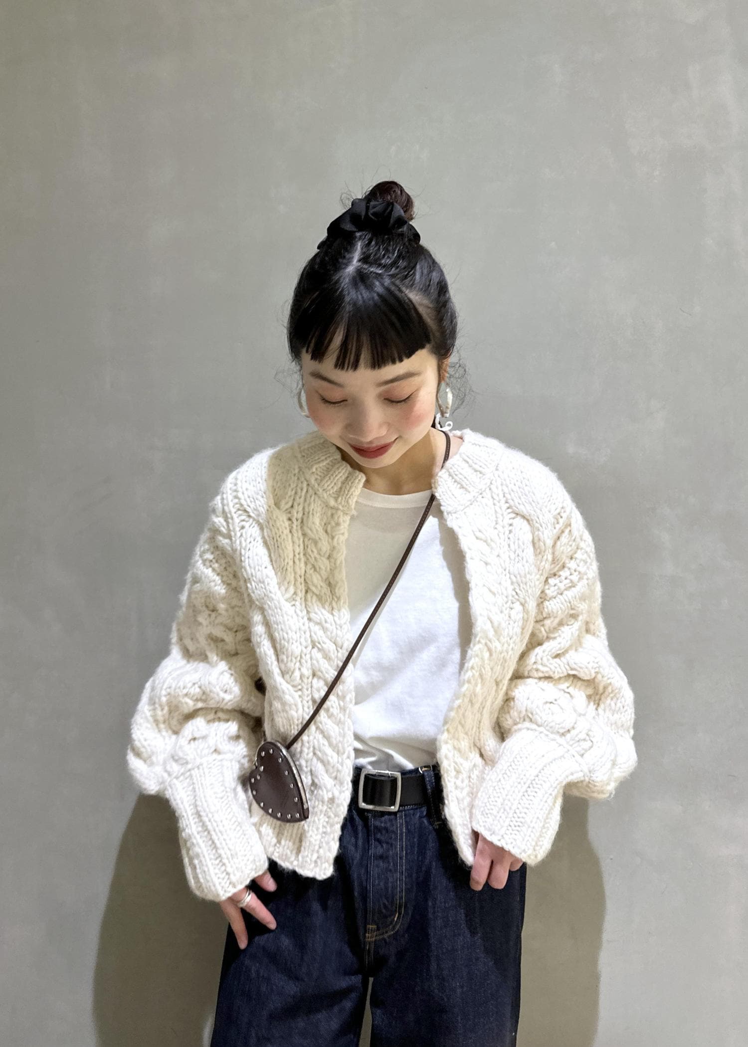 EMOELLE【EMOELLE】ケーブルボレロカーディガンキナリ / F¥35,200レビューやや厚手で重みがあります。