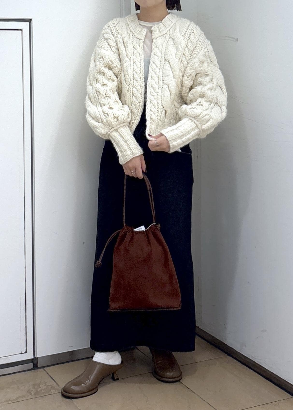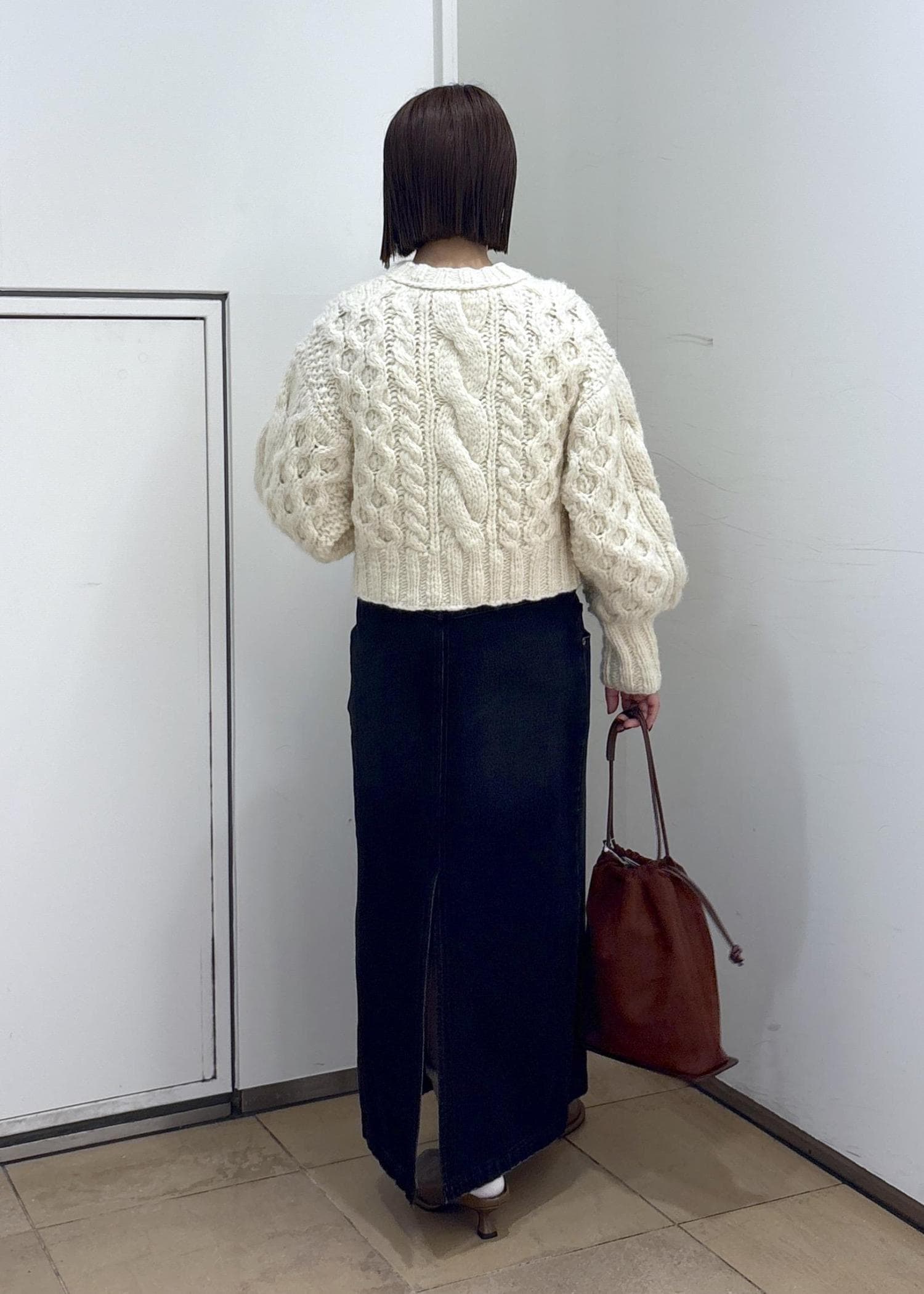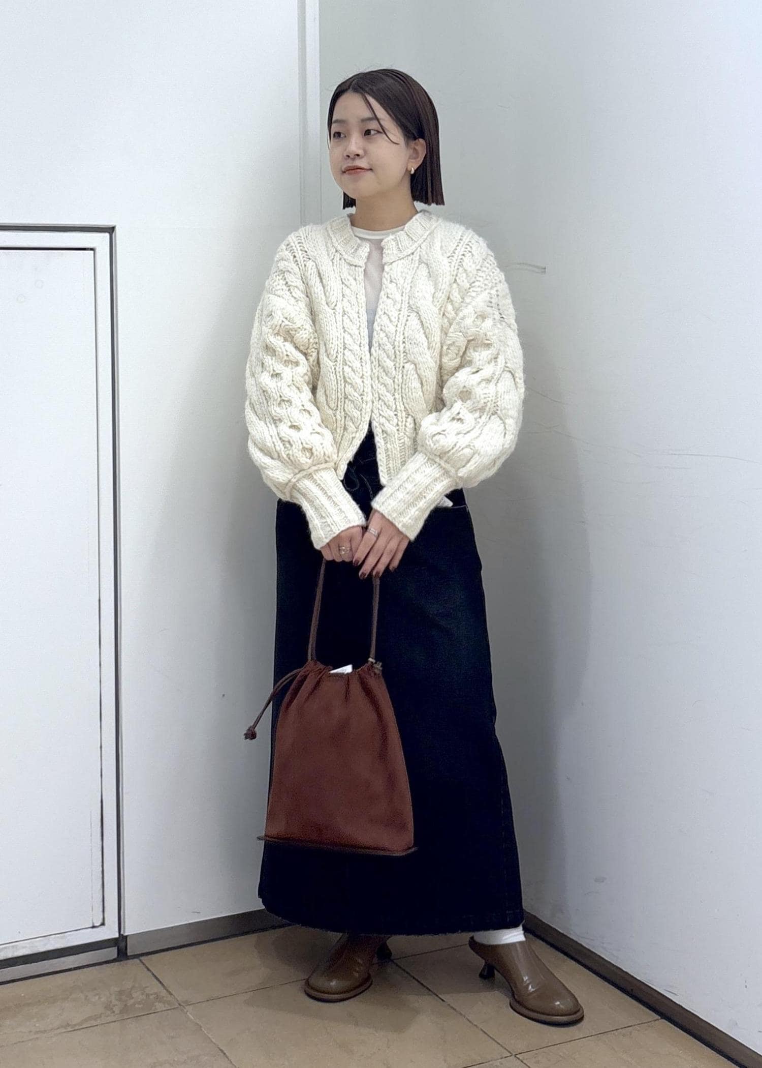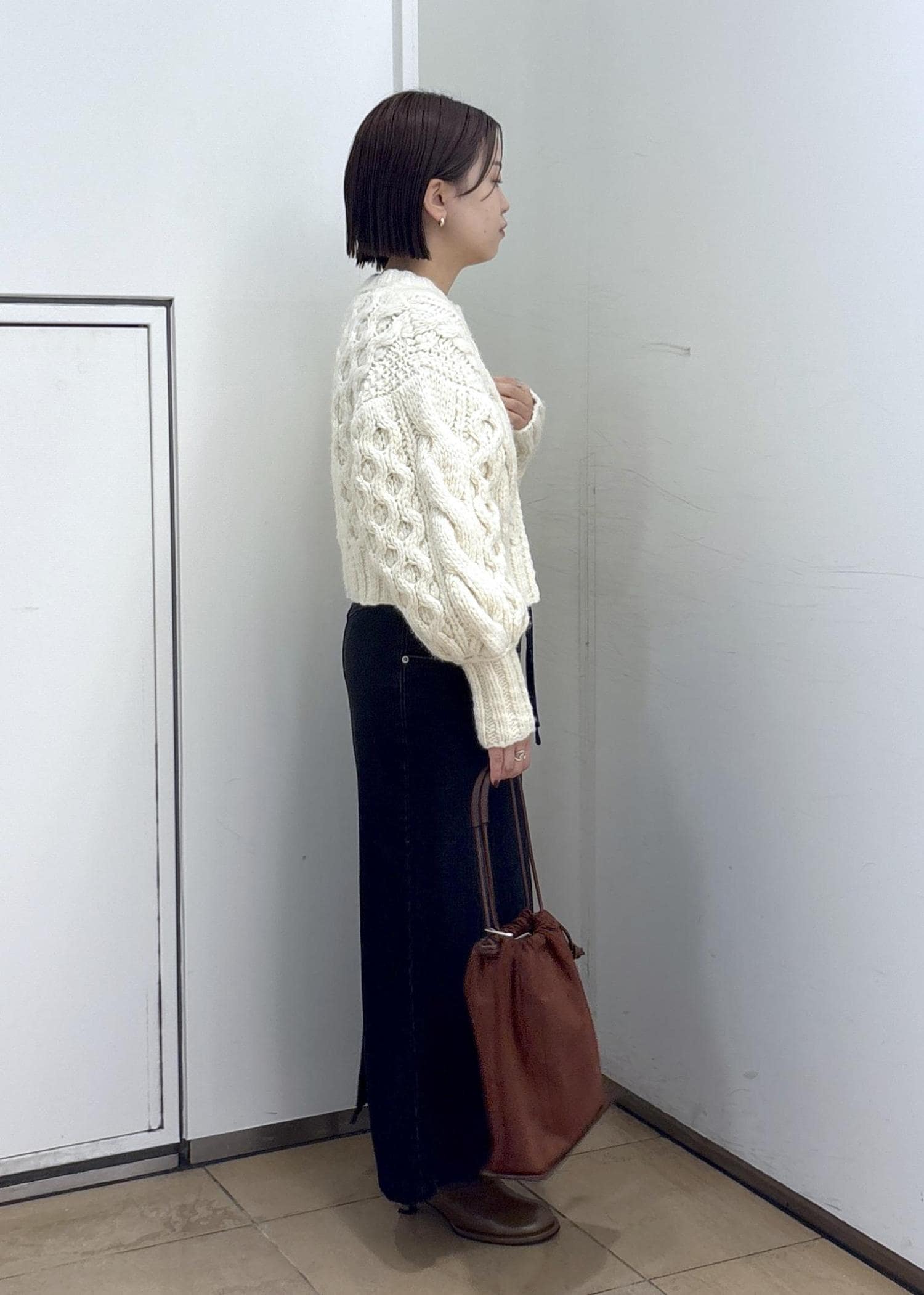 EMOELLE【EMOELLE】ケーブルボレロカーディガンキナリ / F¥35,200レビュー厚手な生地感ですが、ボタンが付いていないためさらっと着用いただけるカーディガンです。