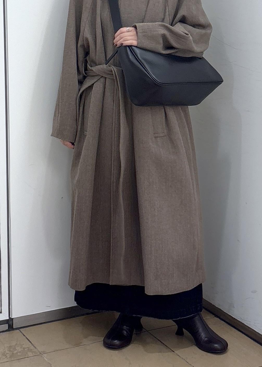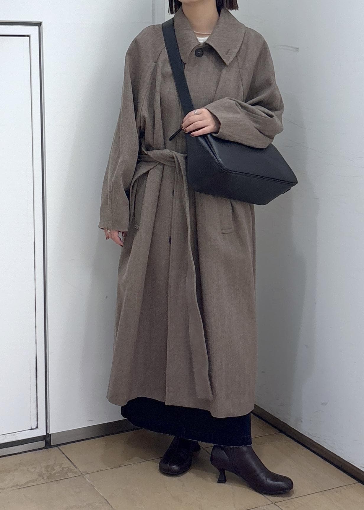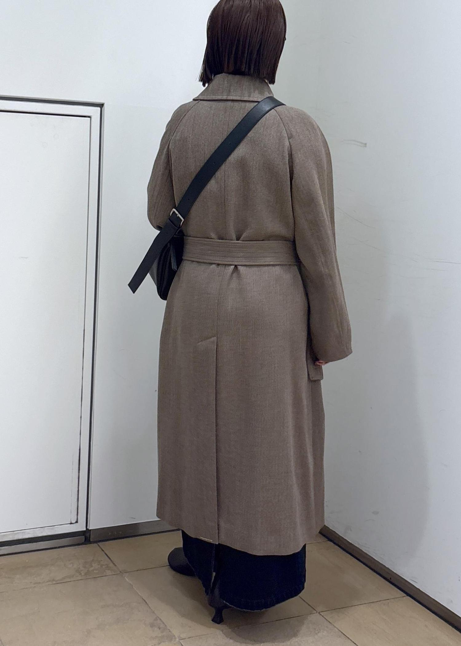 EMOELLE【EMOELLE】ハイカラーオーバーサイズコートベージュ系 / 36¥88,000レビュー程よくゆとり感のあるロングコートです。ウエストに紐が付いており、軽く結んでベルトぽく着用いただけます。