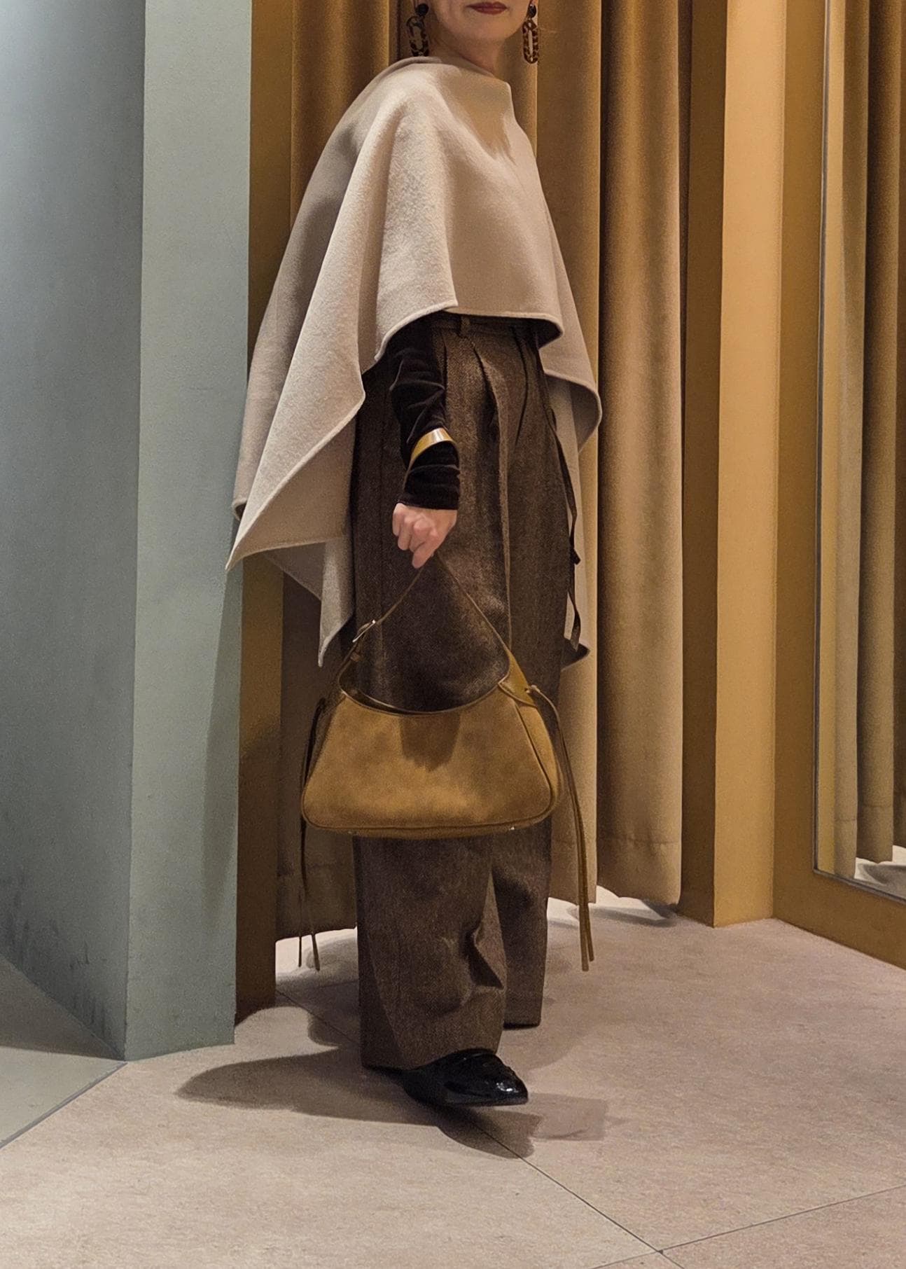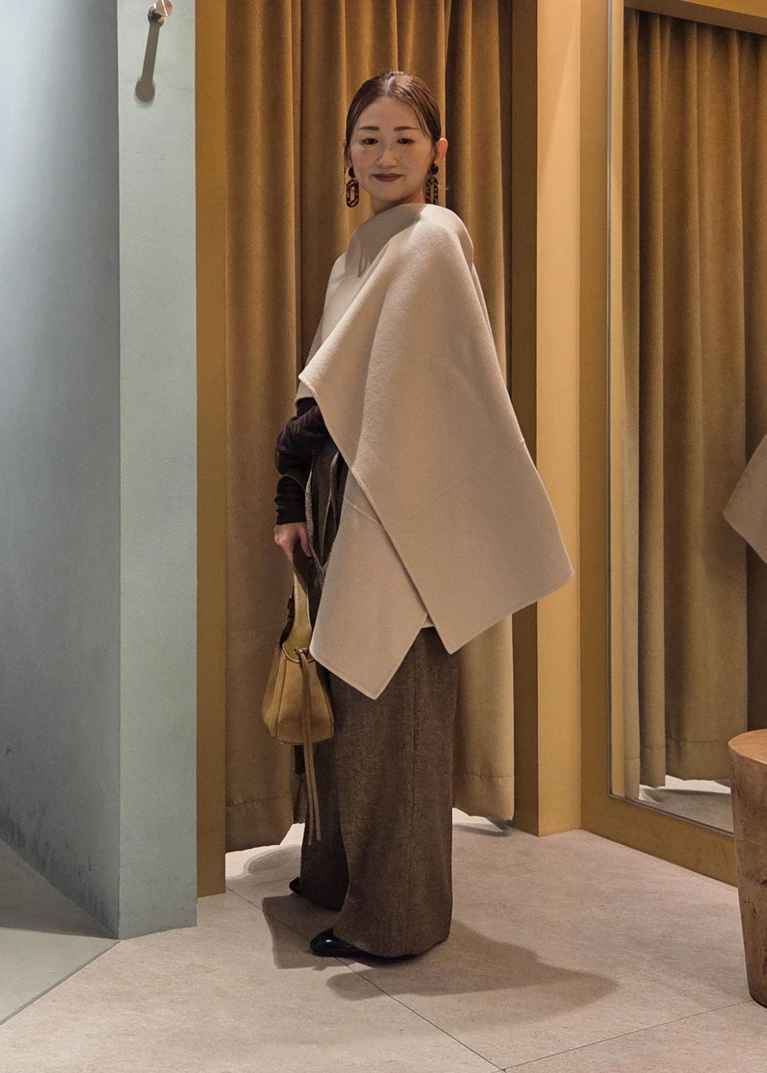 ADAM ET ROPÉ FEMMEカシミアブレンドポンチョストールベージュ系 / F¥25,300レビューカシミヤ混で暖かいです。パッと羽織るだけでオシャレに仕上がります。羽織り方に決まりはないので、お好きな形で楽しんでいただけます。アウターの上に羽織っていただいても素敵ですよ。