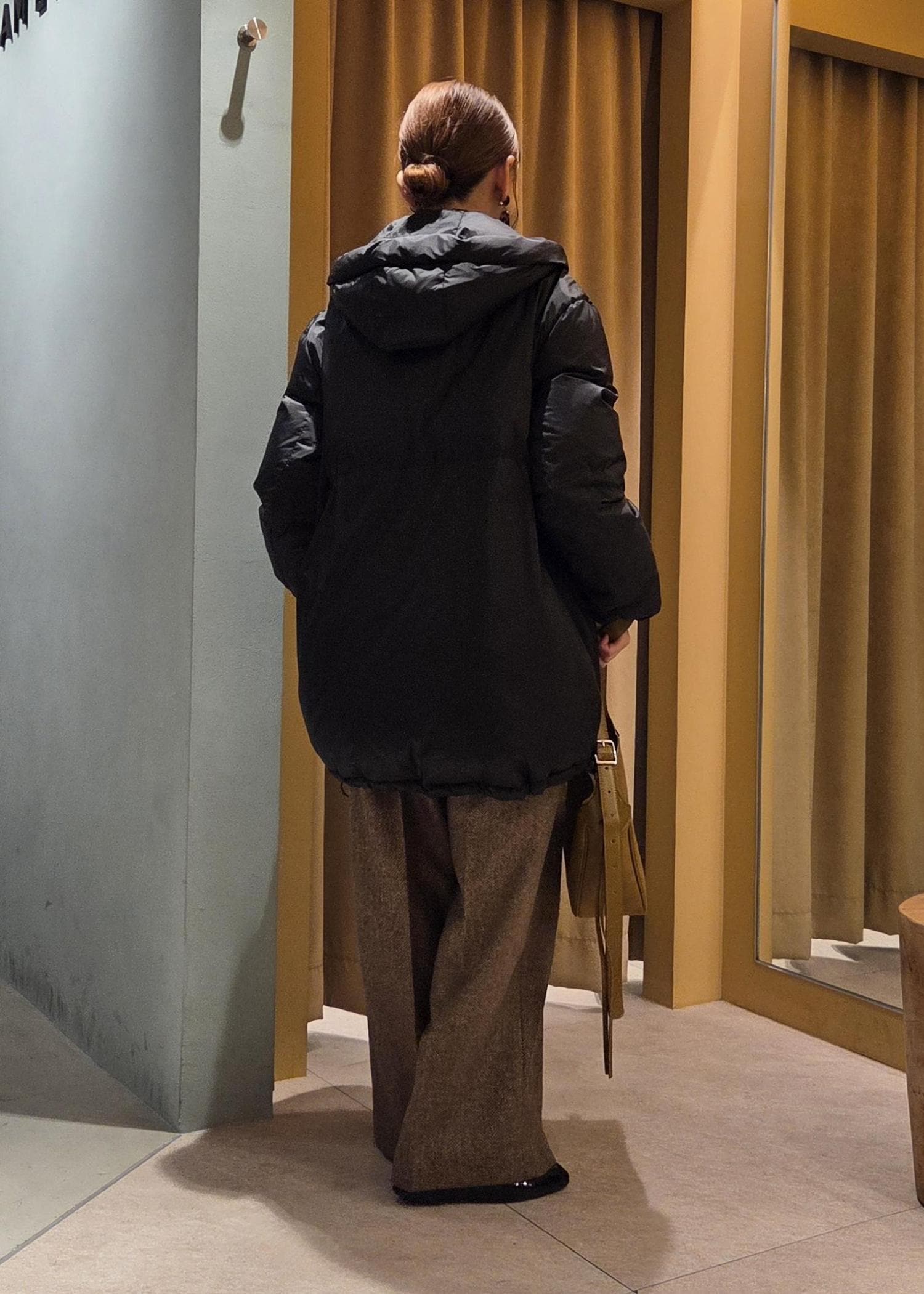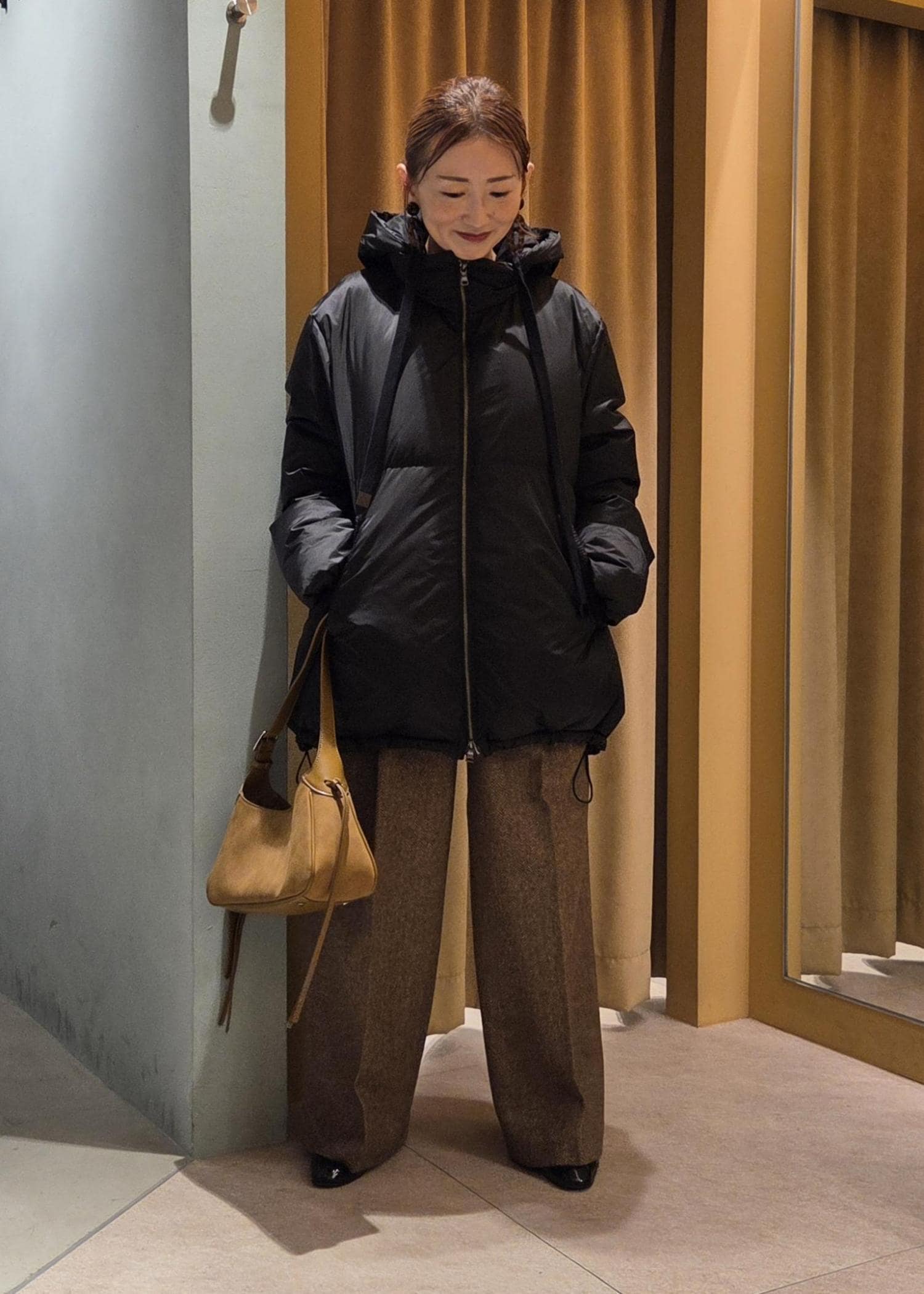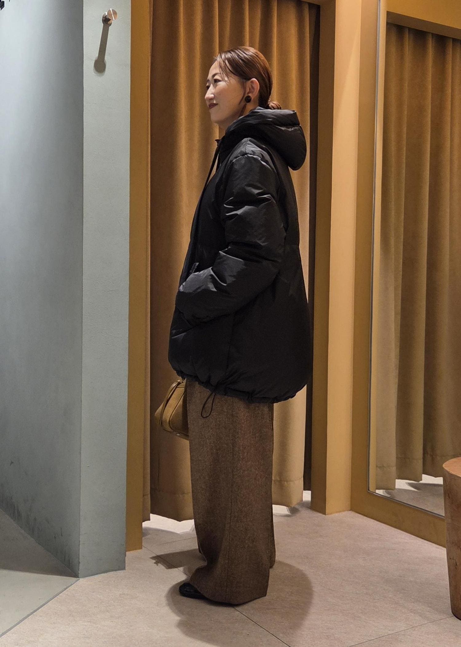ADAM ET ROPÉ FEMME【サステナブル】2WAYフーディミドルダウン/撥水ブラック / F¥49,500レビューヒップまですっぽり覆ってくれます。軽く暖かいです。フードを外すこともできるところも◎