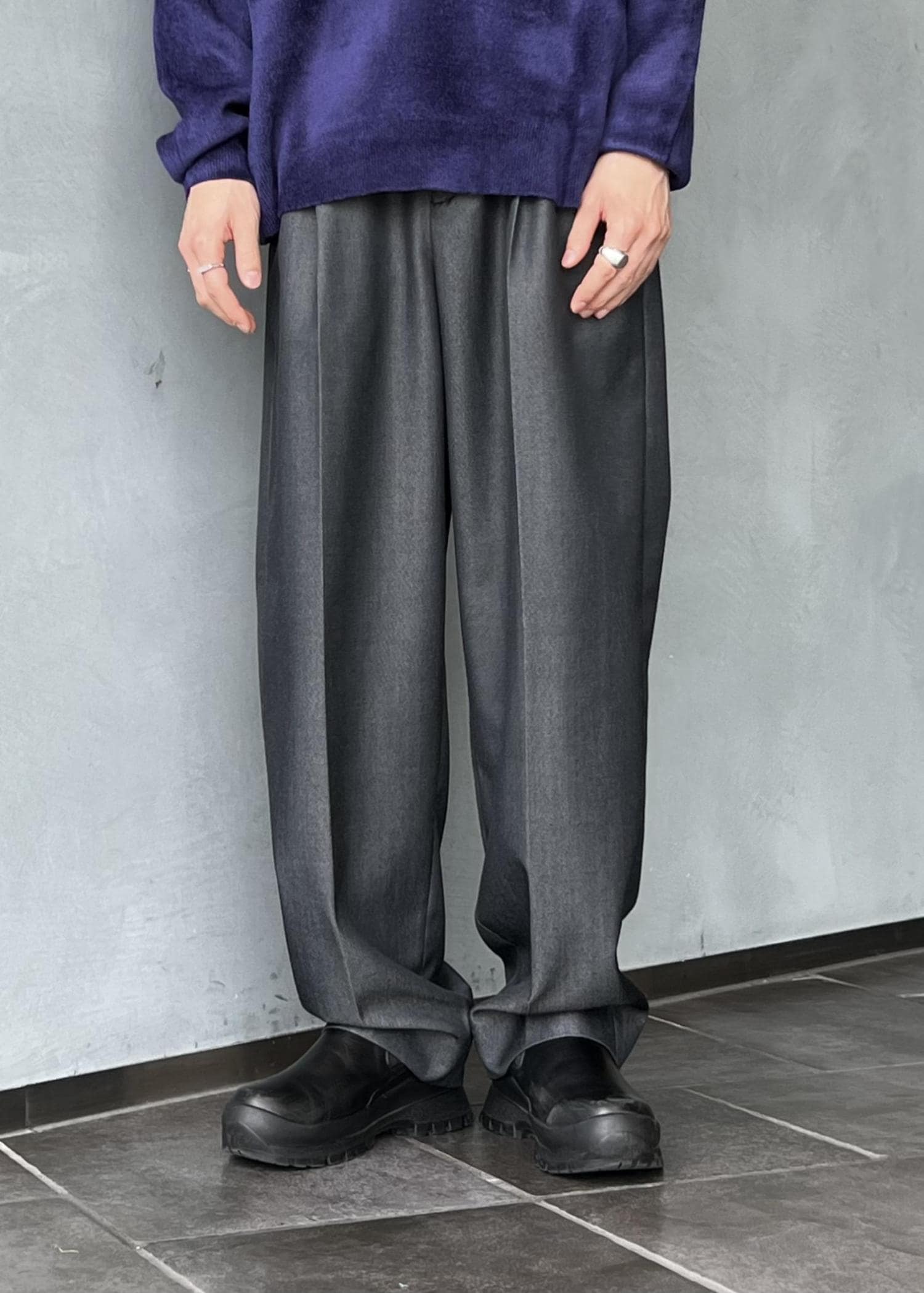 ADAM ET ROPÉ HOMME【NIKKE】ワイド イージー デニム スラックス / ADAM ET ROPE' JEANS -GRID-ブラック系 / M¥24,200レビュー程良くハリのあるウールポリエステル混合素材。