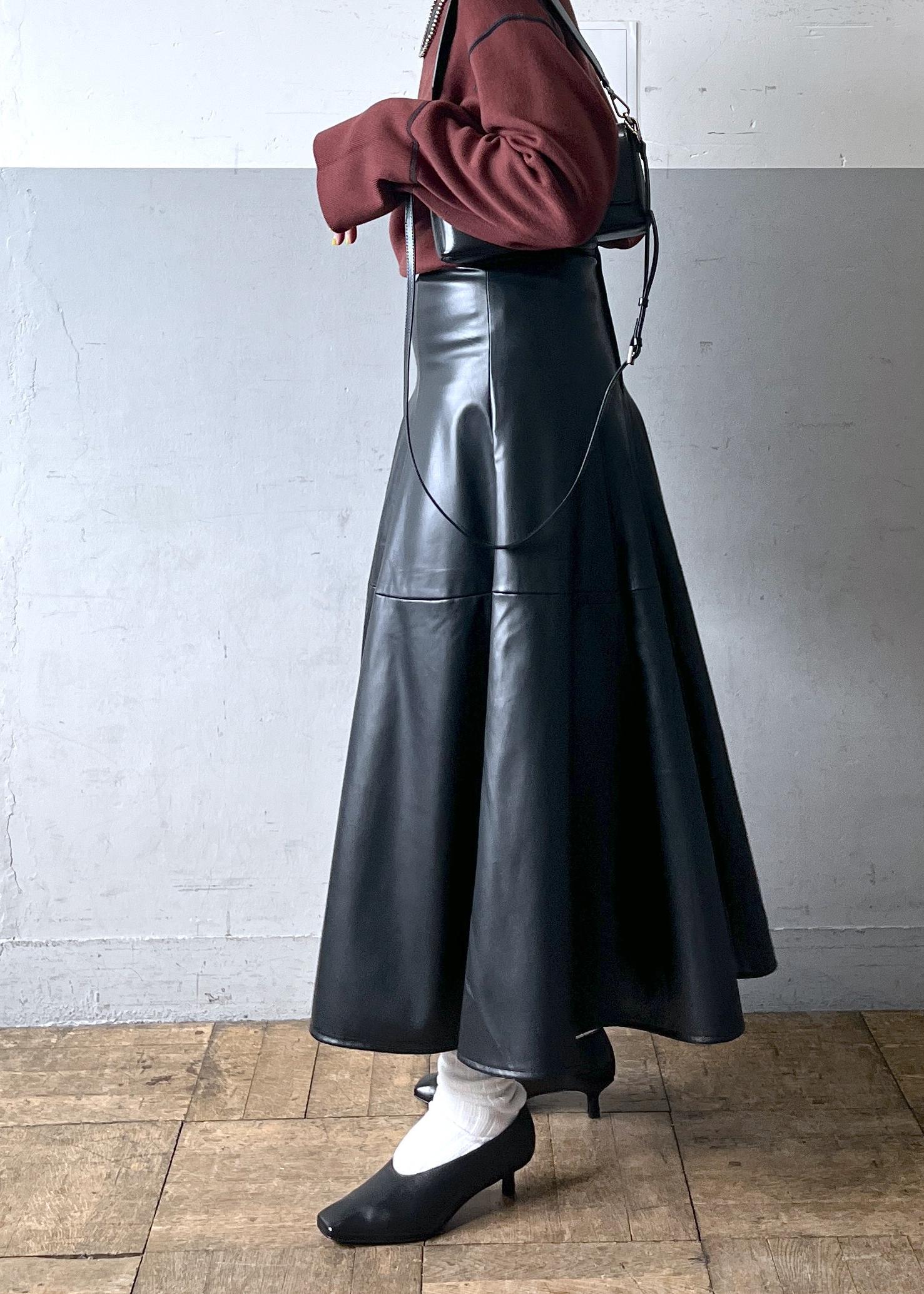 ADAM ET ROPÉ FEMMEシンセティックレザーフレアスカートブラック / 38¥24,200レビュー広がりすぎない綺麗なフレアスカートです。わりと伸びのいい素材なのでピッタリフィットしますがとっても楽ちんです^ ^ レザー調のマットな素材なのでフレアスカートですが甘くなりすぎず、スタイリングが華やかになります。一つ持っているとすごく使えるのでオススメですよ♡