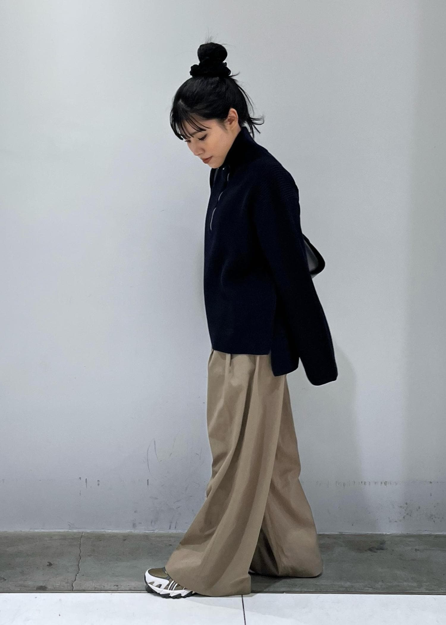 EMOELLE【EMOELLE】バイカラーベルトドレスパンツカーキ系 / 36¥22,000レビュー36でひとつおって、ゆったりめに履いています!