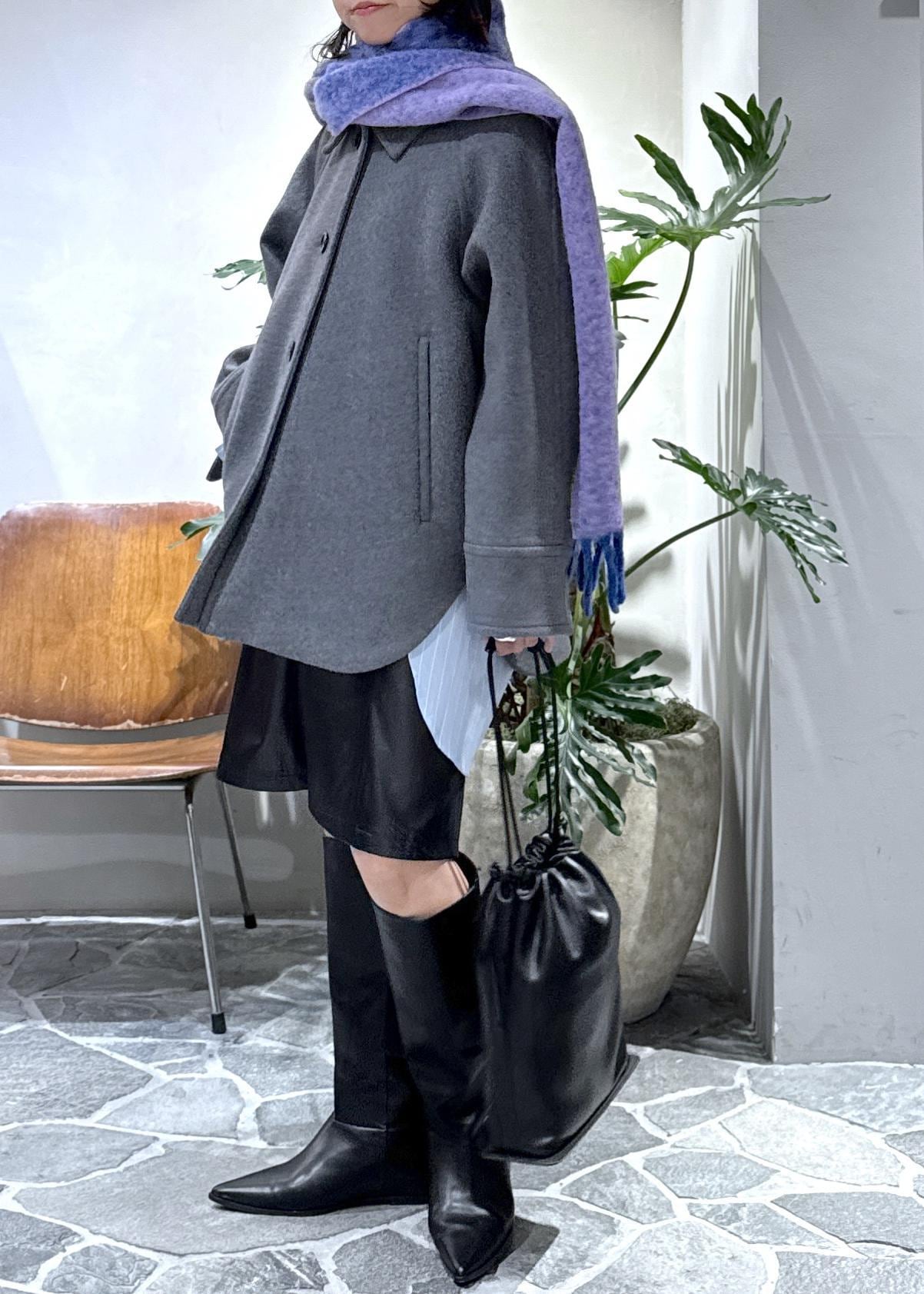 シャツ型のカジュアルなシルエットが可愛いウールコート。Super140のウールを使い、インナーはキュプラという贅沢な一着。軽くて暖かく脱いだあとも持ち運びしやすいです。サイドが丸みのあるカーブで、インナーが見えるとコーデのポイントにもなるのが嬉しい。