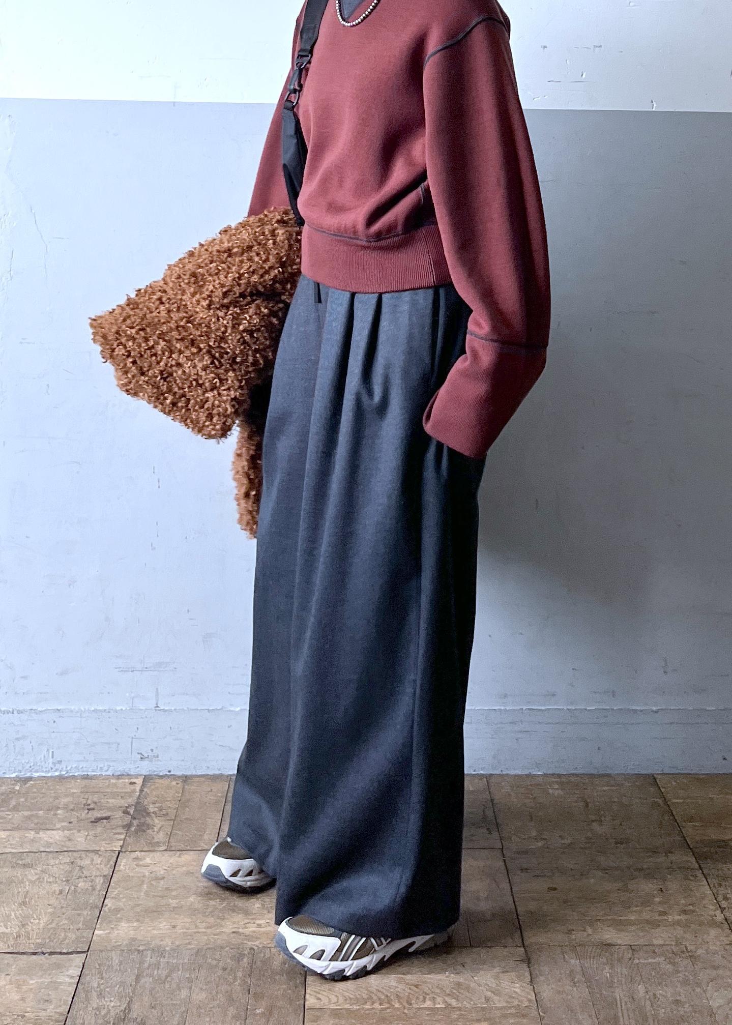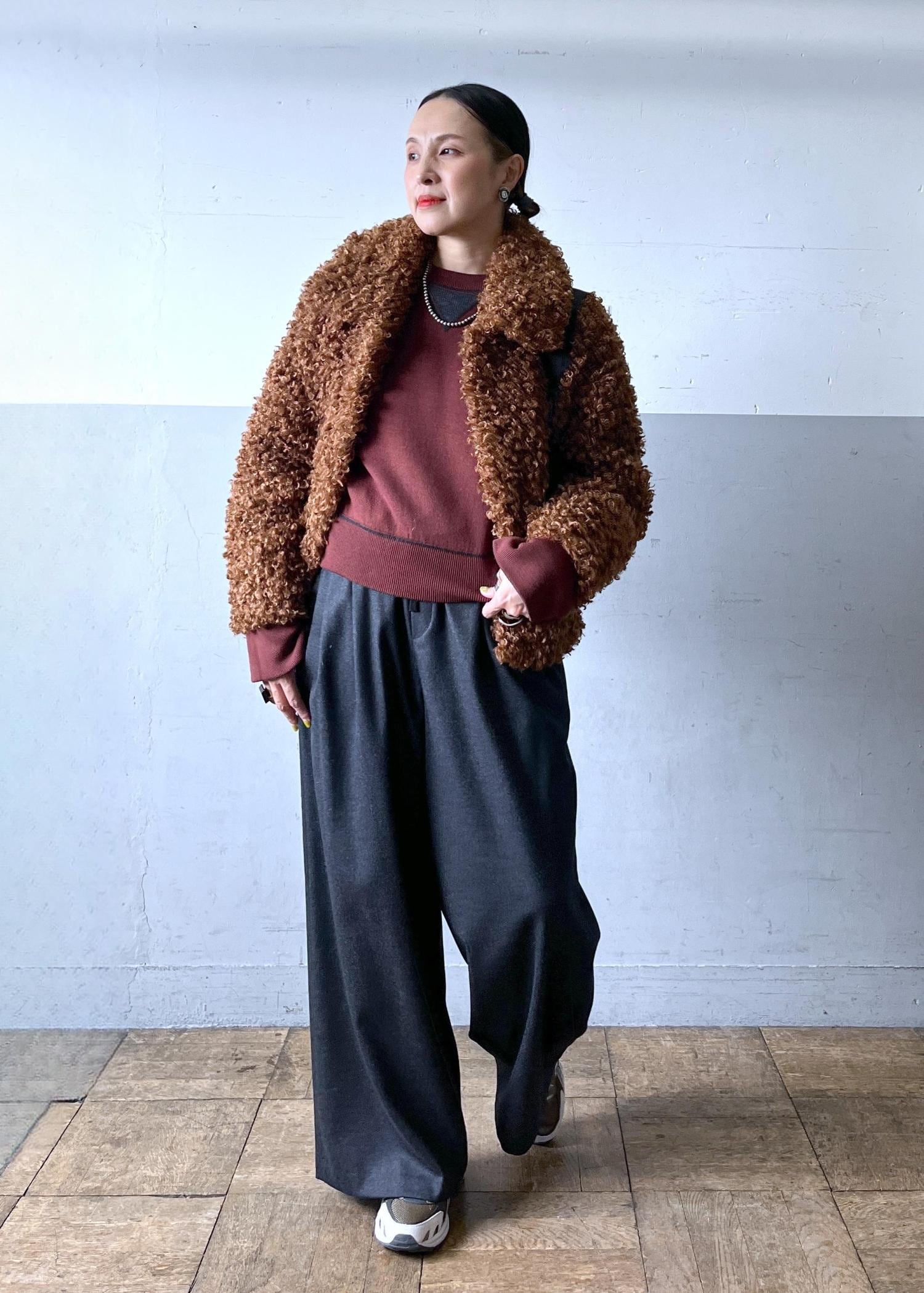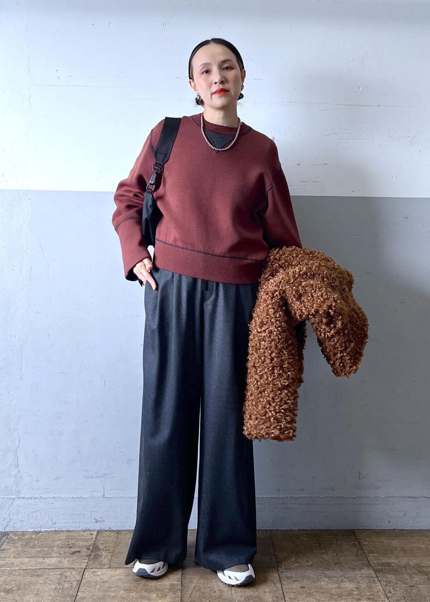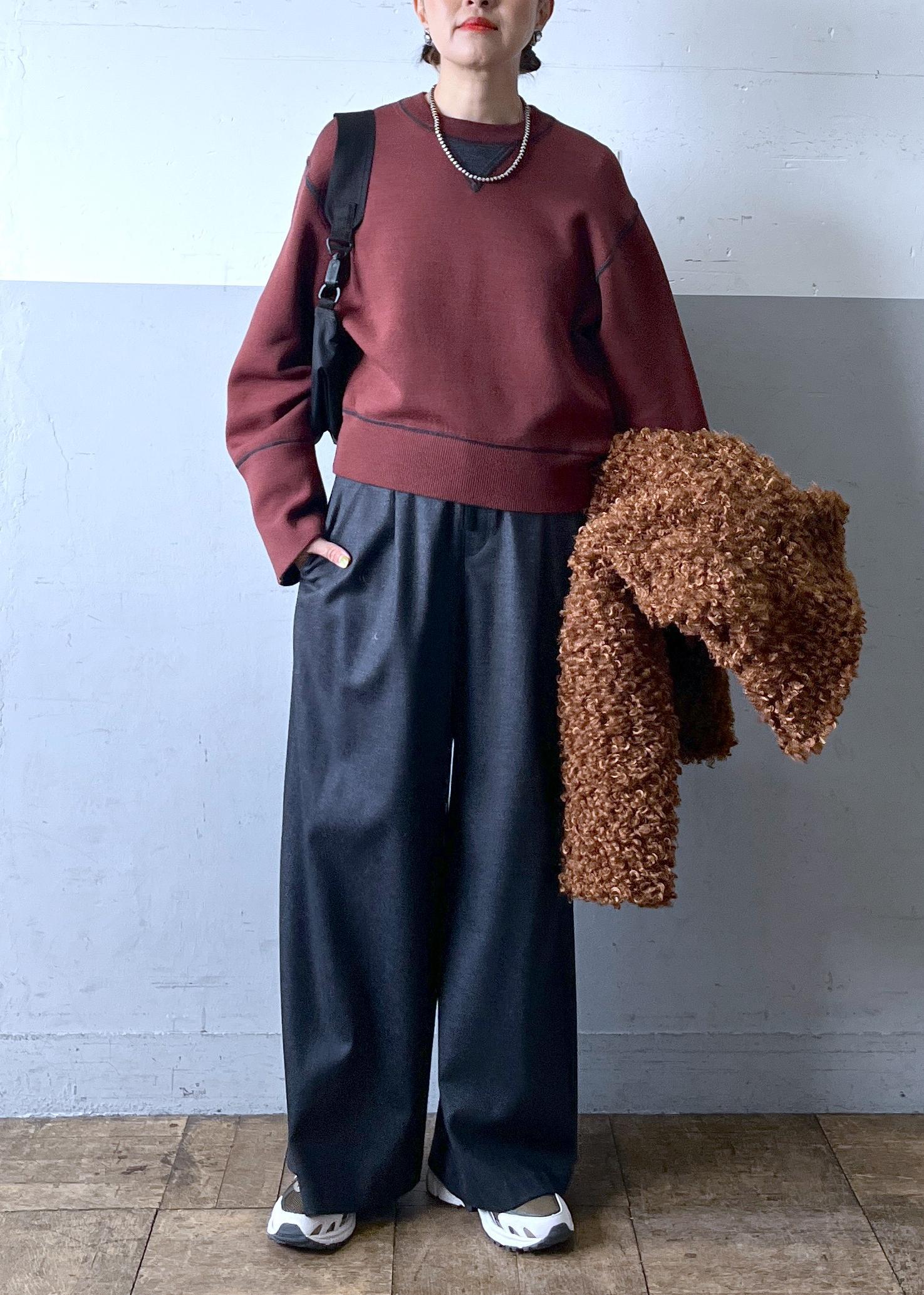 柔らかく軽い着心地で、ワイドパンツとの相性も抜群です。