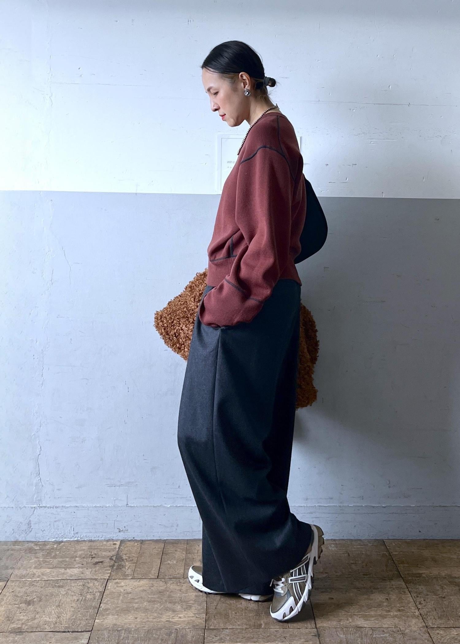 リバーシブルで着れるニットはどちらで着ても表情が変わって新鮮な雰囲気に♡ 袖口を折って差し色にしても素敵です。