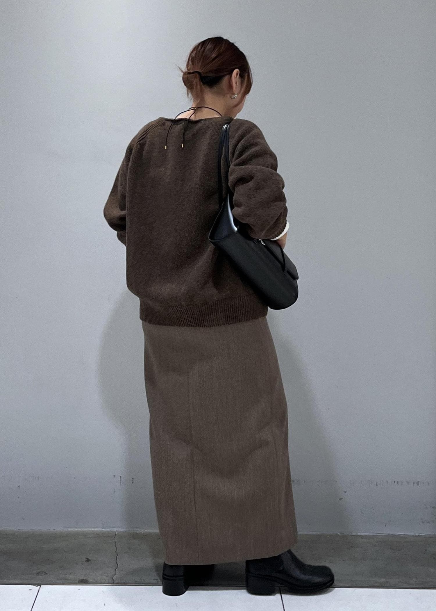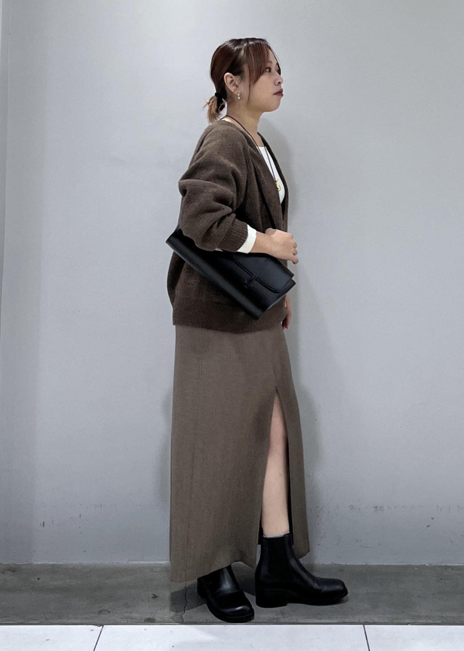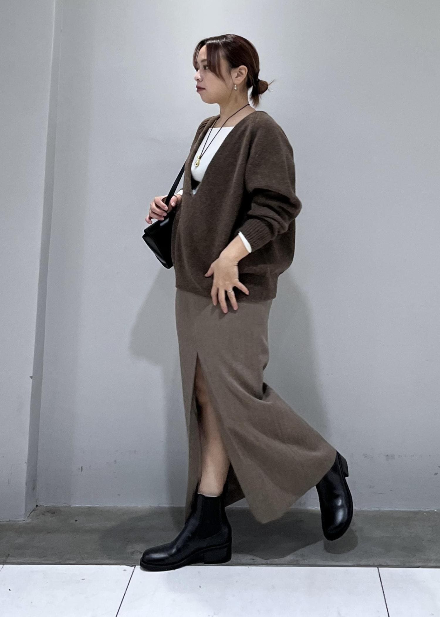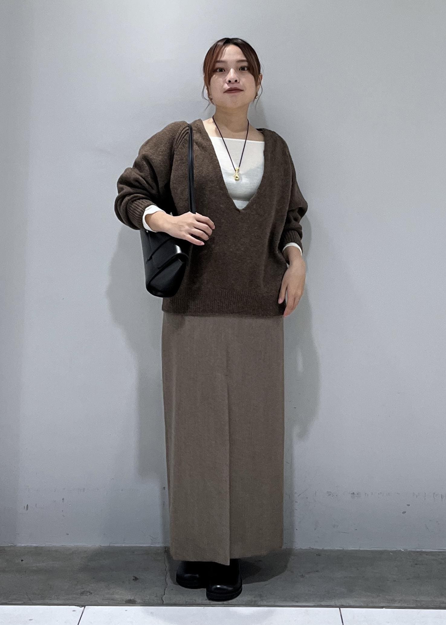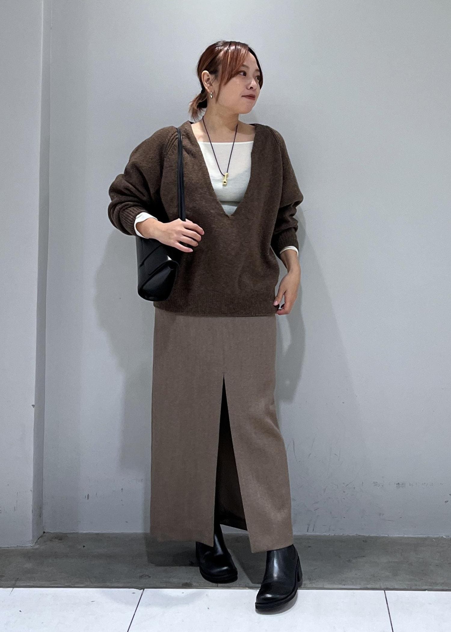 少しカジュアルみのあるニットなので、あえて中のニットとスカートは女性らしいシルエットを合わせてみました☺︎