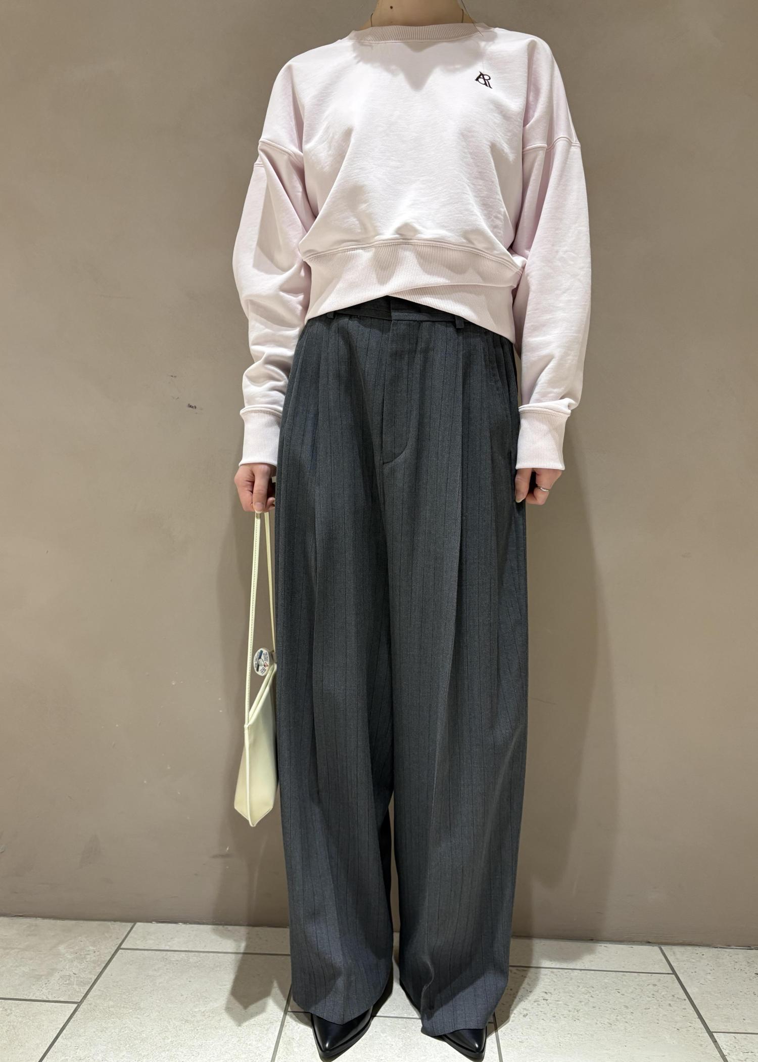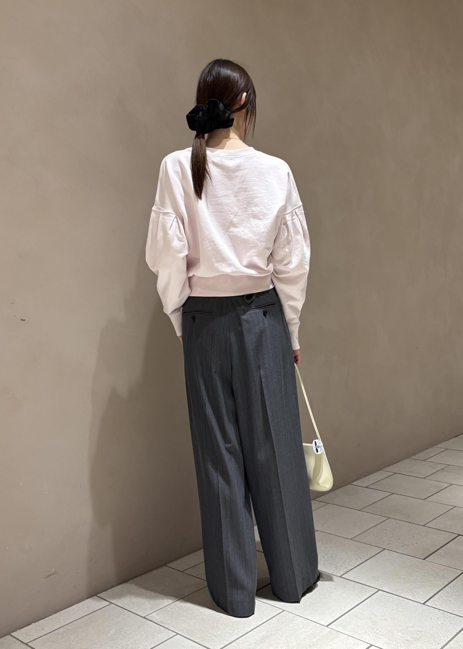 ADAM ET ROPÉ FEMME【サステナブル】パフスリーブスウェットピンク / F¥17,600レビュークロップド丈なのでボトムスとのバランスがとりやすくカジュアルになりすぎないところがオススメ。ロゴもさりげなく上品に着用いただけます。