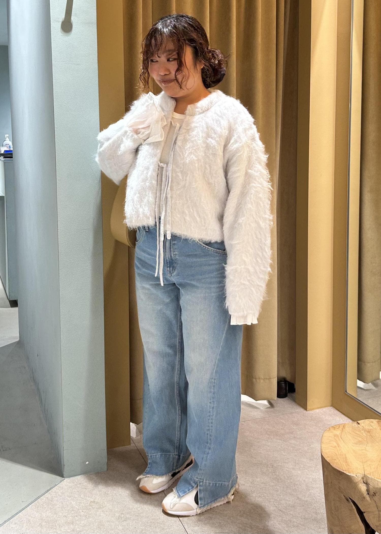 また、個人的にこういったフワフワカーディガンは肩周りが大きく見えるのがちょっぴり気になるところでしたが…手首周りにかけての重心の取り方が秀逸で(!)