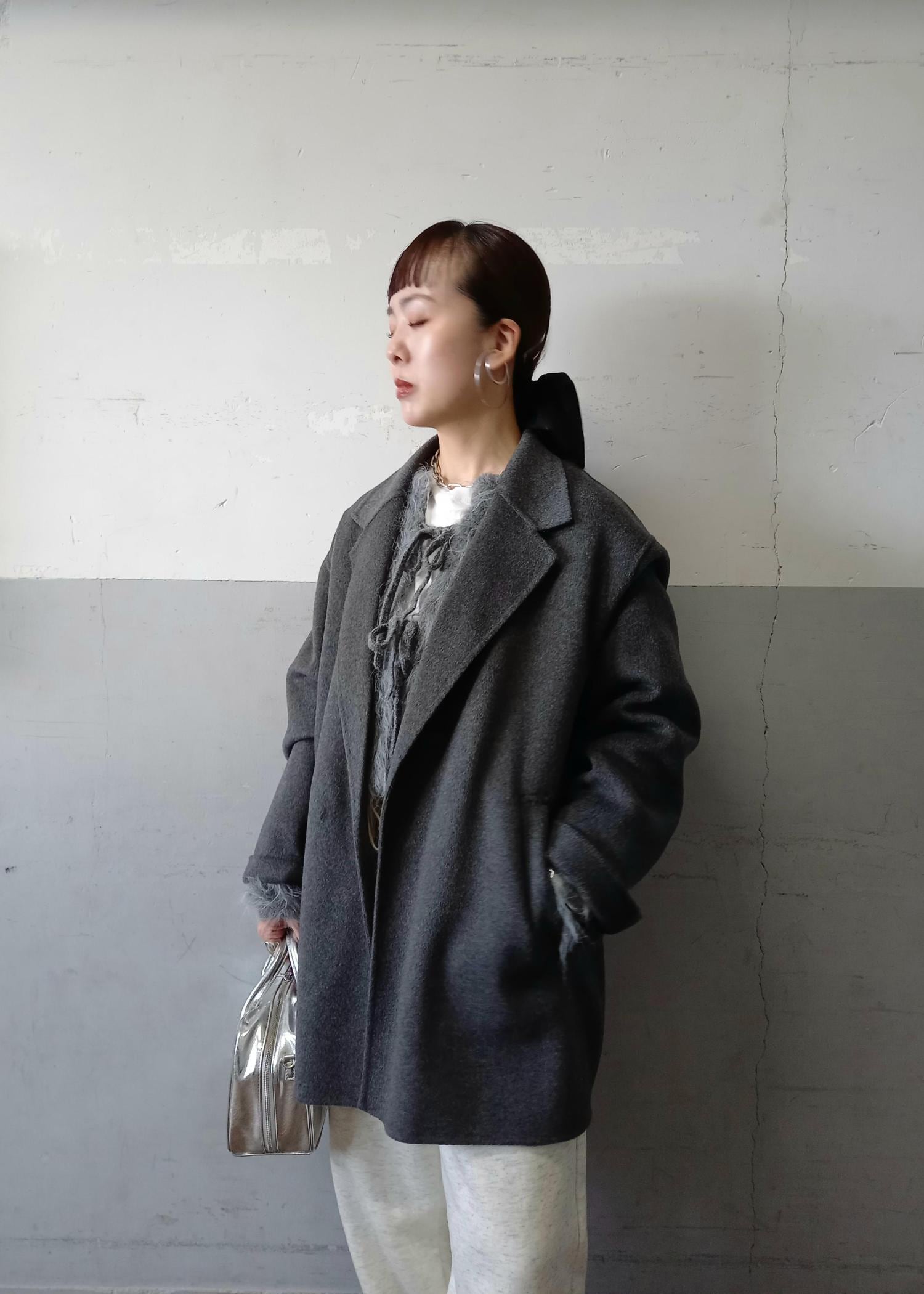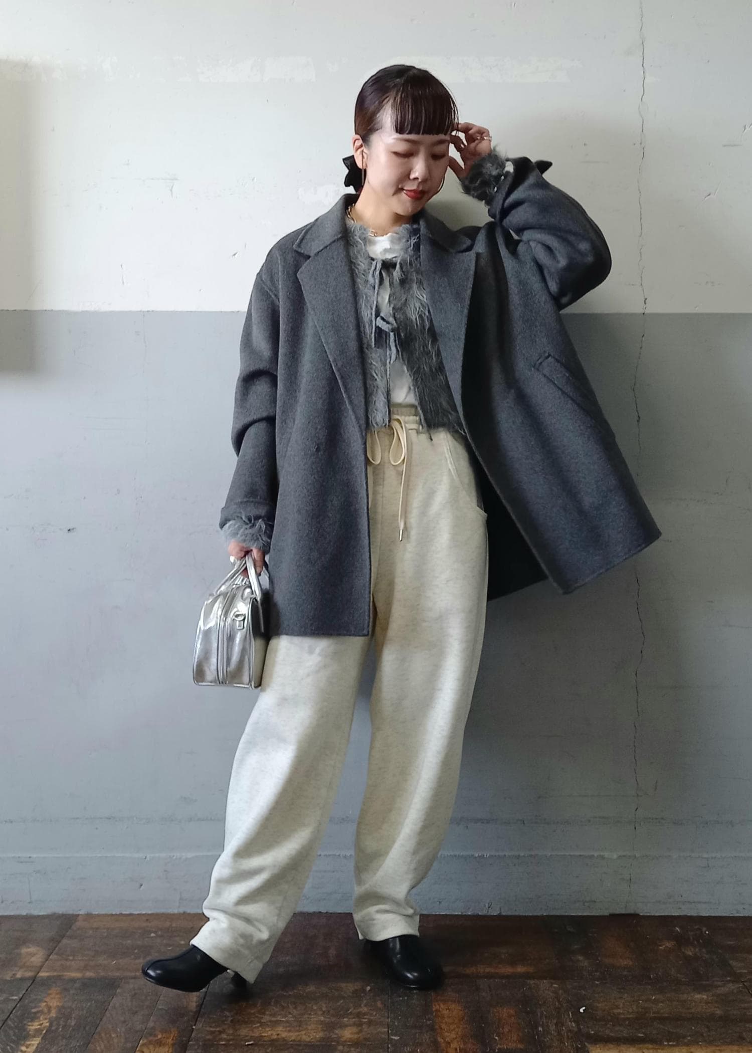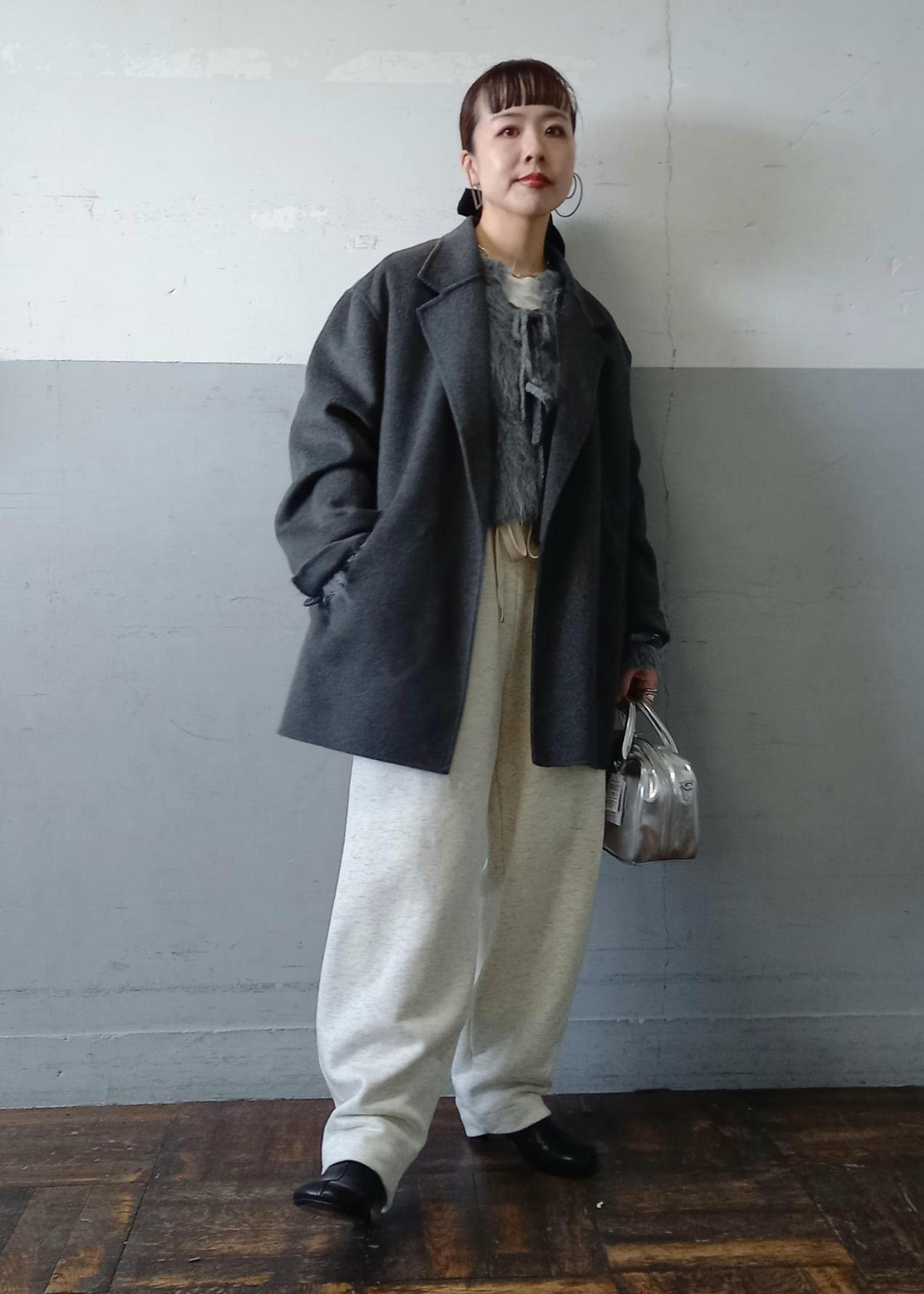 ADAM ET ROPÉ FEMMESuper120’sリバージャケットコートチャコール / F¥55,000レビューゆったりとしたサイズ感ですが、とっても軽くて柔らかいウール素材で着膨れ感も全くなく、スッキリとしたシルエットでお召しいただけます◎肩凝りのご不安もなくお召しいただけそうです!