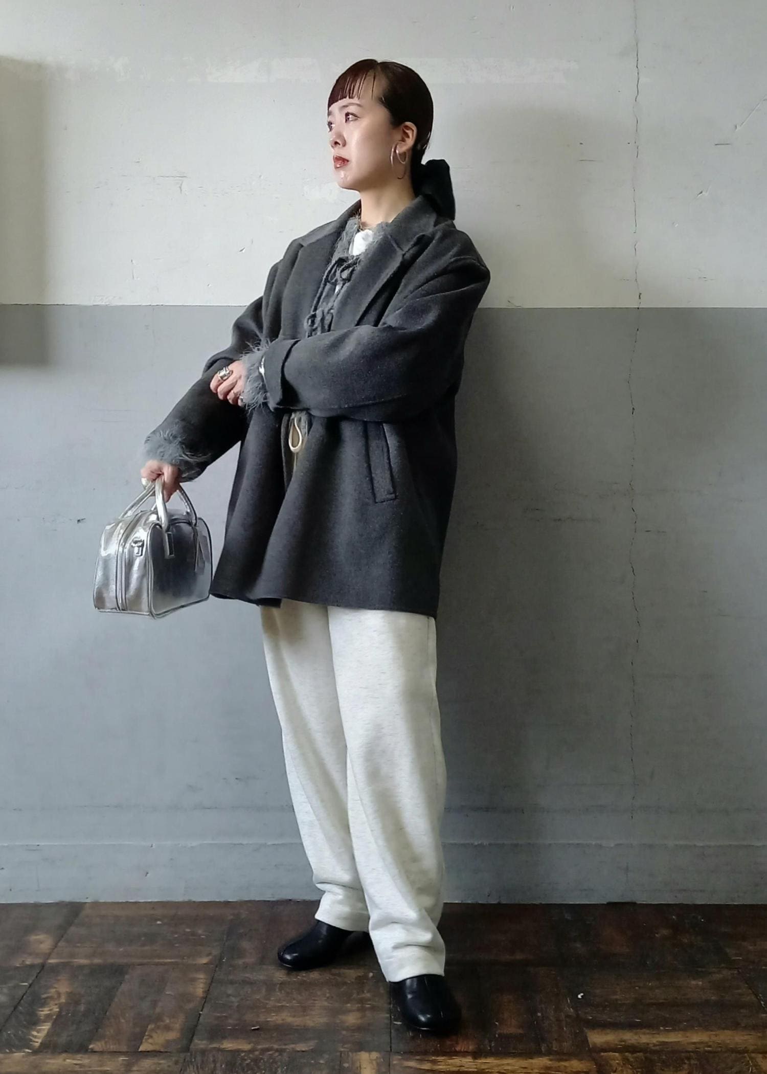 裾にかけてすぼまっているコクーンシルエットで、ラインがとても綺麗です◎裾がクシュッたまるくらいの着丈でした。