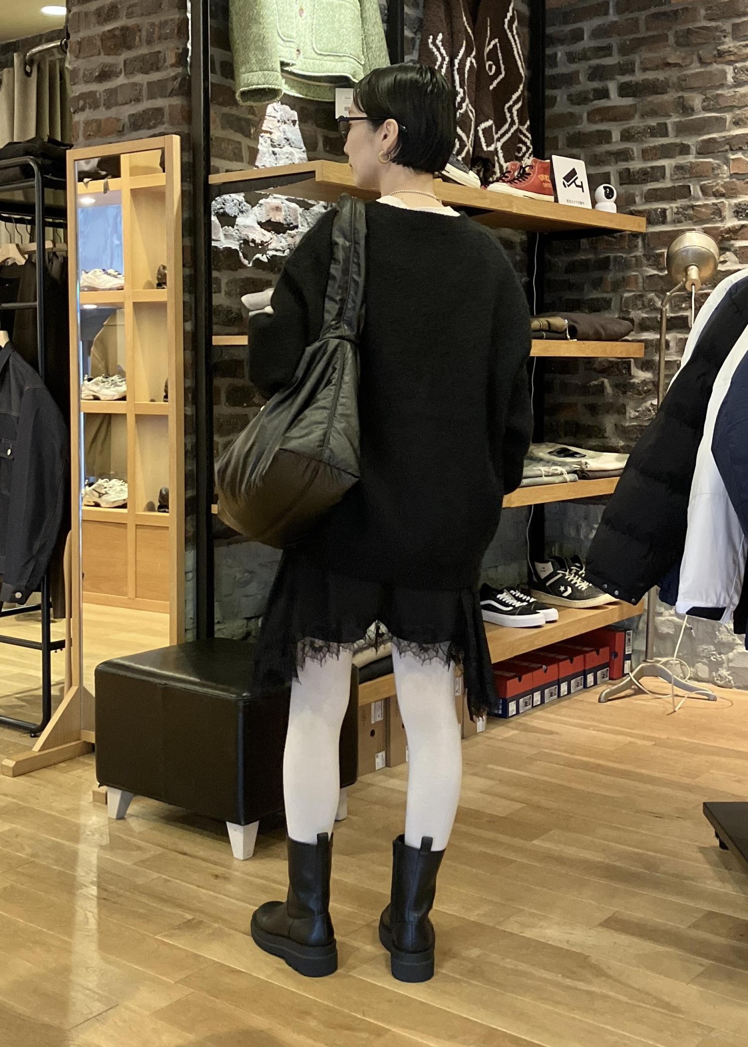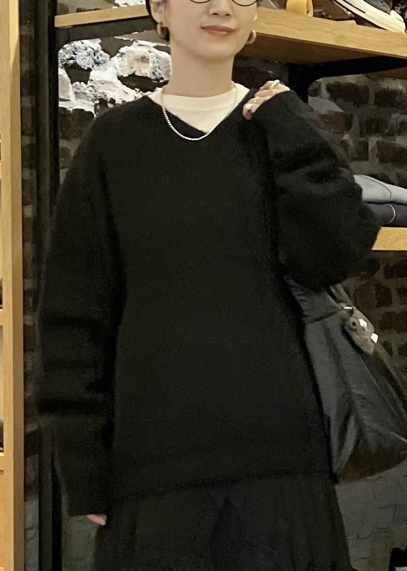 ADAM ET ROPÉ HOMMEモヘアミックス オーバーサイズ Vネックニットブラック / M¥16,940レビューメンズのニットですが、女性がMサイズをゆるめに着ても可愛いですよ!