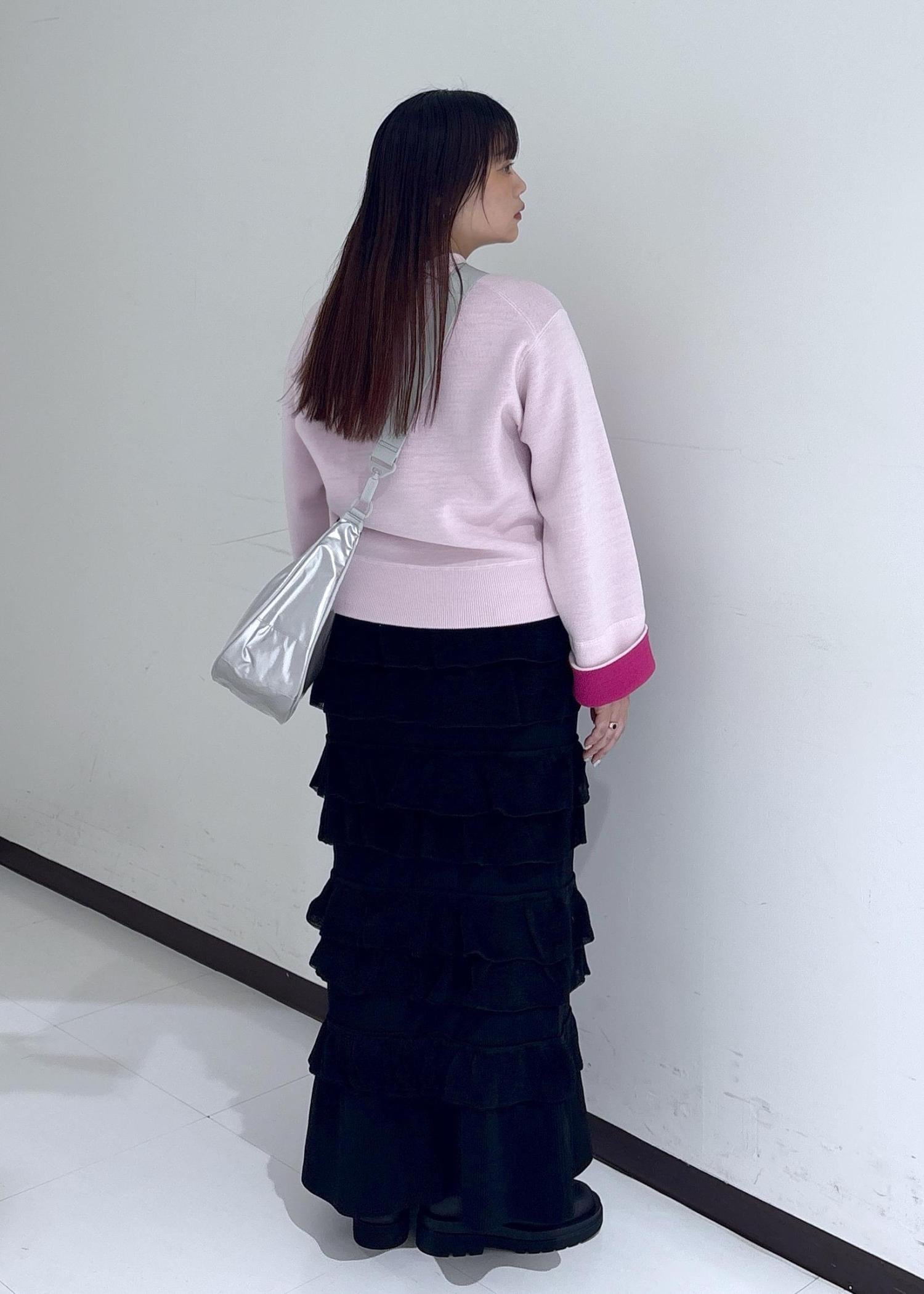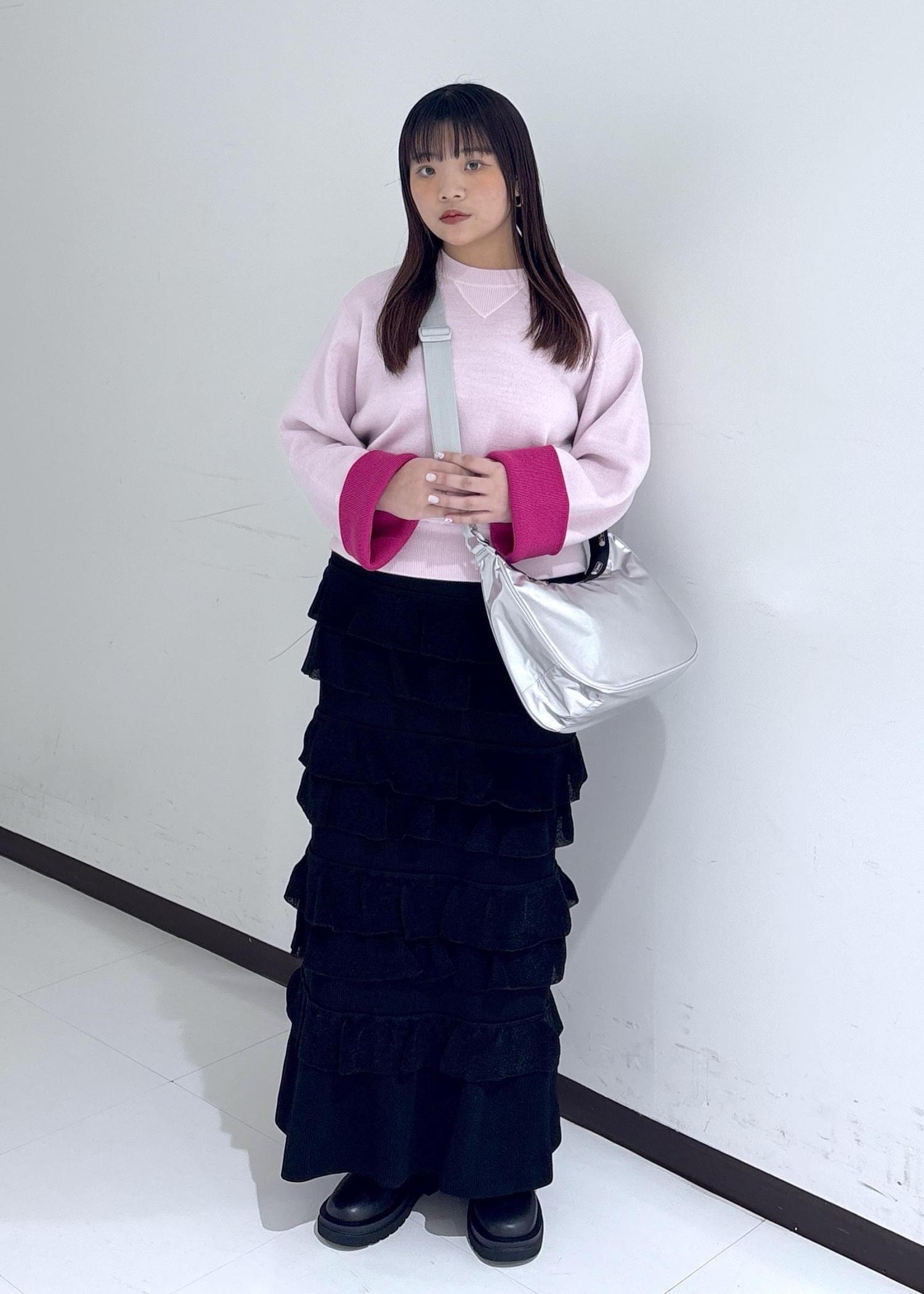 ADAM ET ROPÉ FEMME【サステナブル】フリルニットスカートブラック / F¥19,800レビュー伸縮性のある生地感なのでタイトに見えますが、とても履きやすかったです!歩きにくいの心配もないです!着るだけで存在感があるので、コーデのアクセントにしやすいです◎