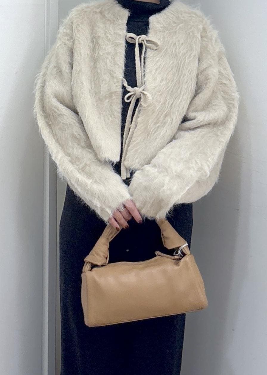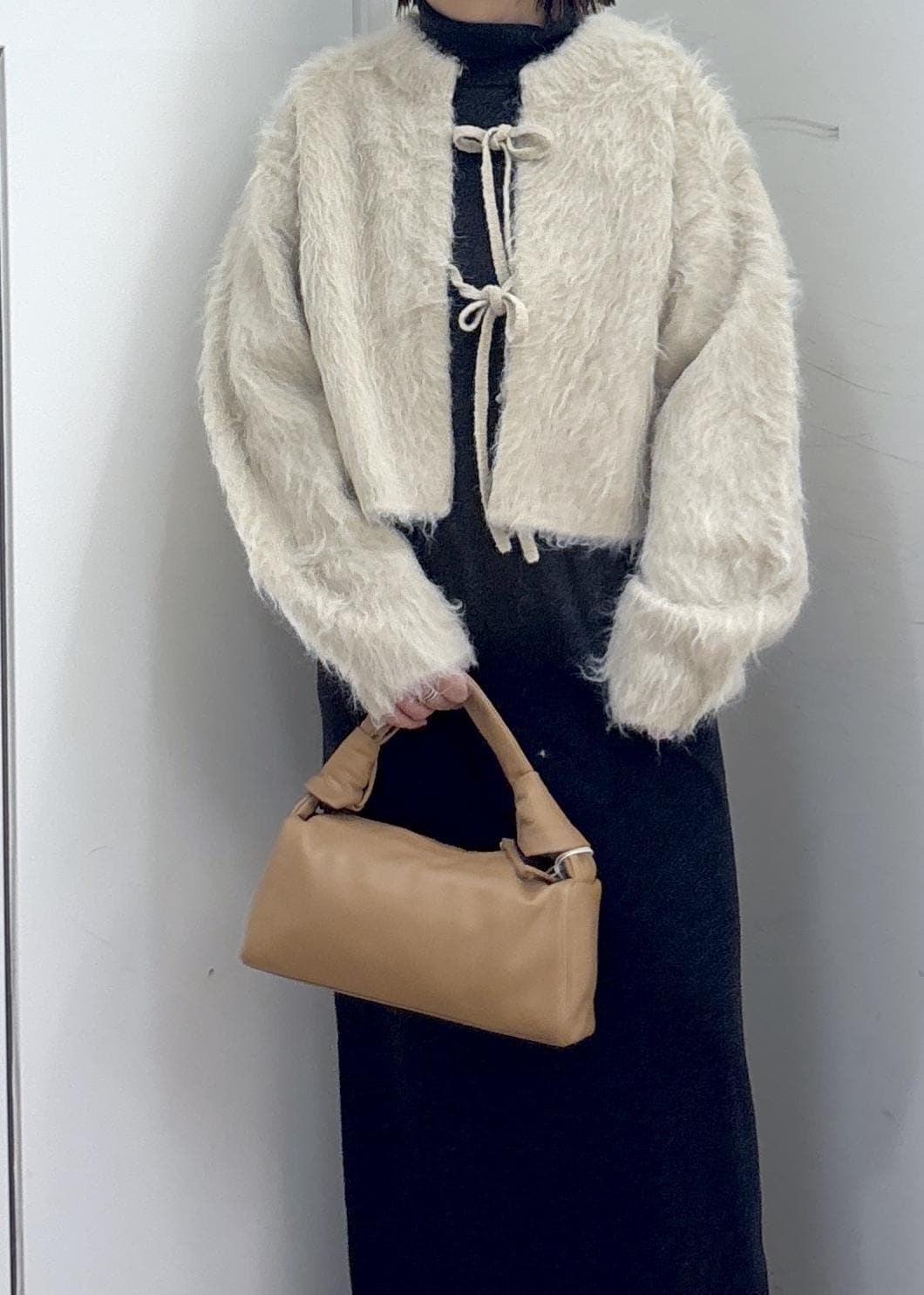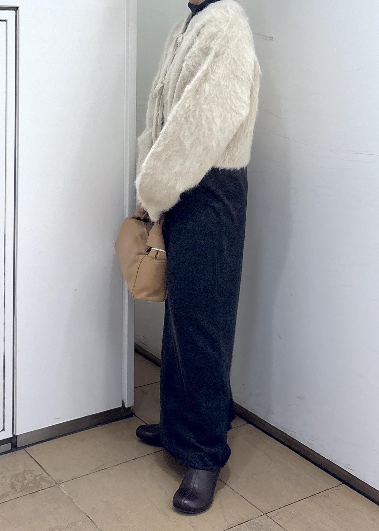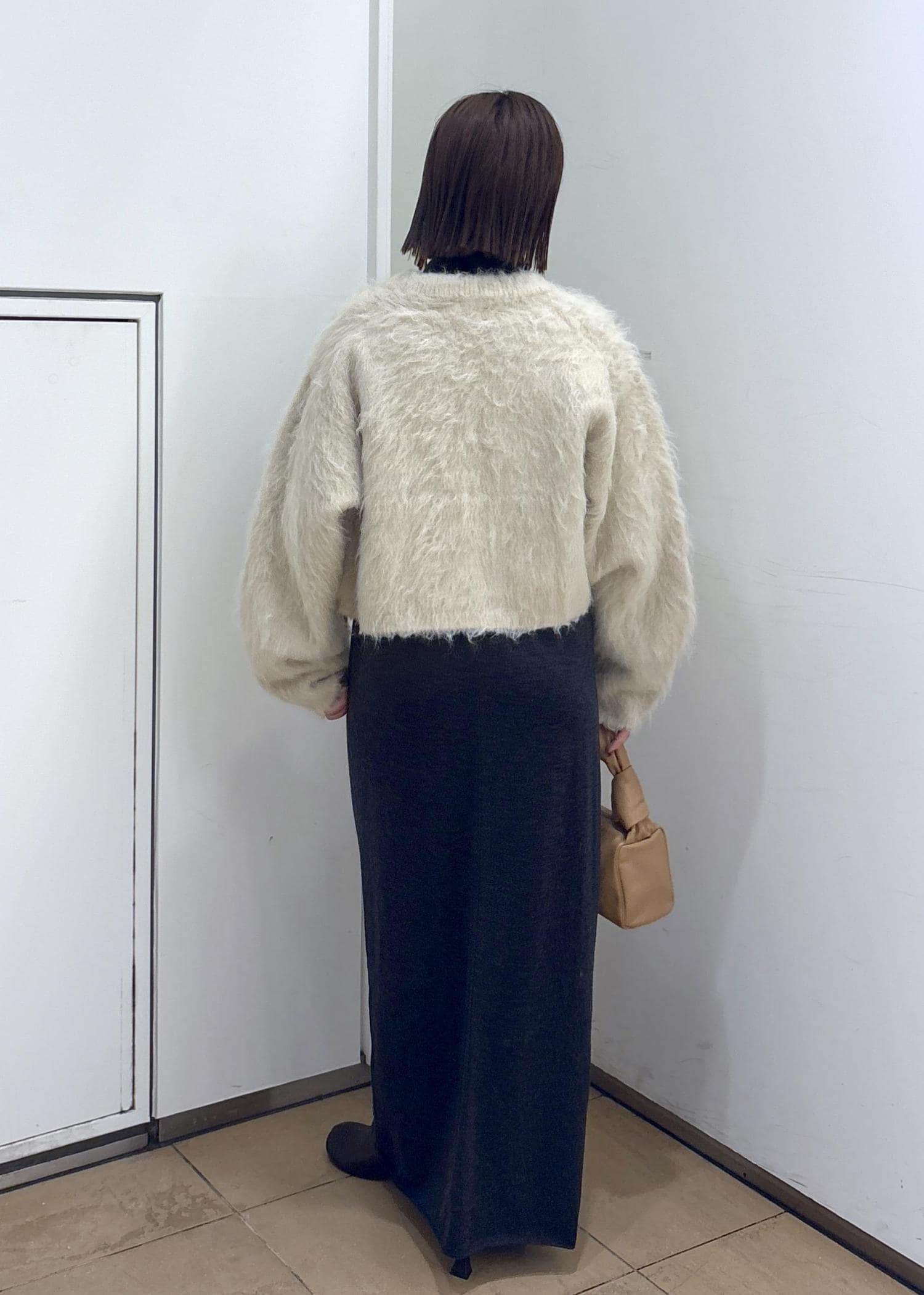 ADAM ET ROPÉ FEMMEアルパカフラッフィーカーディガンベージュ系 / F¥19,800レビュークリスマスや年末年始などに向けて大活躍しそうな1枚で着映えする華やかなニットです。暖かいので薄手のインナーでも着用できそうです◎