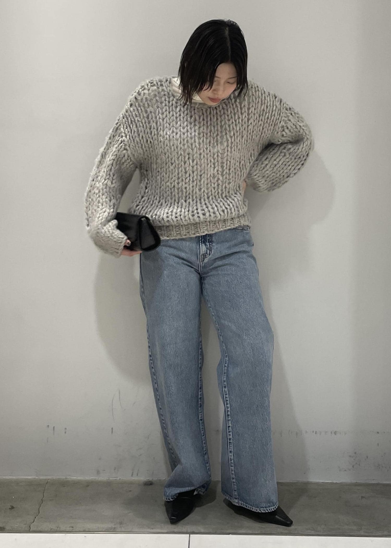 今回は、エモエレのローゲージニットプルオーバーを使って抜け感のあるカジュアルコーデを組んでみました♡