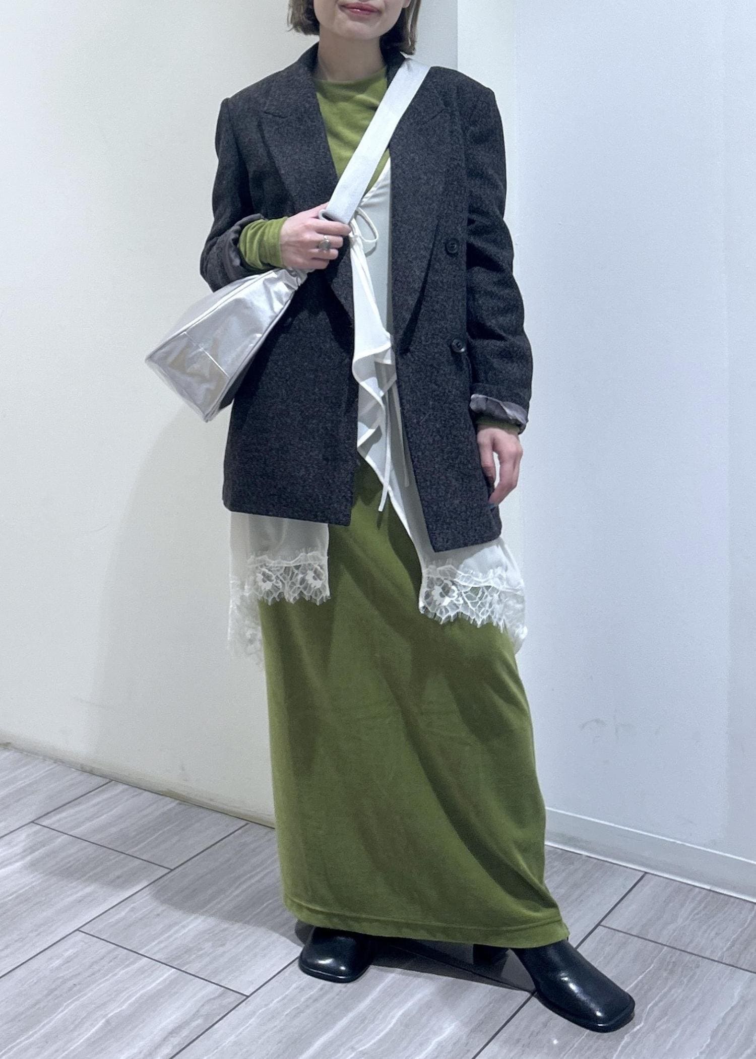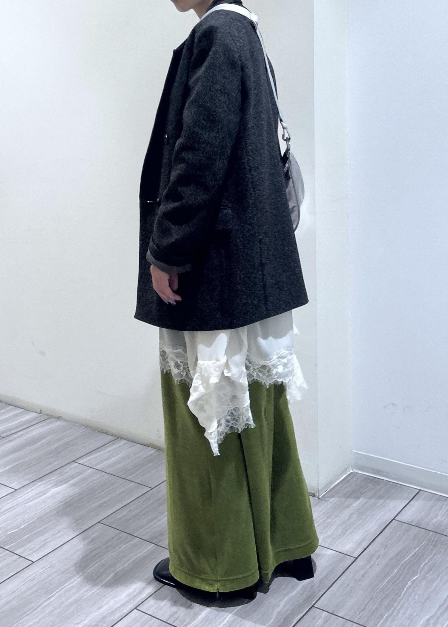 ADAM ET ROPÉ FEMMEベロア BOTANICAL DYED DRESSオリーブ / 1¥22,000レビューラインを拾い過ぎず、程良いサイズ感です!ストンと落ちたシルエットなので、スタイルアップ効果も◎