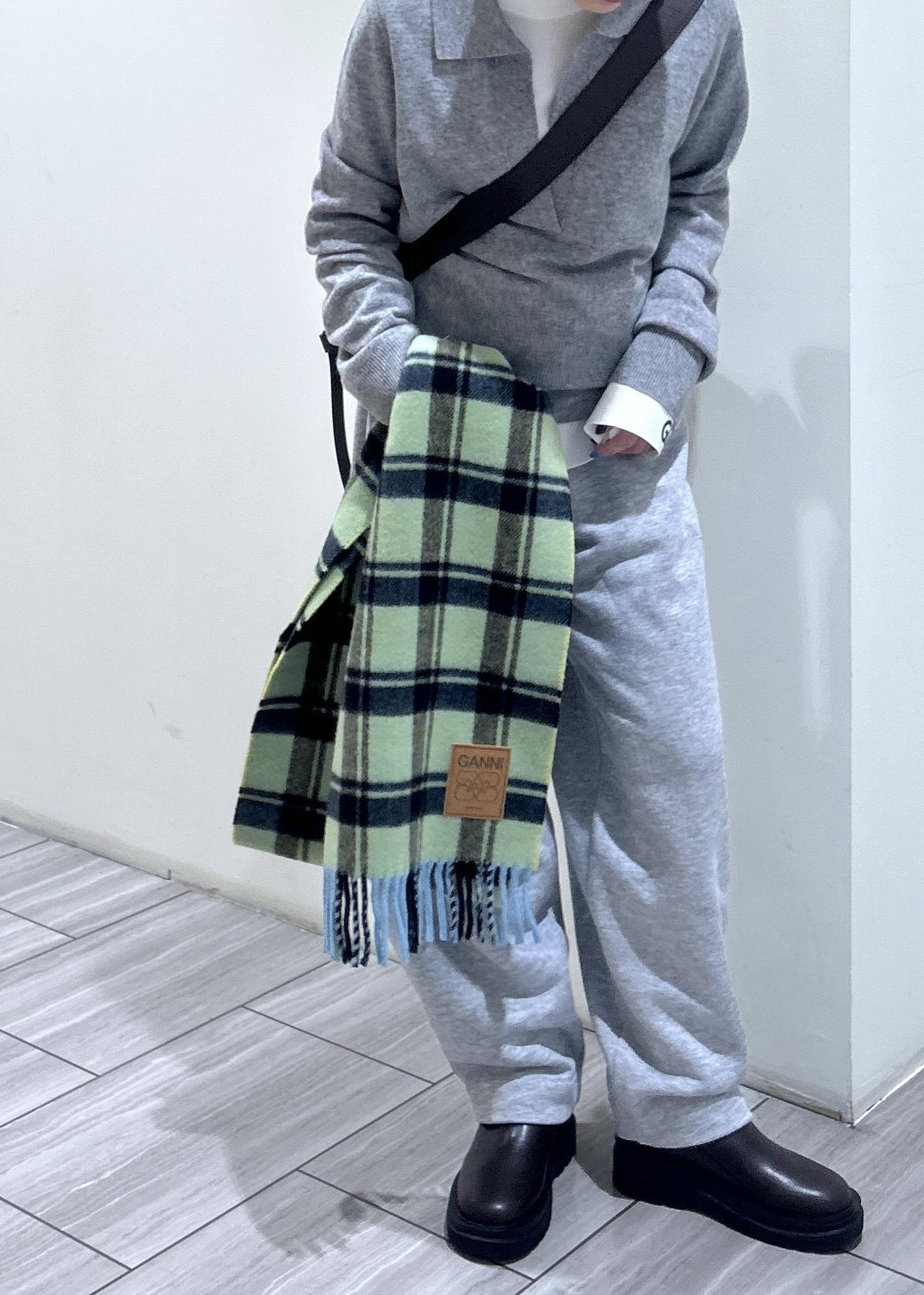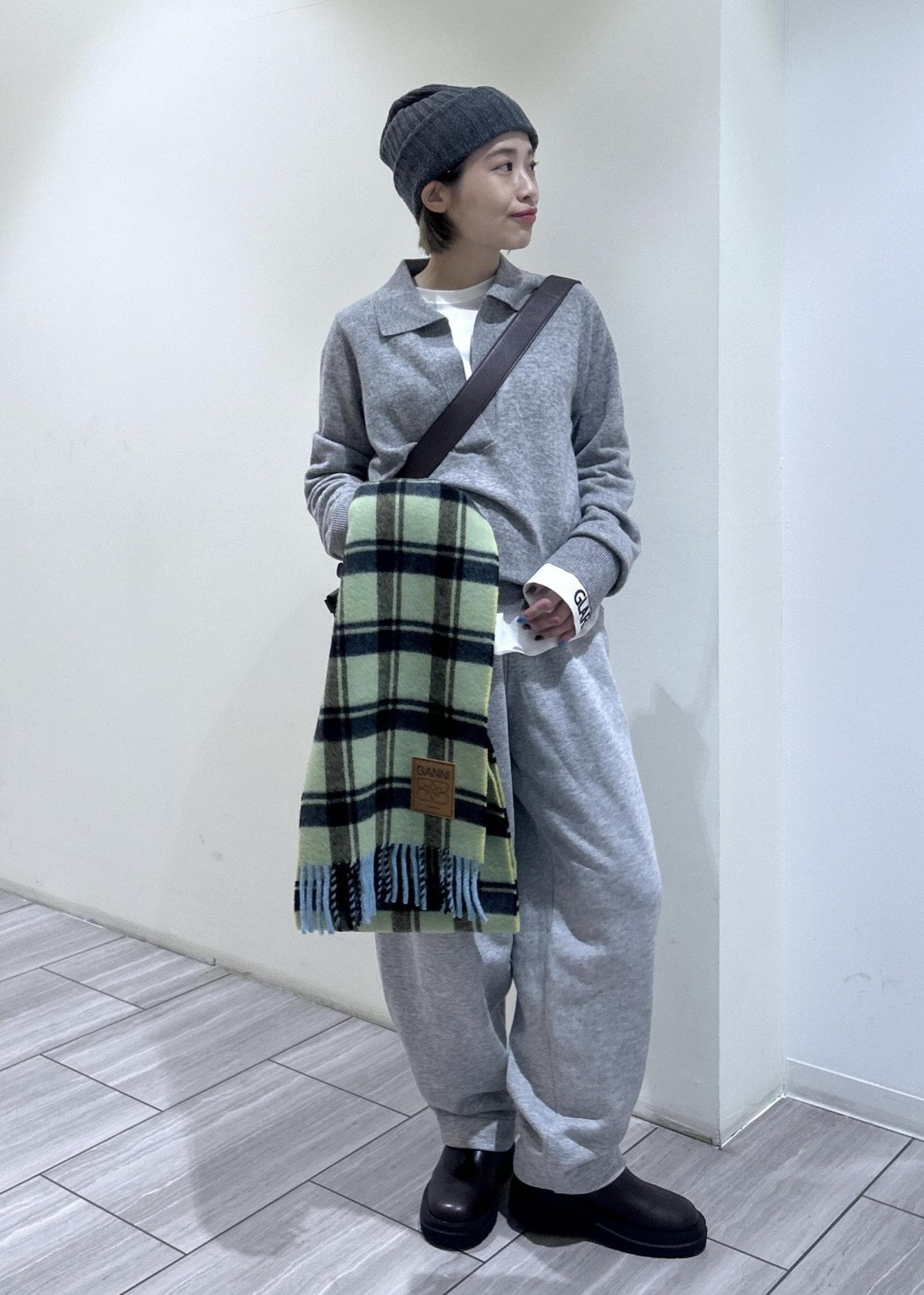 ニットとスウェットパンツを合わせてセットアップ風に着てみました。スウェットで上下合わせるのが苦手な方にオススメです◎