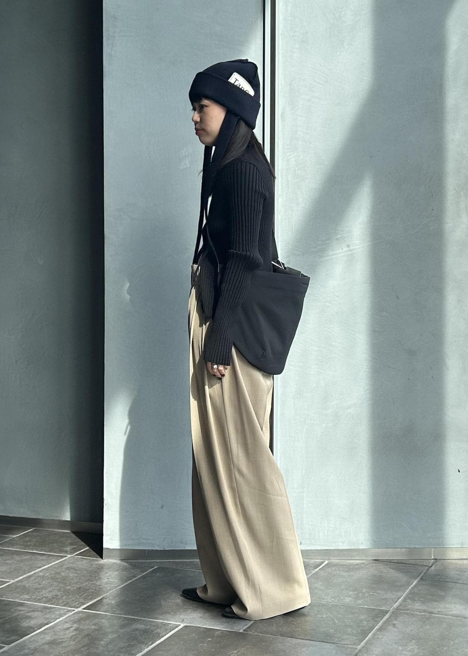 アウターを着る季節にも、コンパクトで汎用性が高い一着です。
