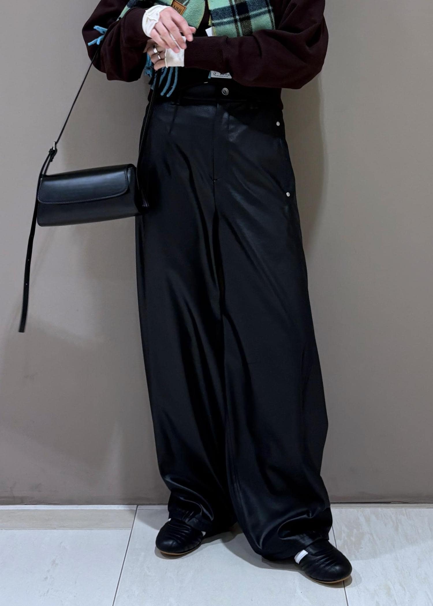 ADAM ET ROPÉ FEMMEグロスボンディングコクーンパンツブラック / 38¥22,000レビュー162cm.38サイズ着用。