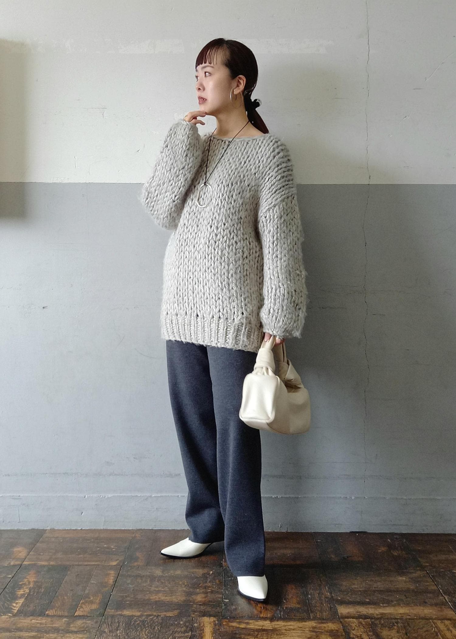 EMOELLE【EMOELLE】ローゲージニットプルオーバーグレー系 / F¥28,600レビューヒップがすっぽりと隠れきる着丈です。