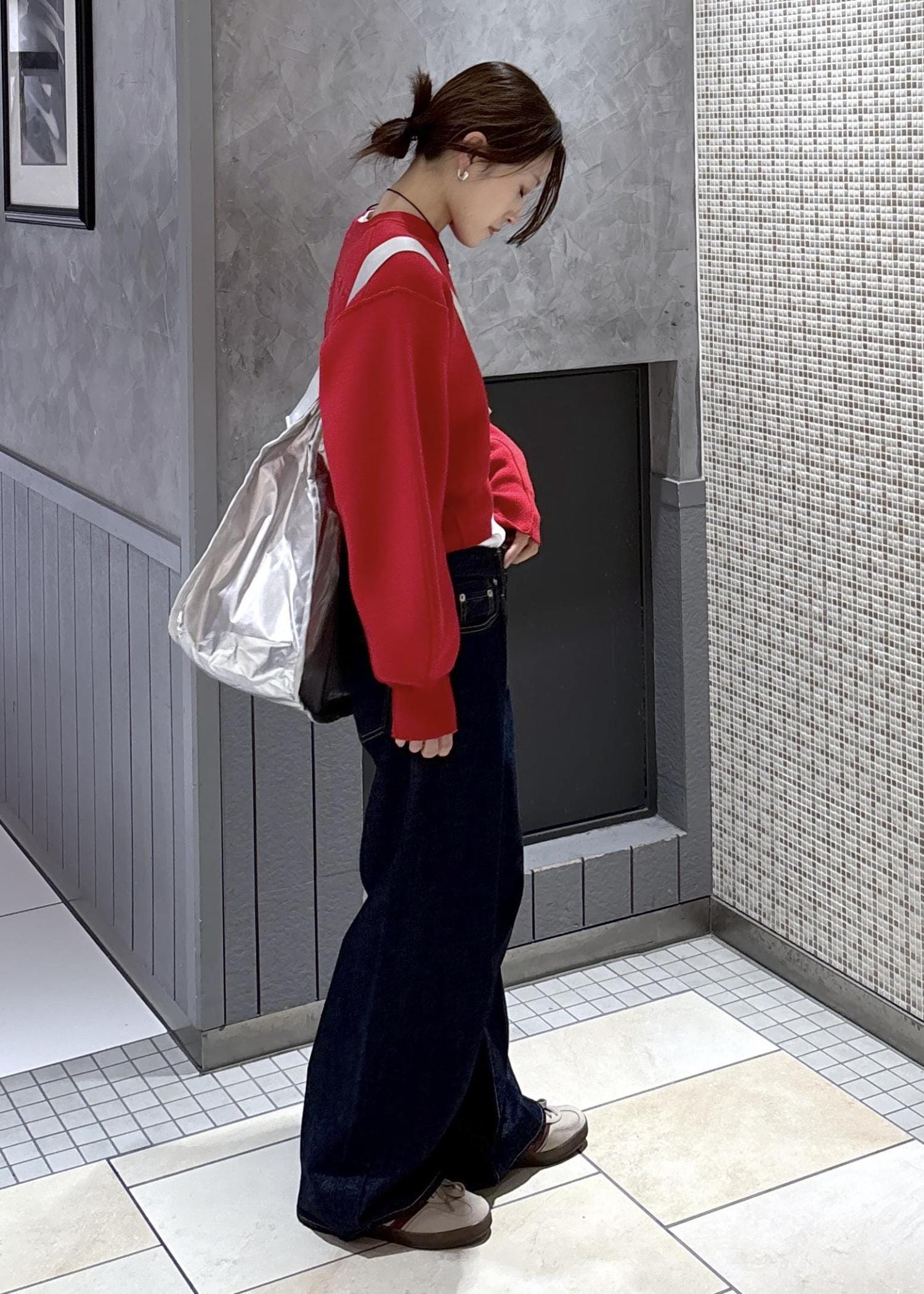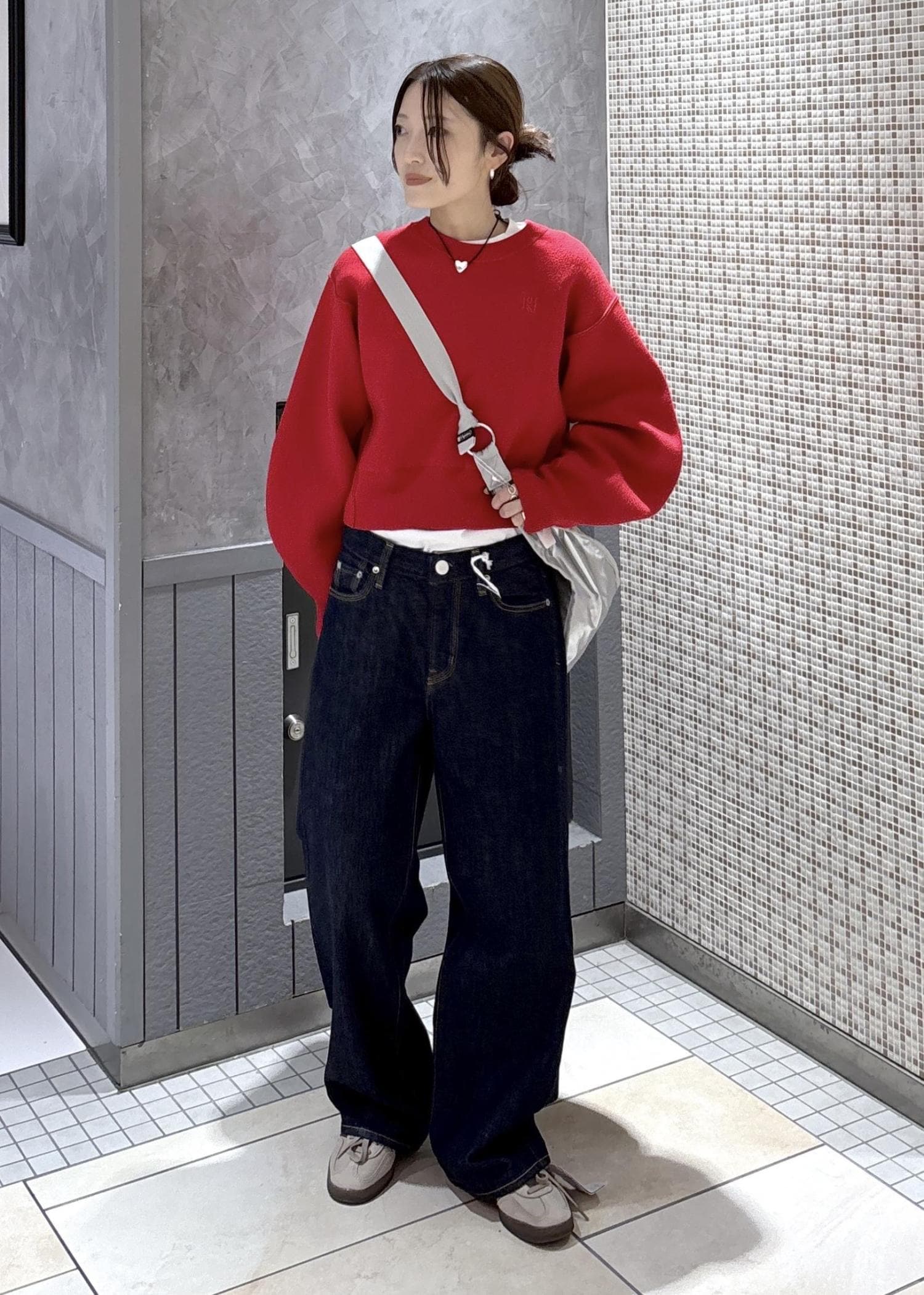 クリスマスっぽい赤のロゴパッチスウェットを着てみました!