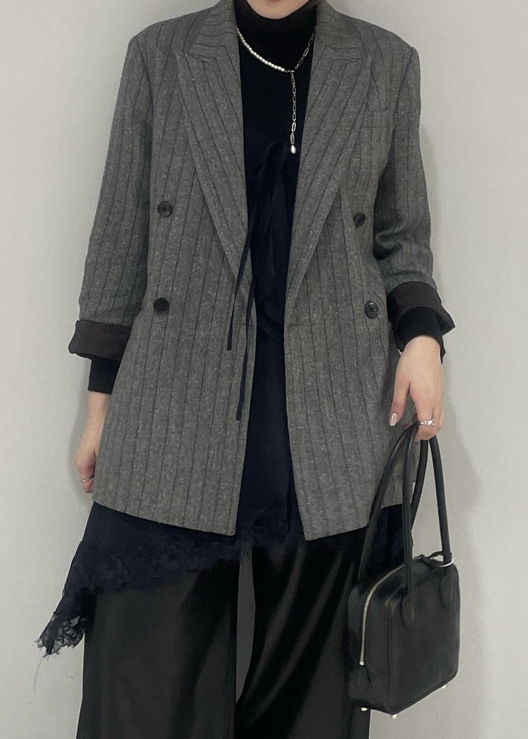 本日はダブルブレストツイードチェックジャケットと、レースジレを使ってモードスタイルを組んでみました!