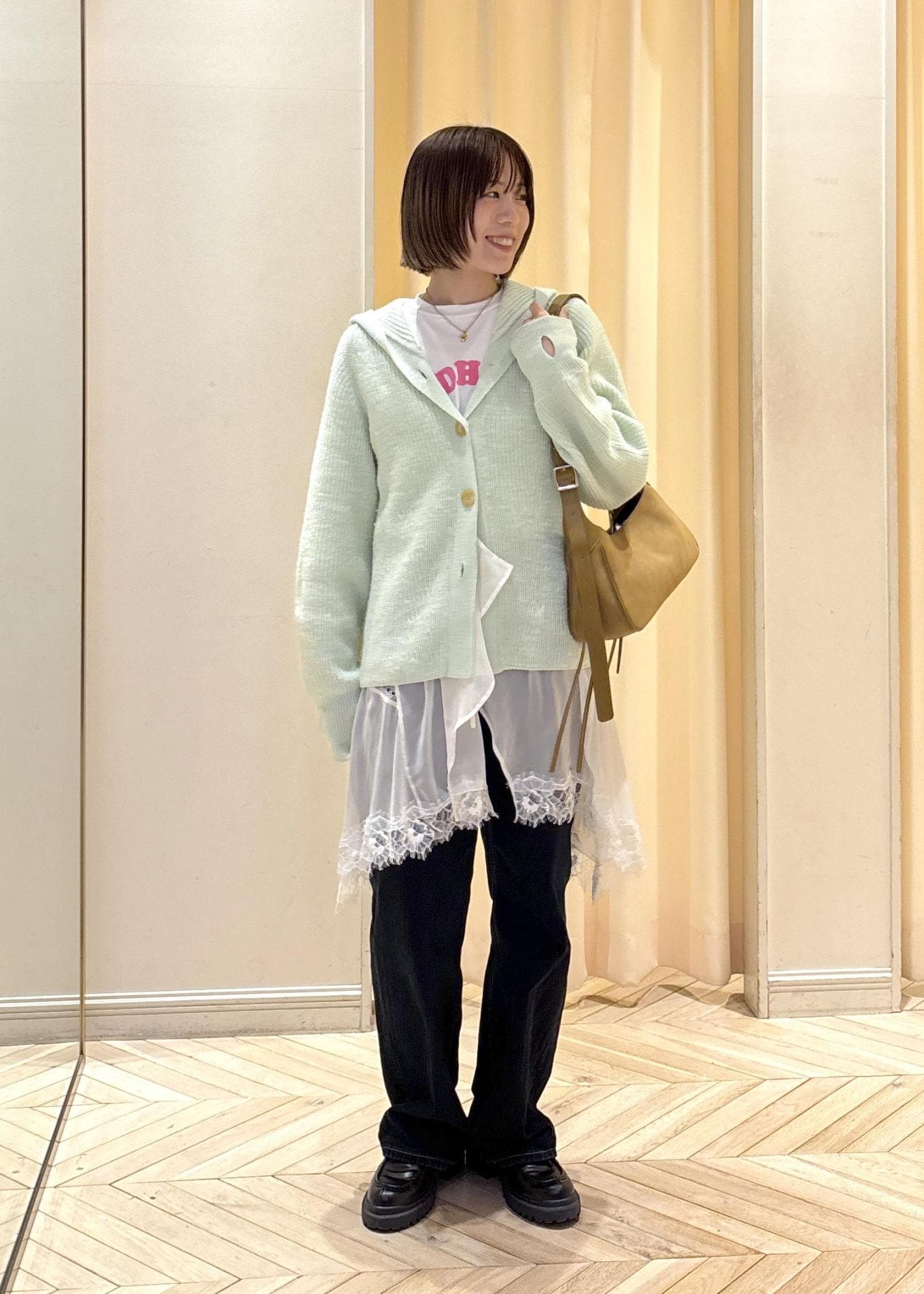 今回は店頭でも着用している、フーディカーディガンとレースジレを合わせたリアルバイスタイリングです♡