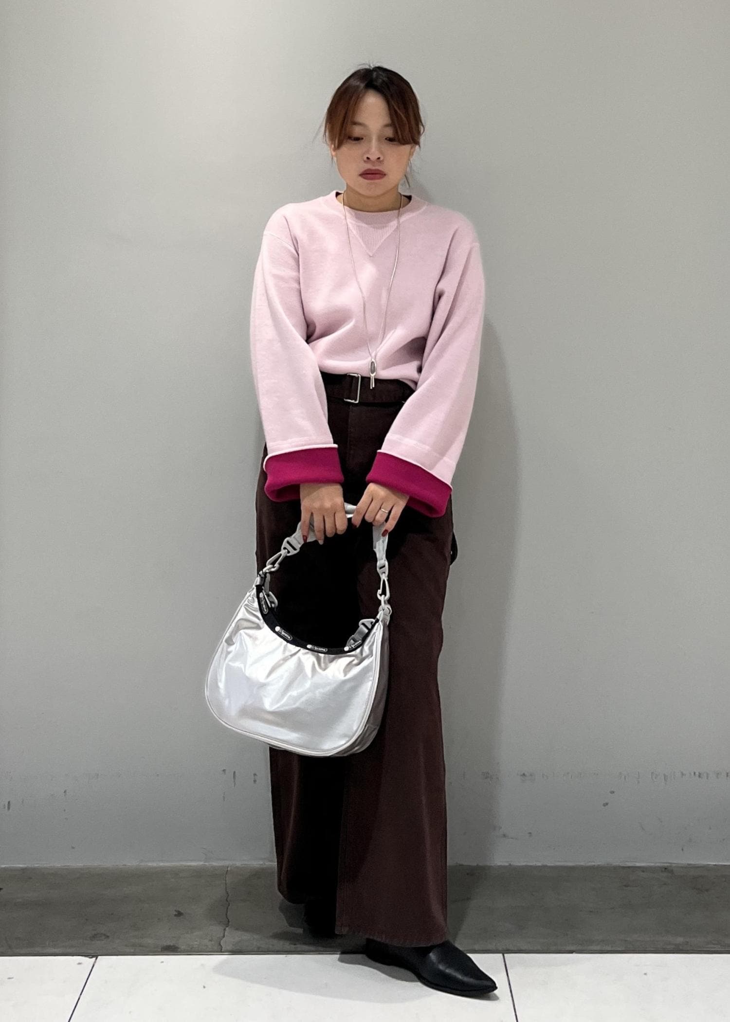 シルバーのバックは何に合わせてもコーディネートの差し色になりますよ♩
