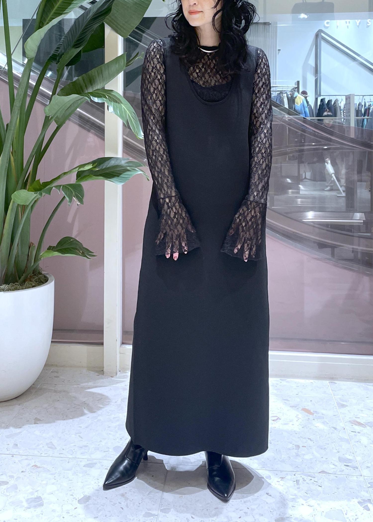 ワンピース部分も、程よくハリ感のあるニット素材で体のラインを拾いにくく、すっきりと着れるシンプルデザイン。