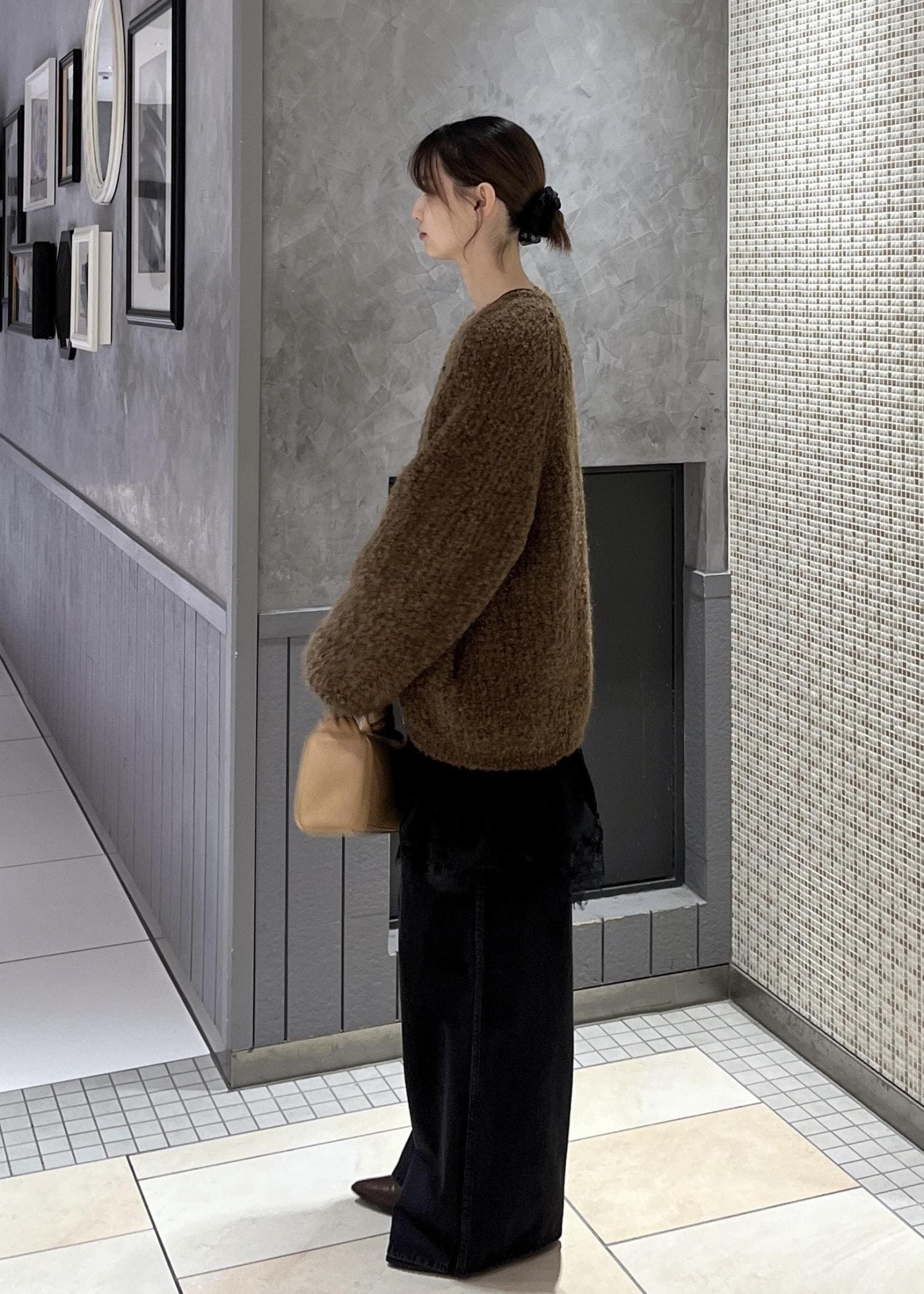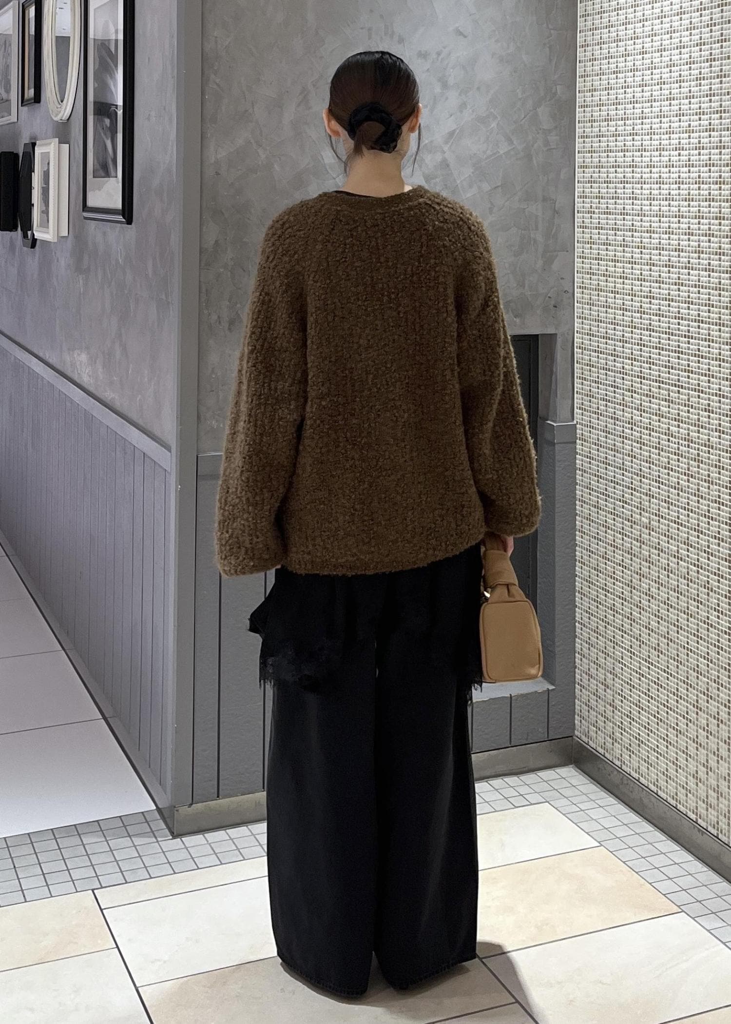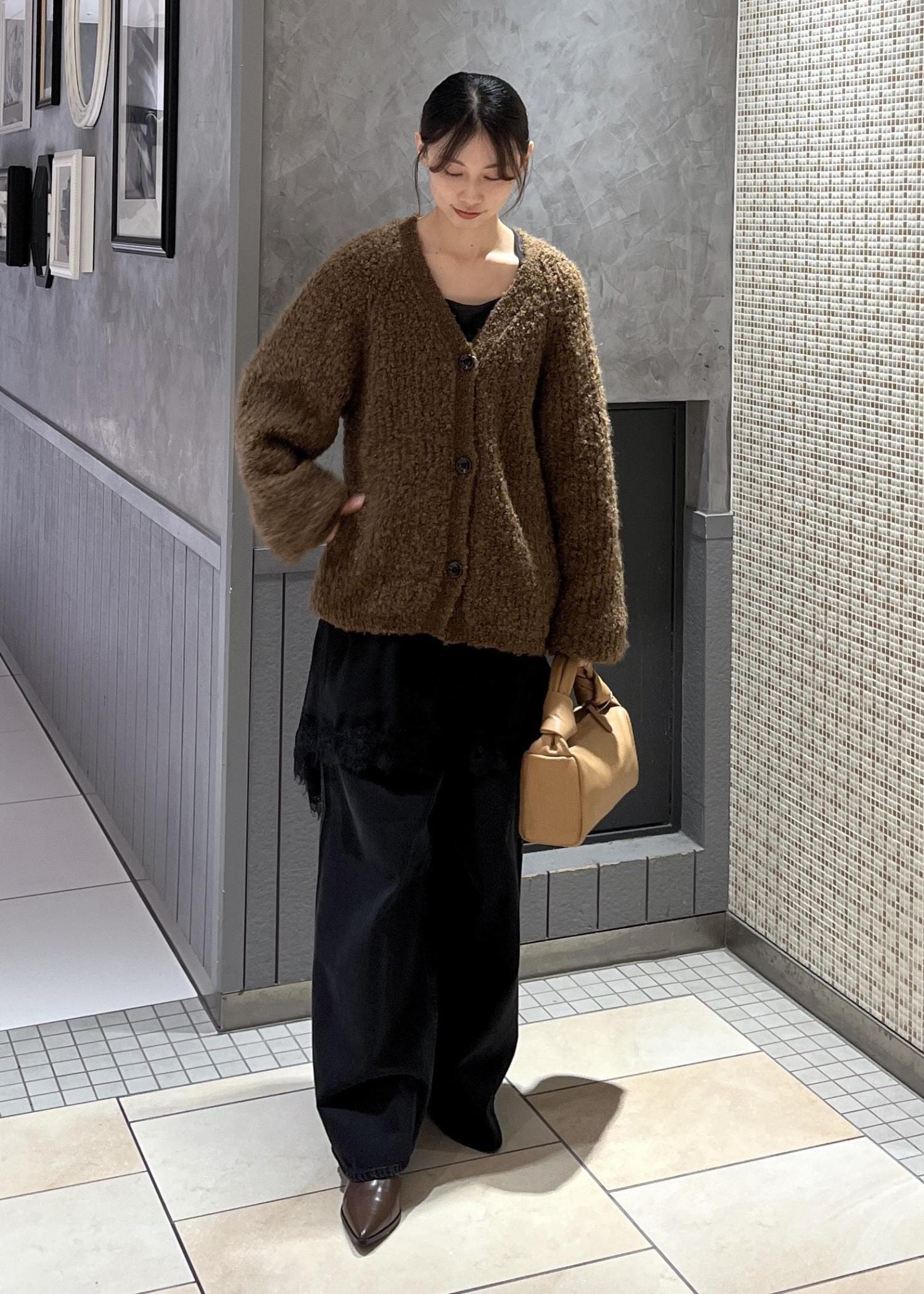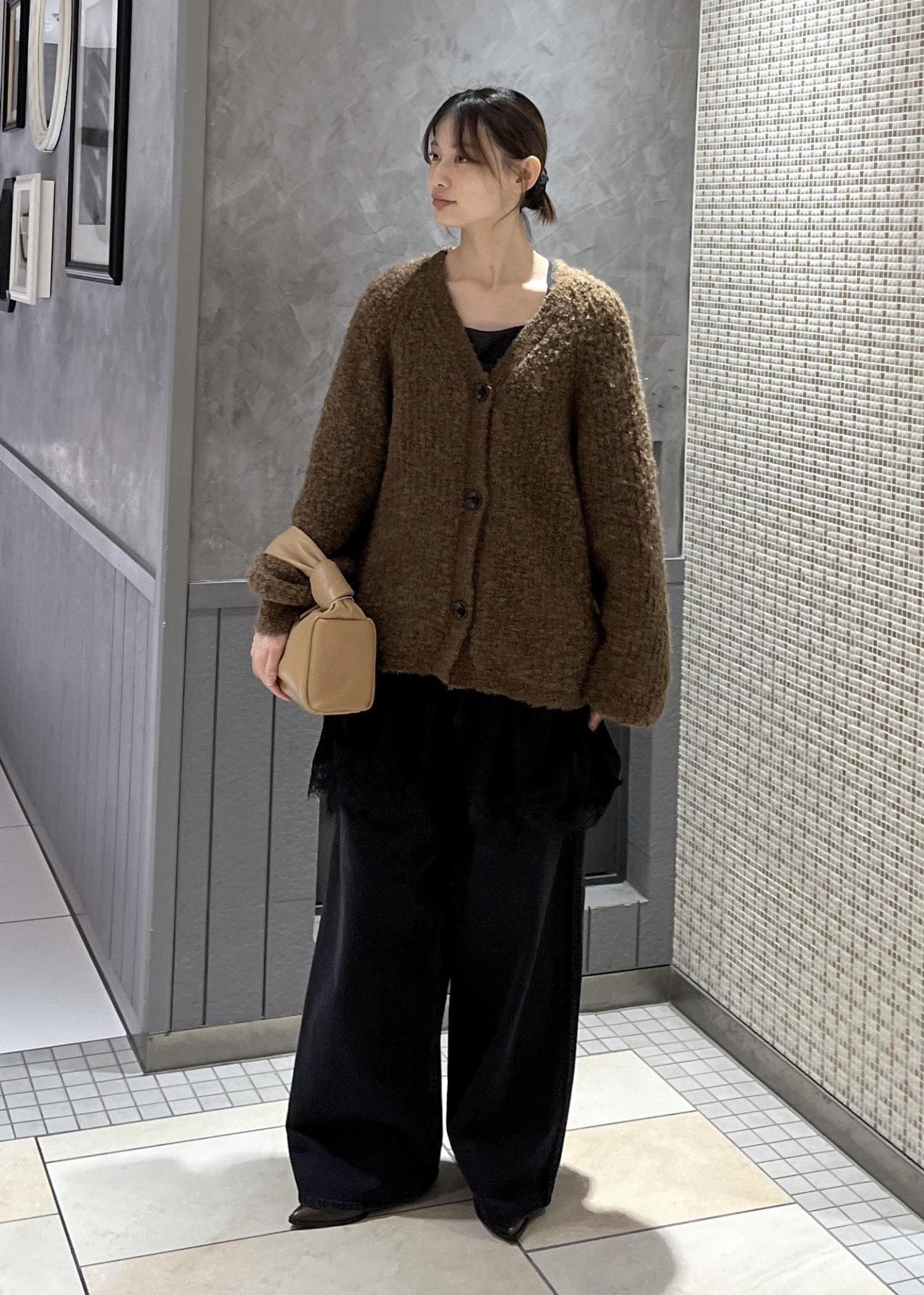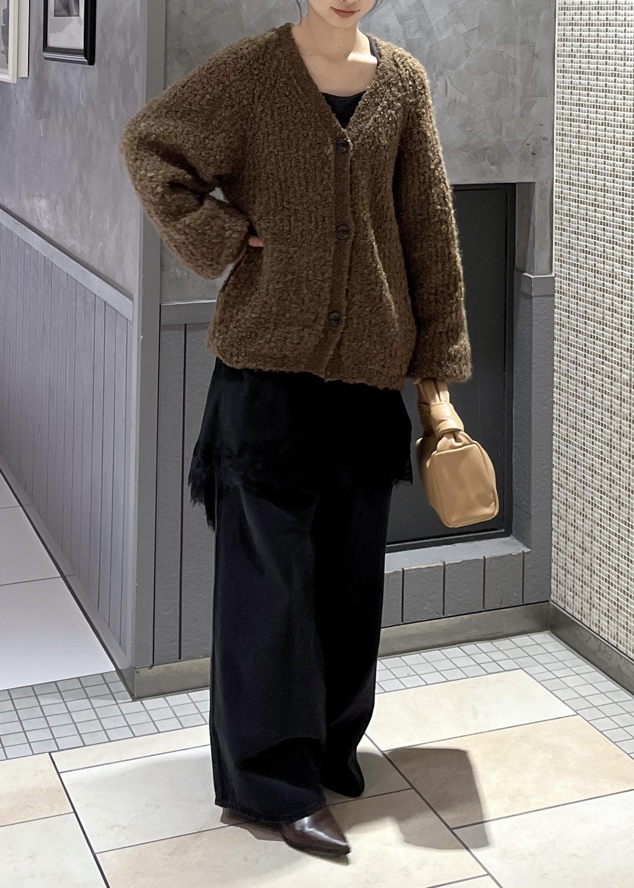 今回はモヘヤウールニットカーディガンブルゾンをポイントにしてコーディネートを組んでみました。