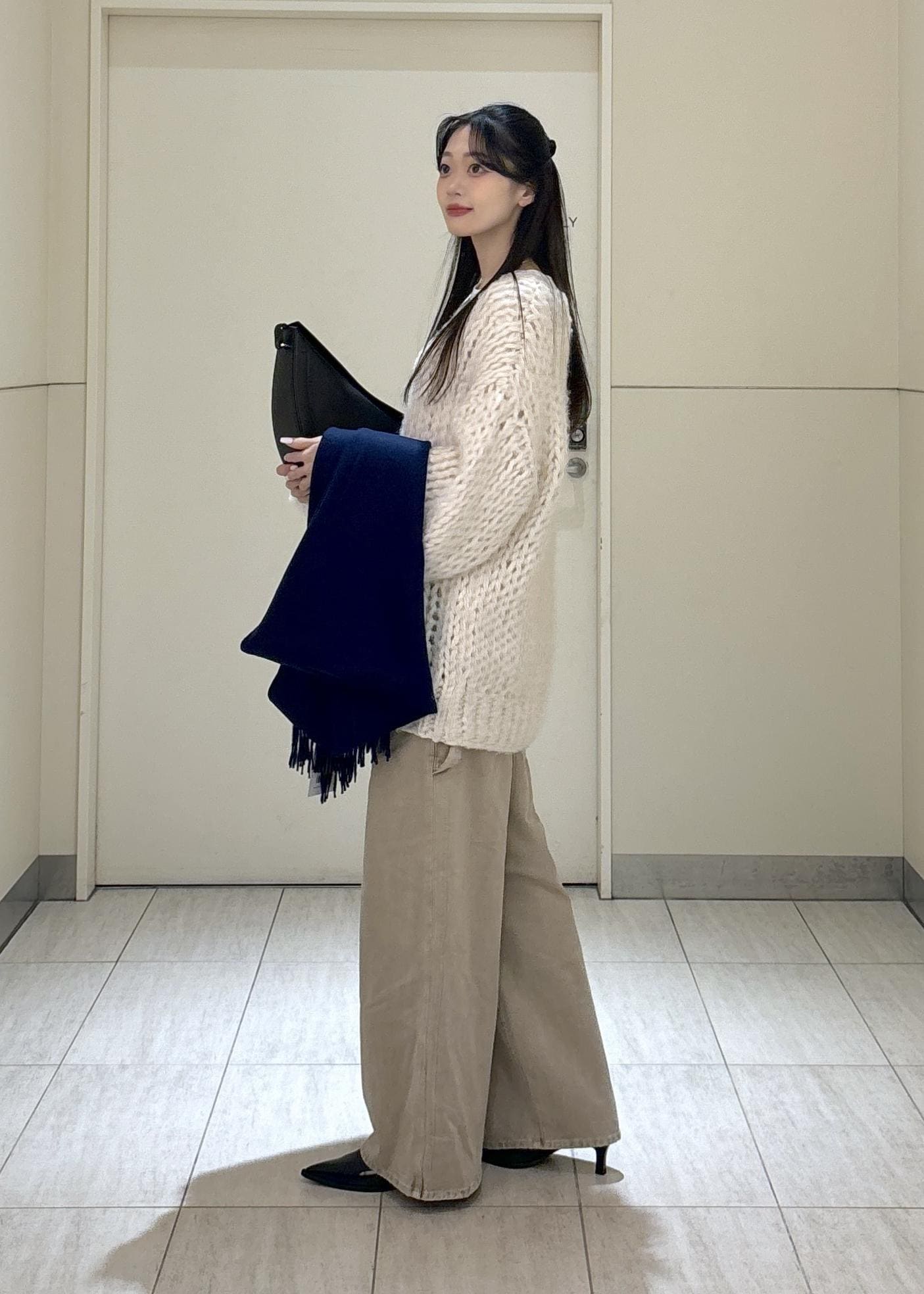 程よくゆとり感も有りつつ、お尻周りのシルエットもすっきりめなので重たく見えないシルエットです◎ -