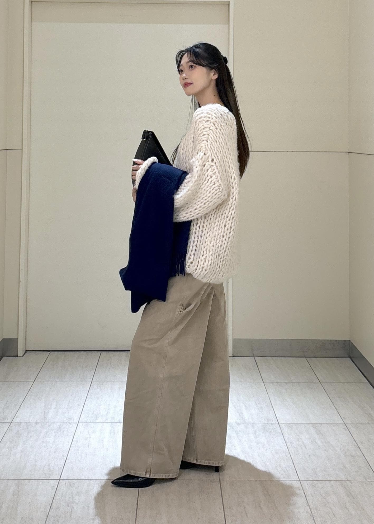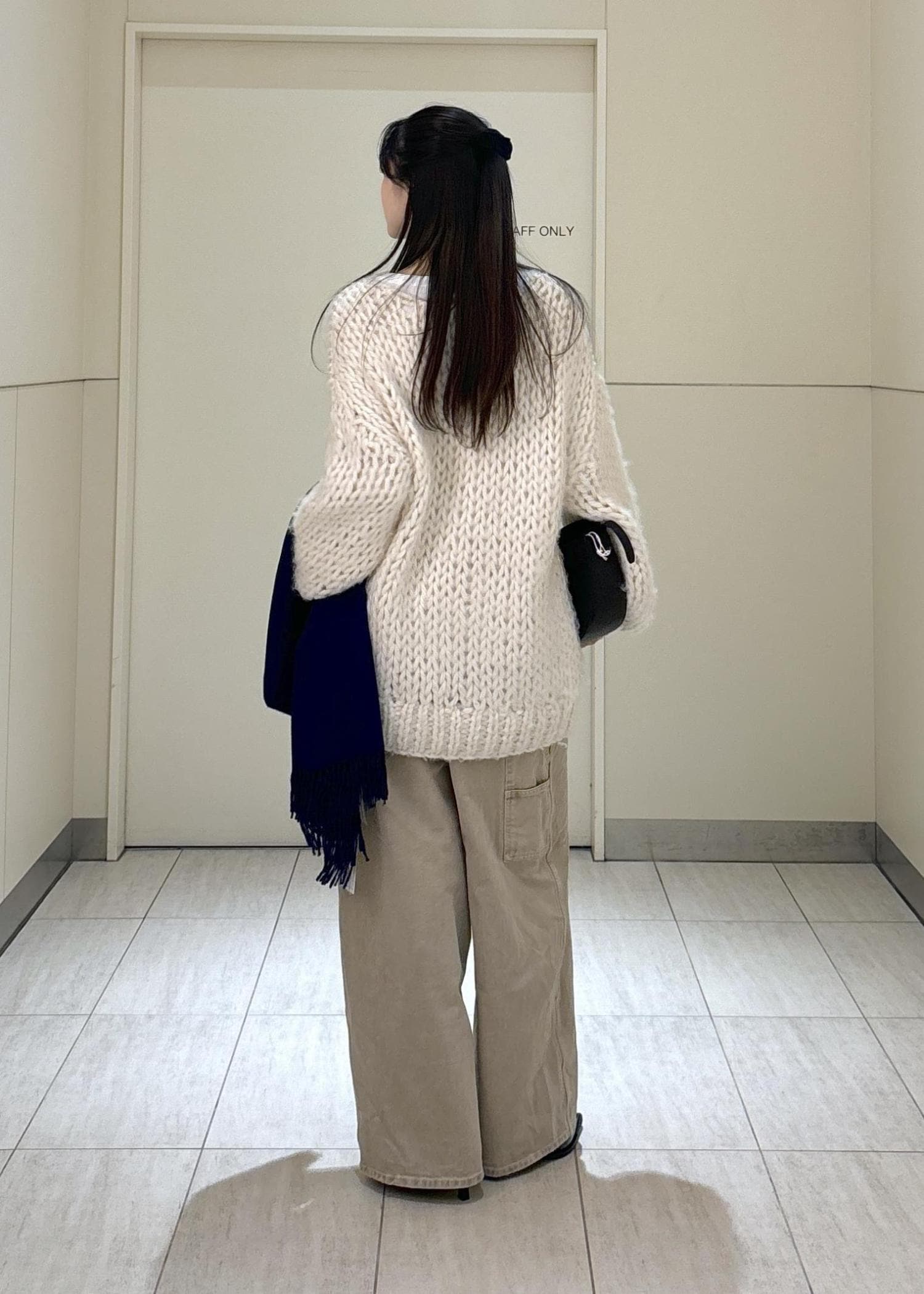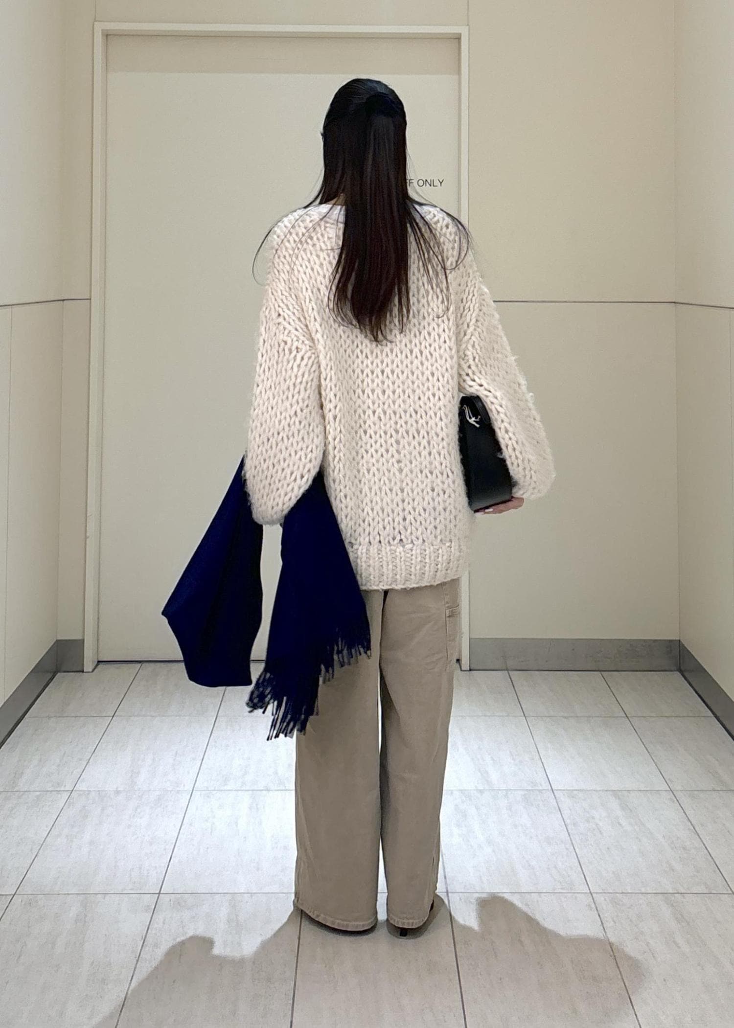 ざっくりとした編地を活かしたシンプルなデザインながら、サイズ感と起毛感にこだわった1着です◎