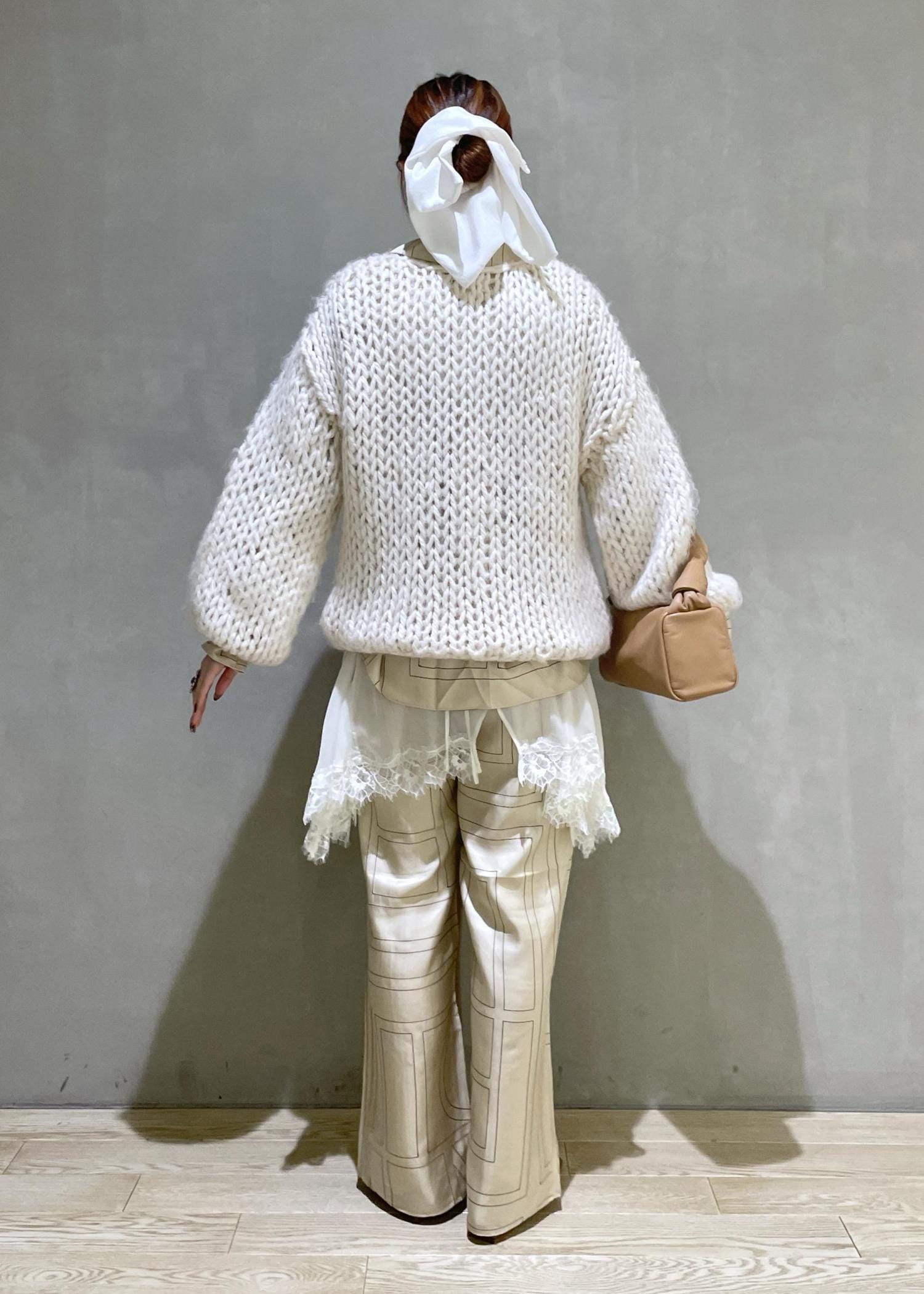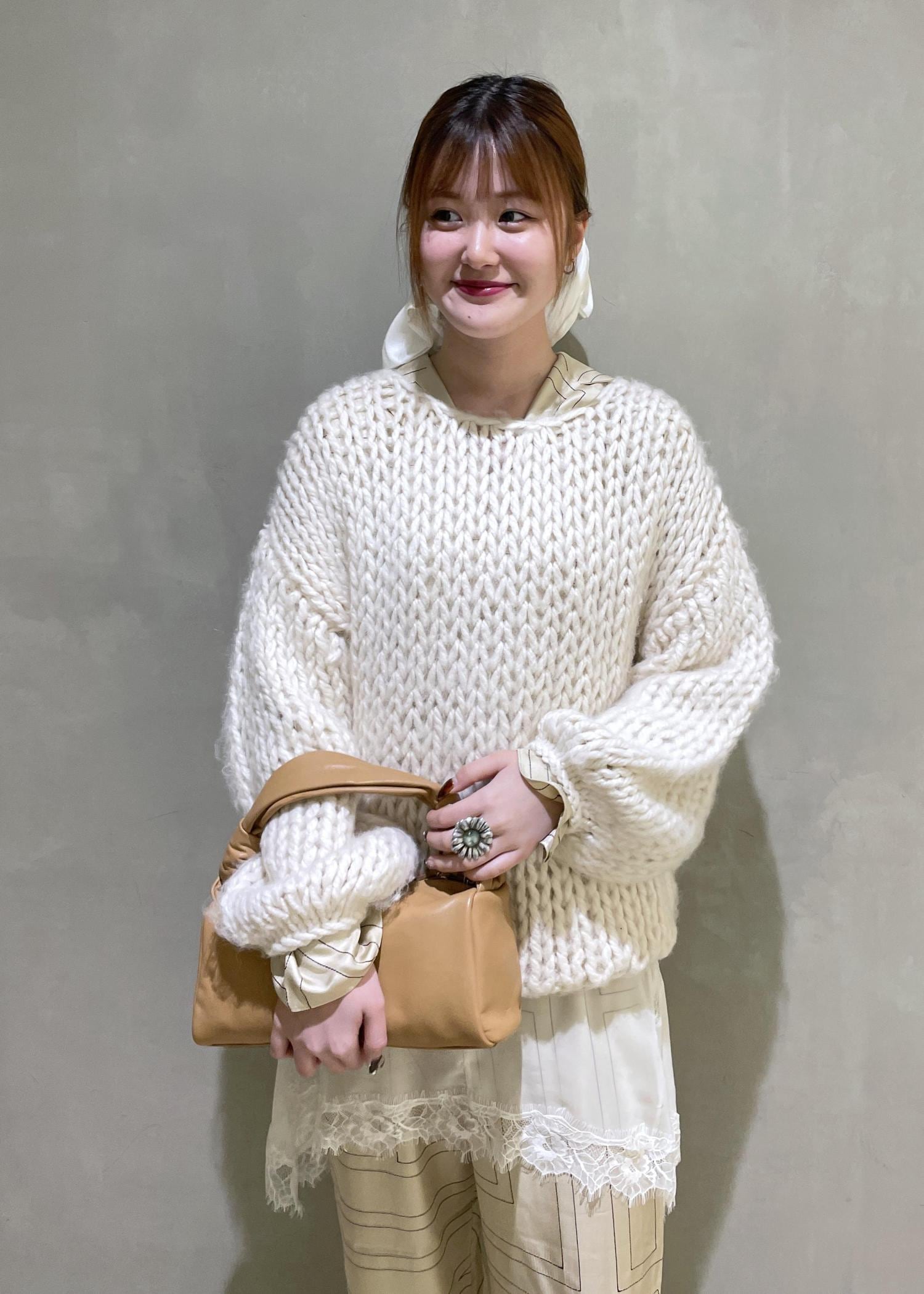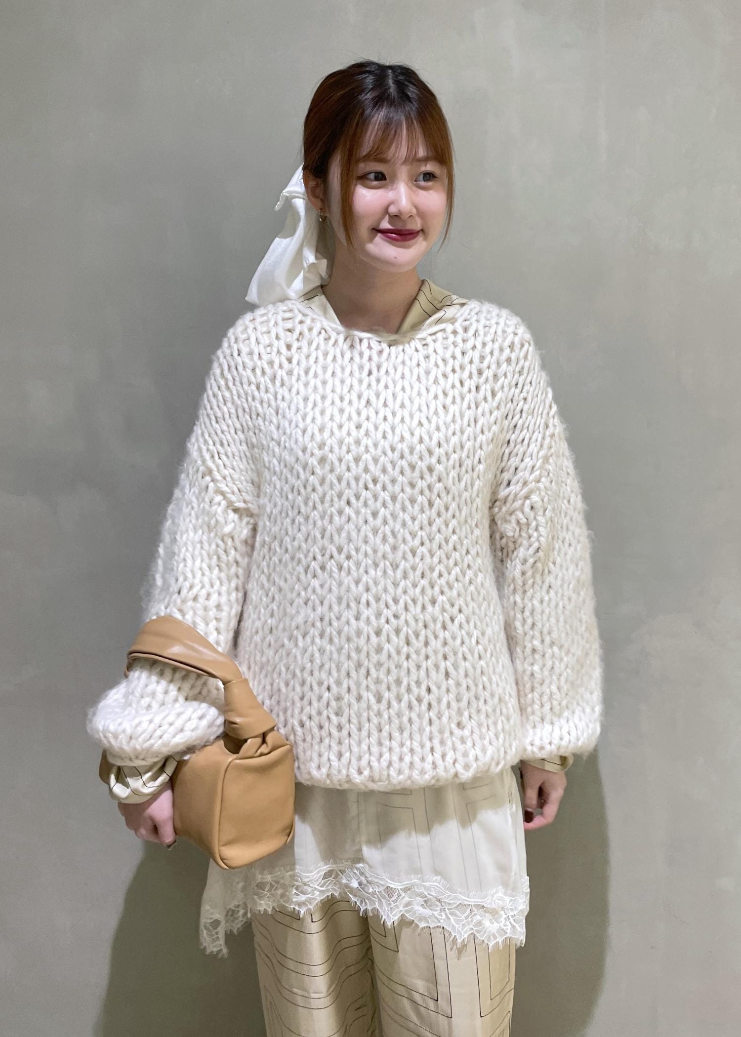 EMOELLE【EMOELLE】ローゲージニットプルオーバーオフホワイト / F¥28,600レビュー大きめのかぎ針編みの存在感あるニットでオーバーサイズめです!