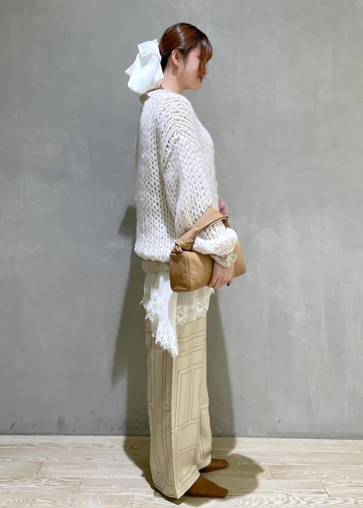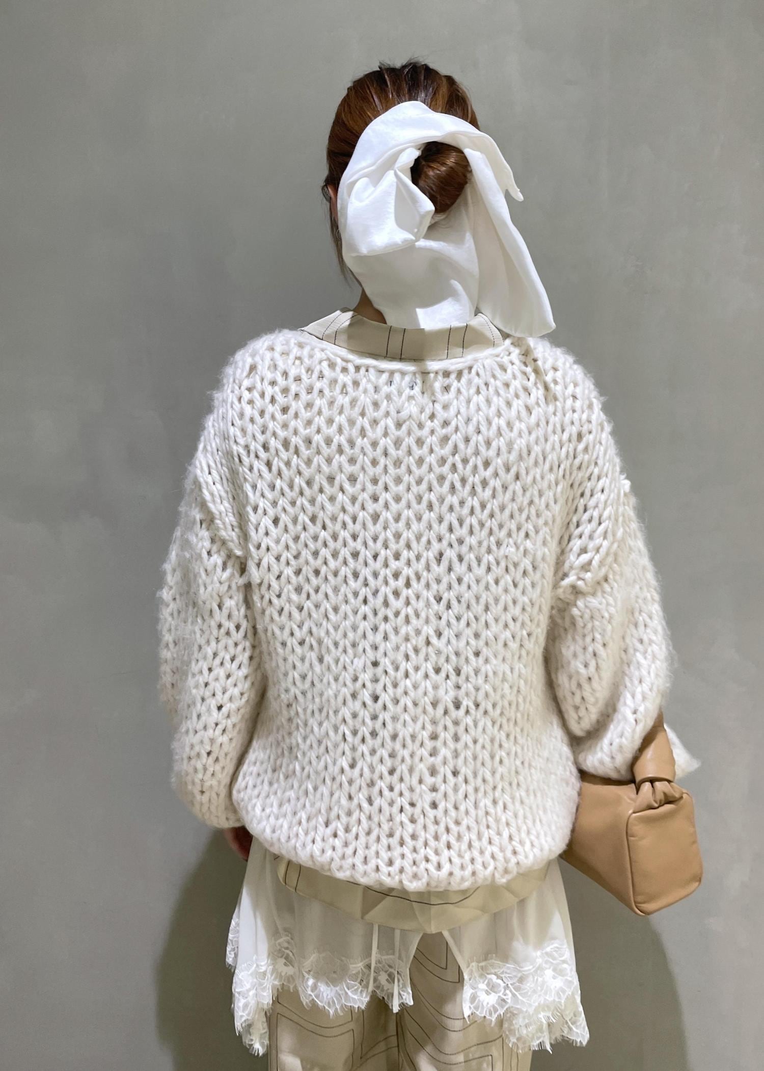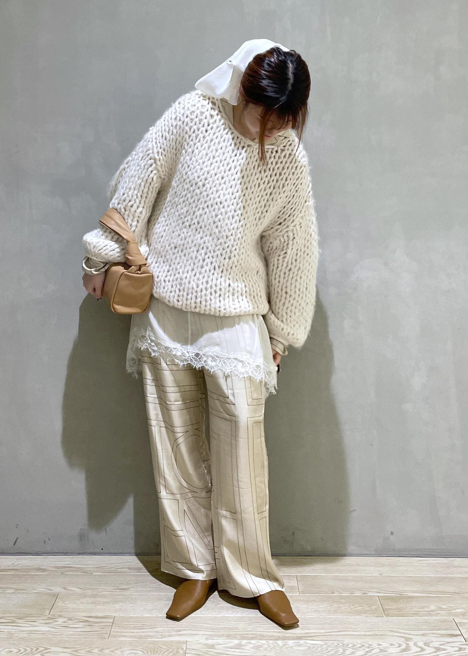 EMOELLE【EMOELLE】ローゲージニットプルオーバーオフホワイト / F¥28,600レビュー大きめのかぎ針編みの存在感あるニットでオーバーサイズめです!