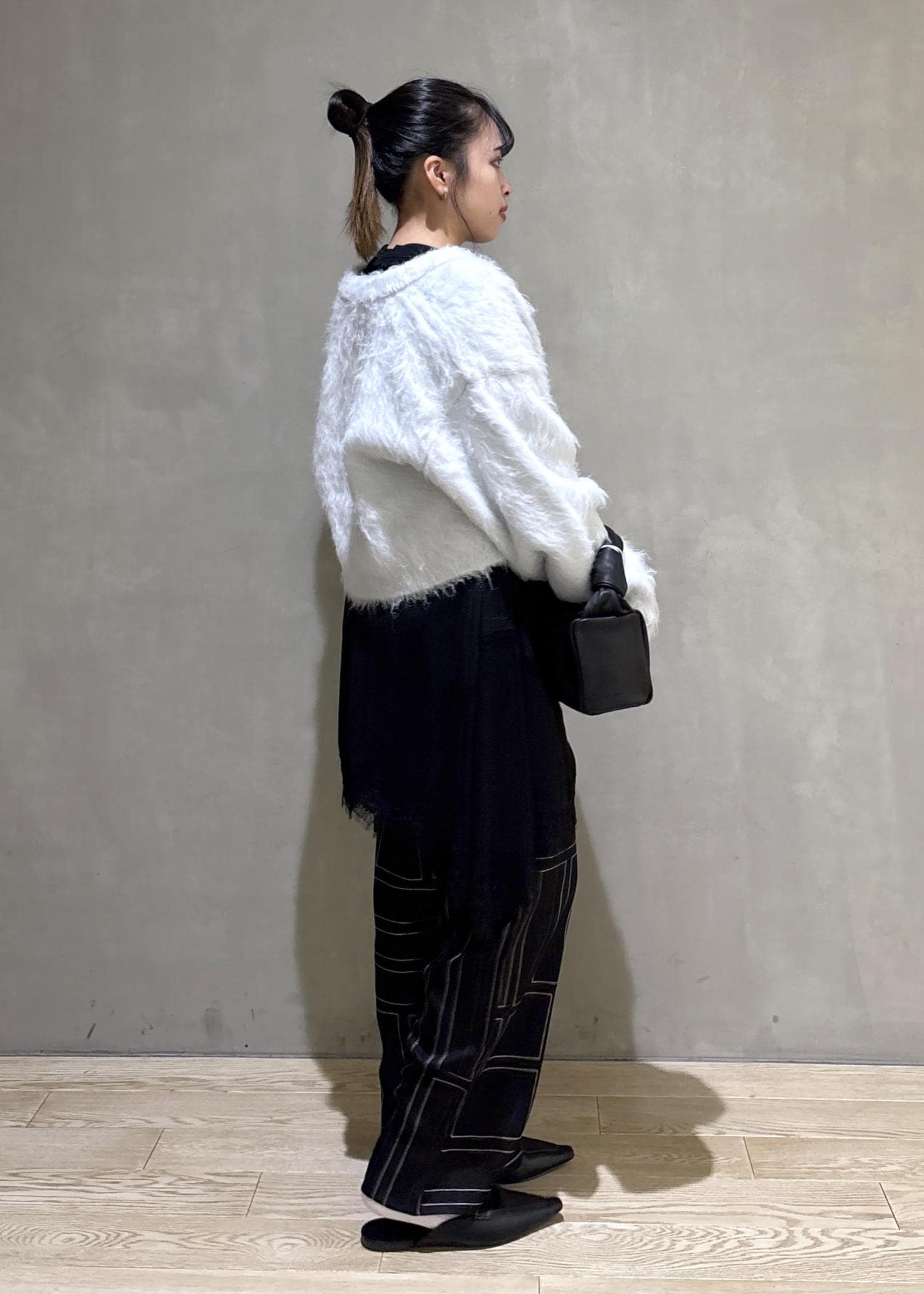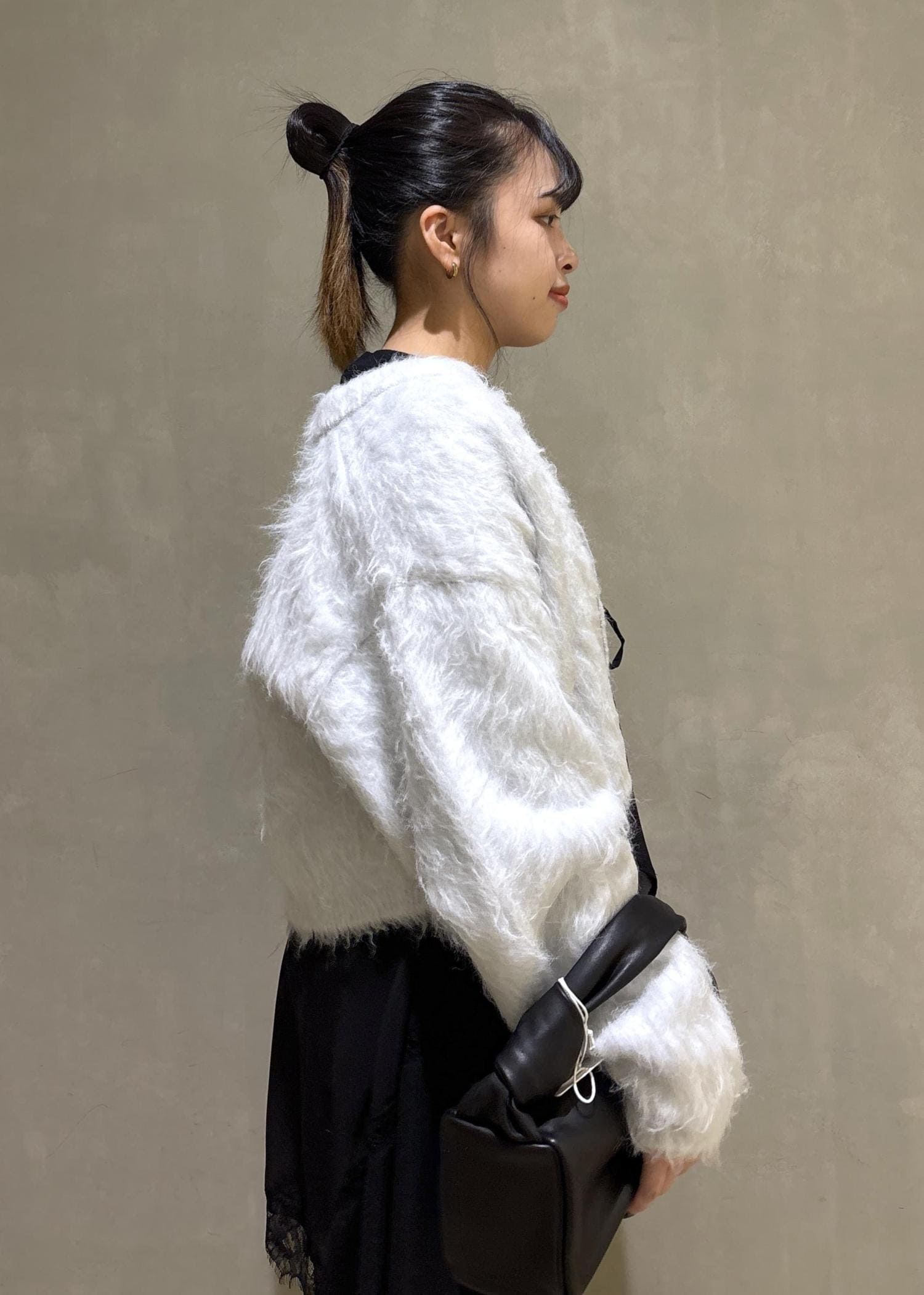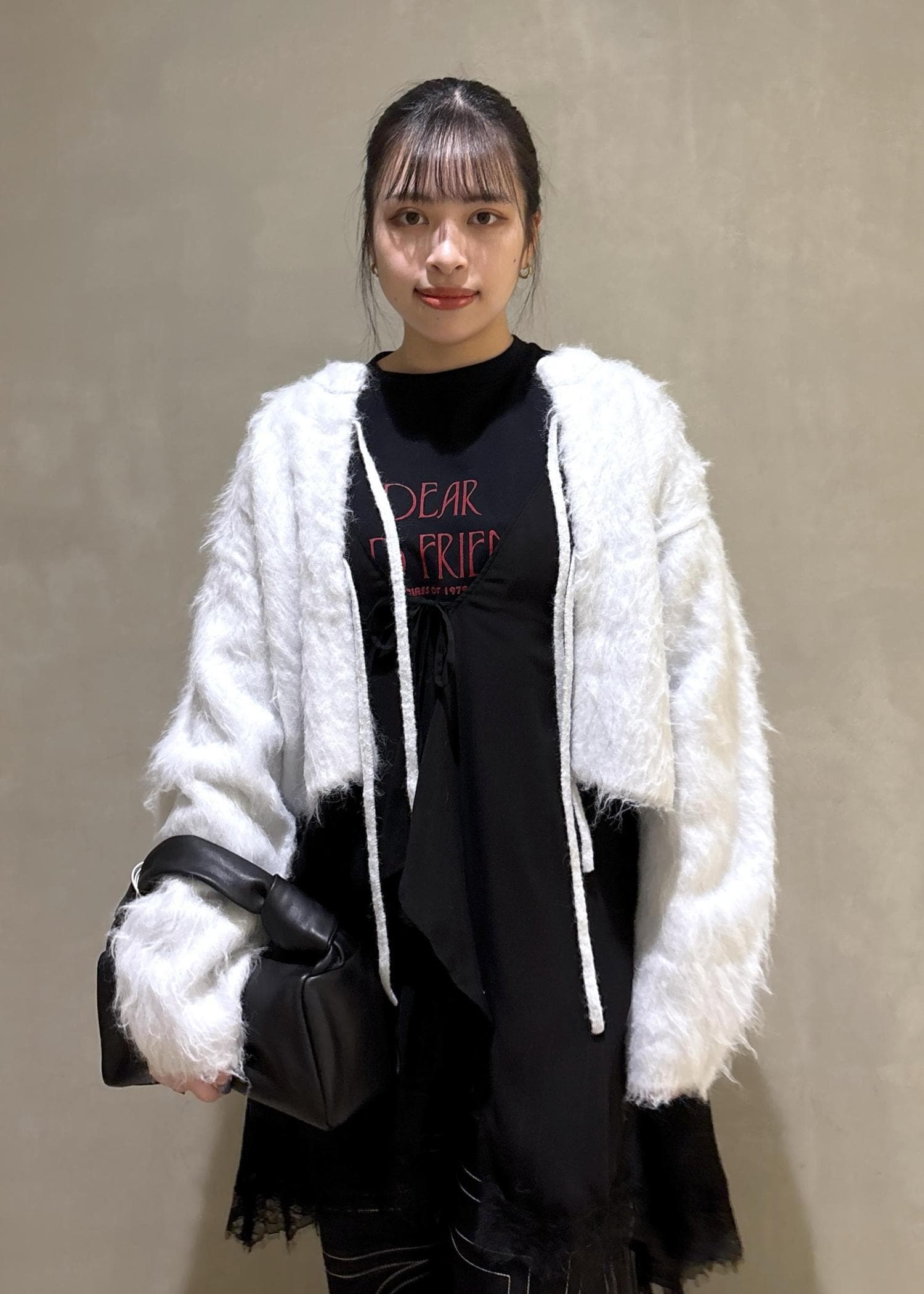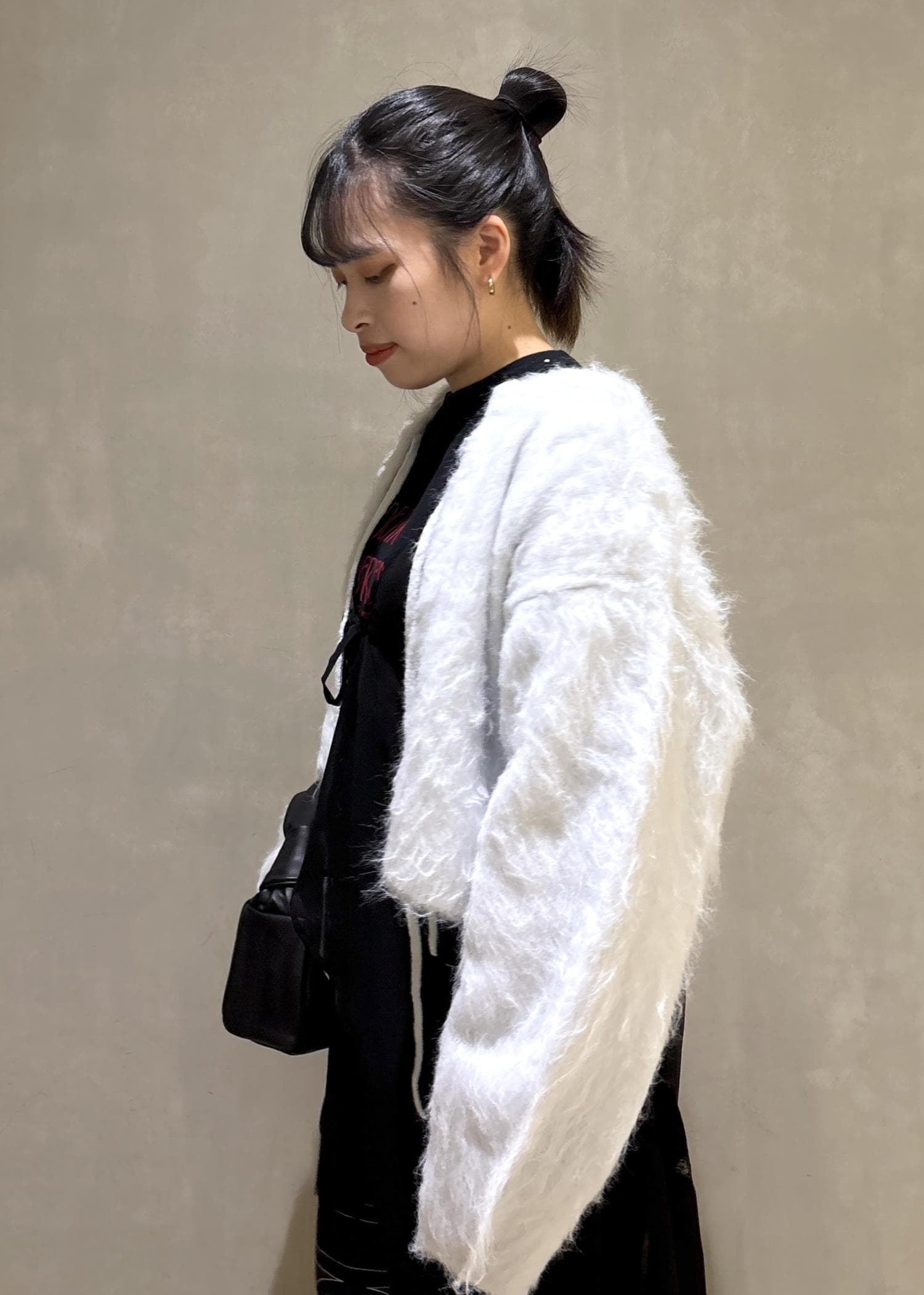 ADAM ET ROPÉ FEMMEアルパカフラッフィーカーディガンサックス / F¥19,800レビュー腕周りゆったりしてるので中に厚手のものも着れます。紐はリボンにしても垂らしててもかわいいです。