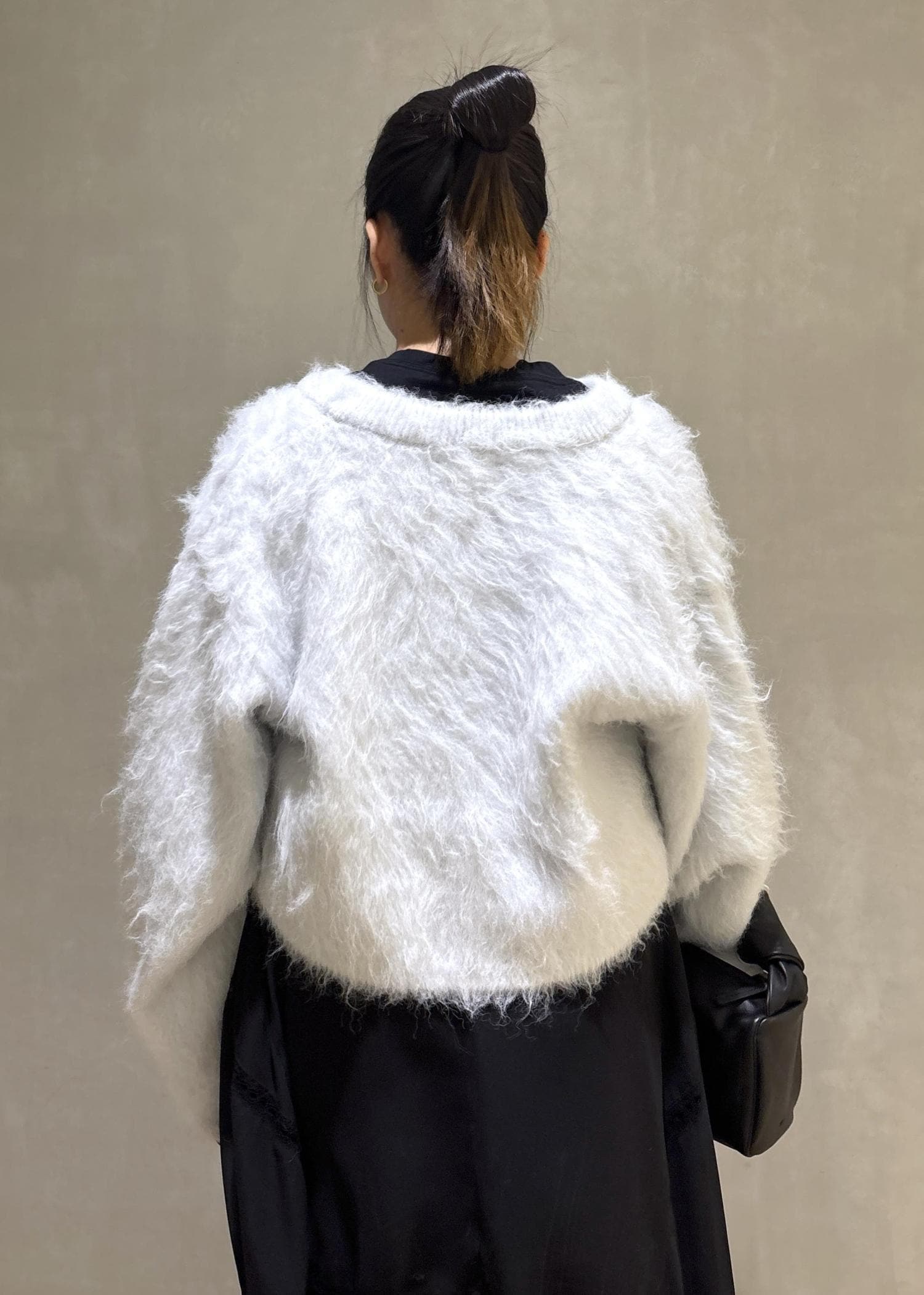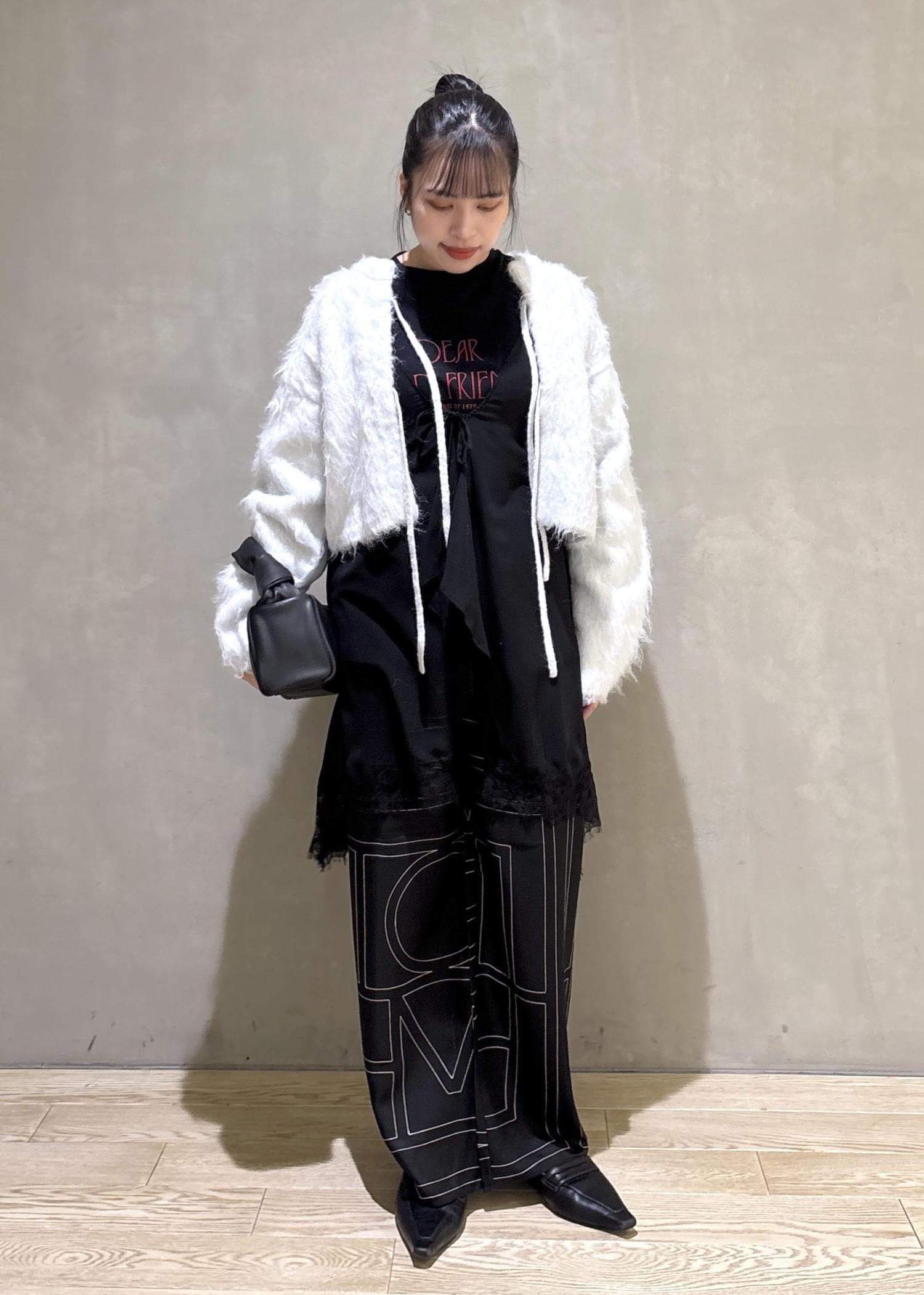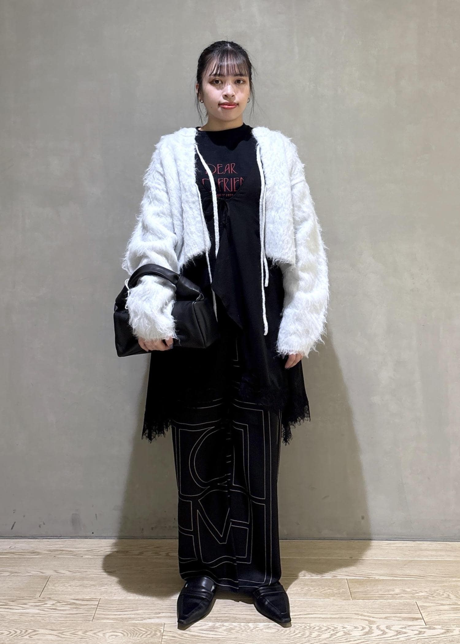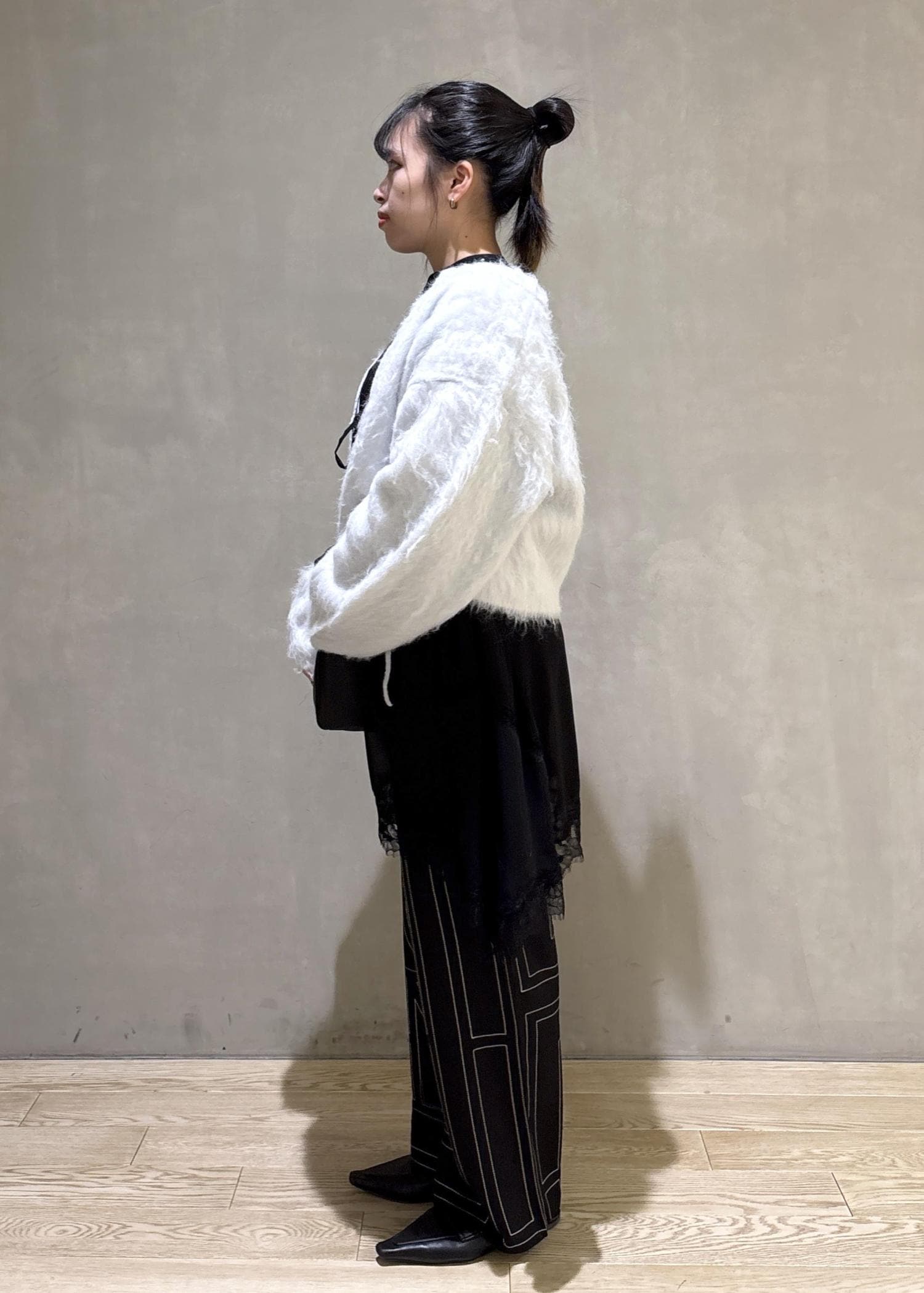 ADAM ET ROPÉ FEMMEアルパカフラッフィーカーディガンサックス / F¥19,800レビュー腕周りゆったりしてるので中に厚手のものも着れます。紐はリボンにしても垂らしててもかわいいです。