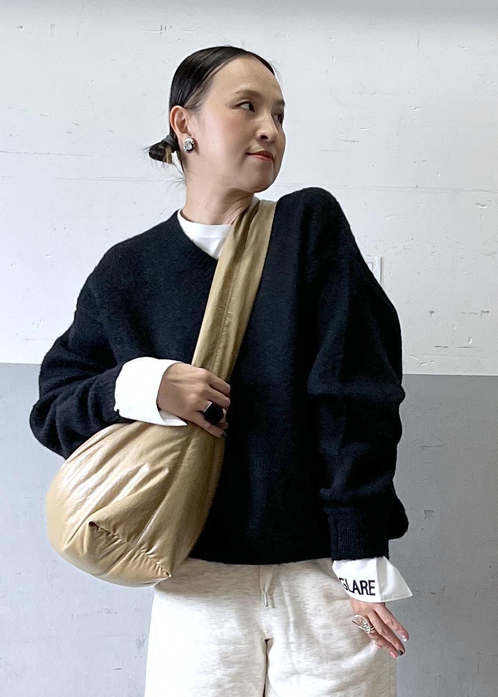 メンズニットをあえてゆるく取り入れた、大人のリラックススタイル。