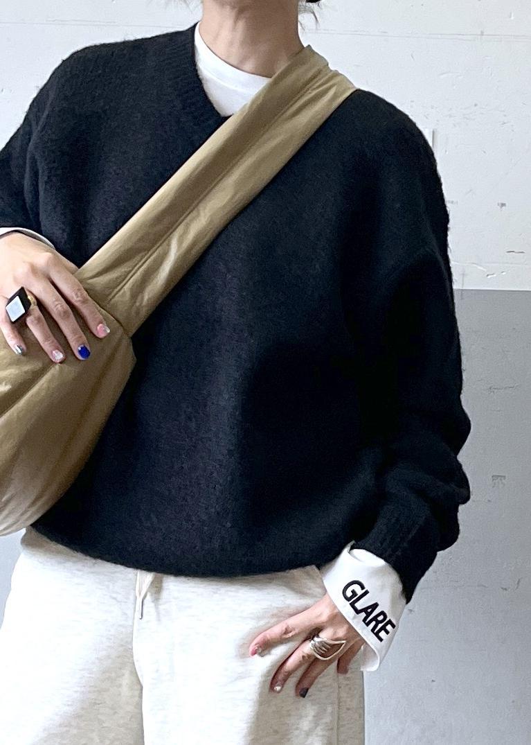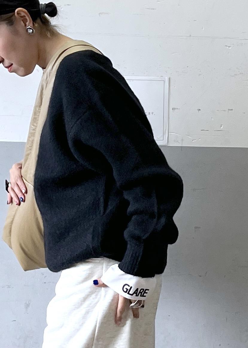 ADAM ET ROPÉ HOMMEモヘアミックス オーバーサイズ Vネックニットブラック / M¥16,940レビュー毎シーズン人気のモヘアニットです。毛抜けはほとんどなくストレスフリーで着用して頂けます。身長166cmでMサイズ着用。ゆるりと着れました。Vネックで程よい抜け感があります。Tシャツをレイヤードするのもオススメです。