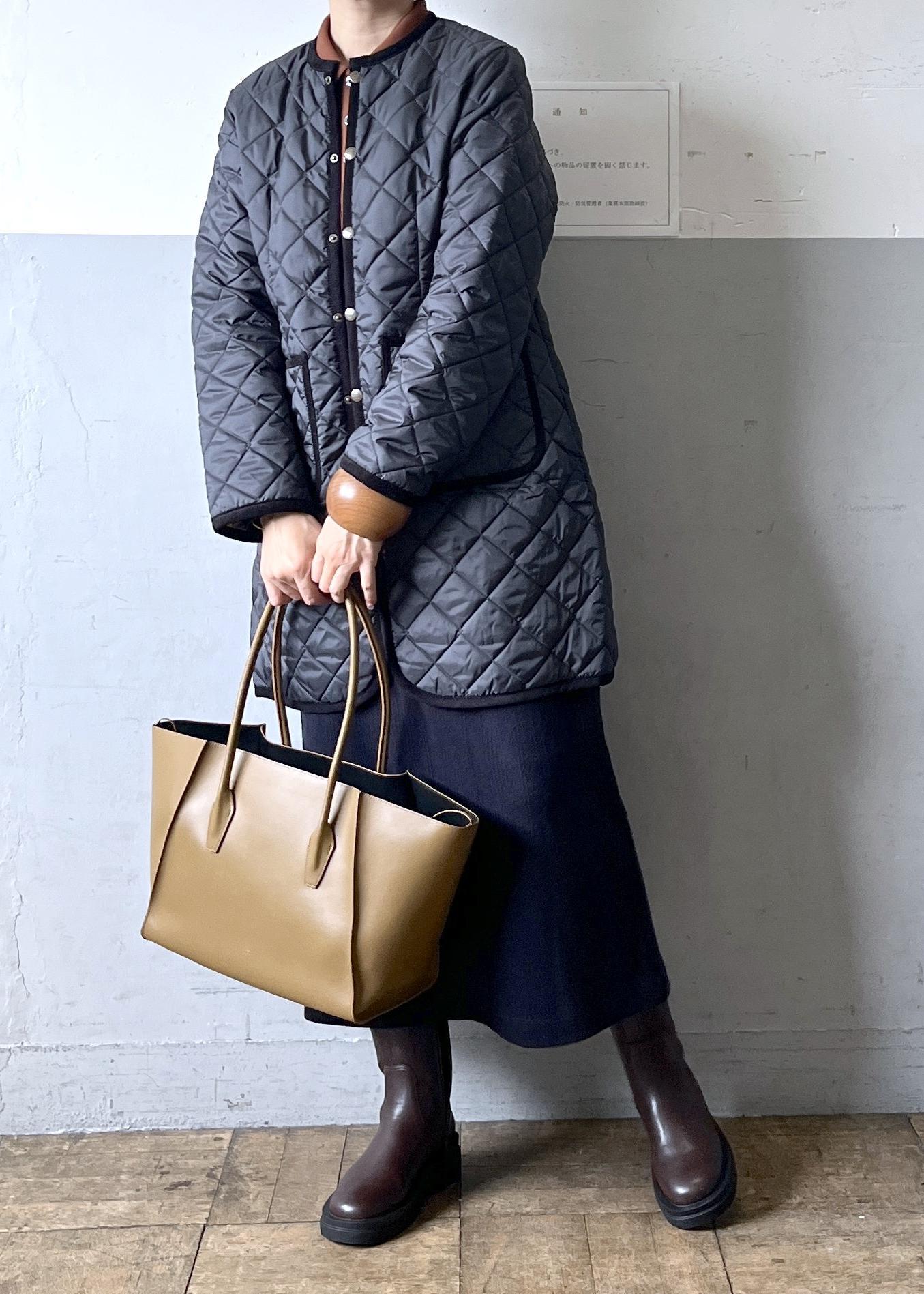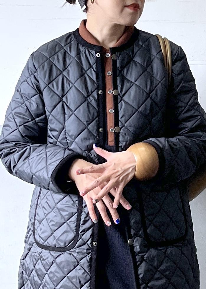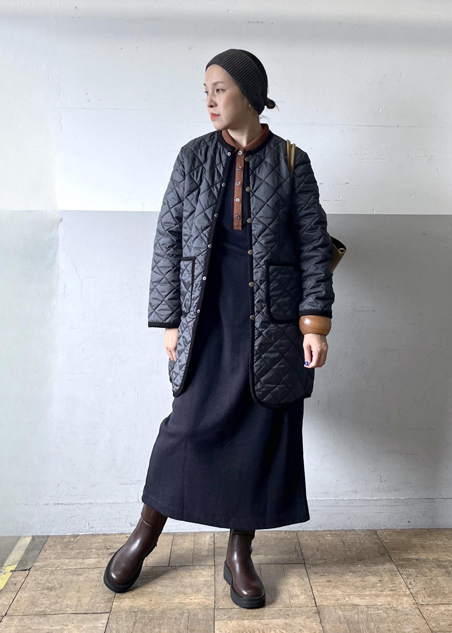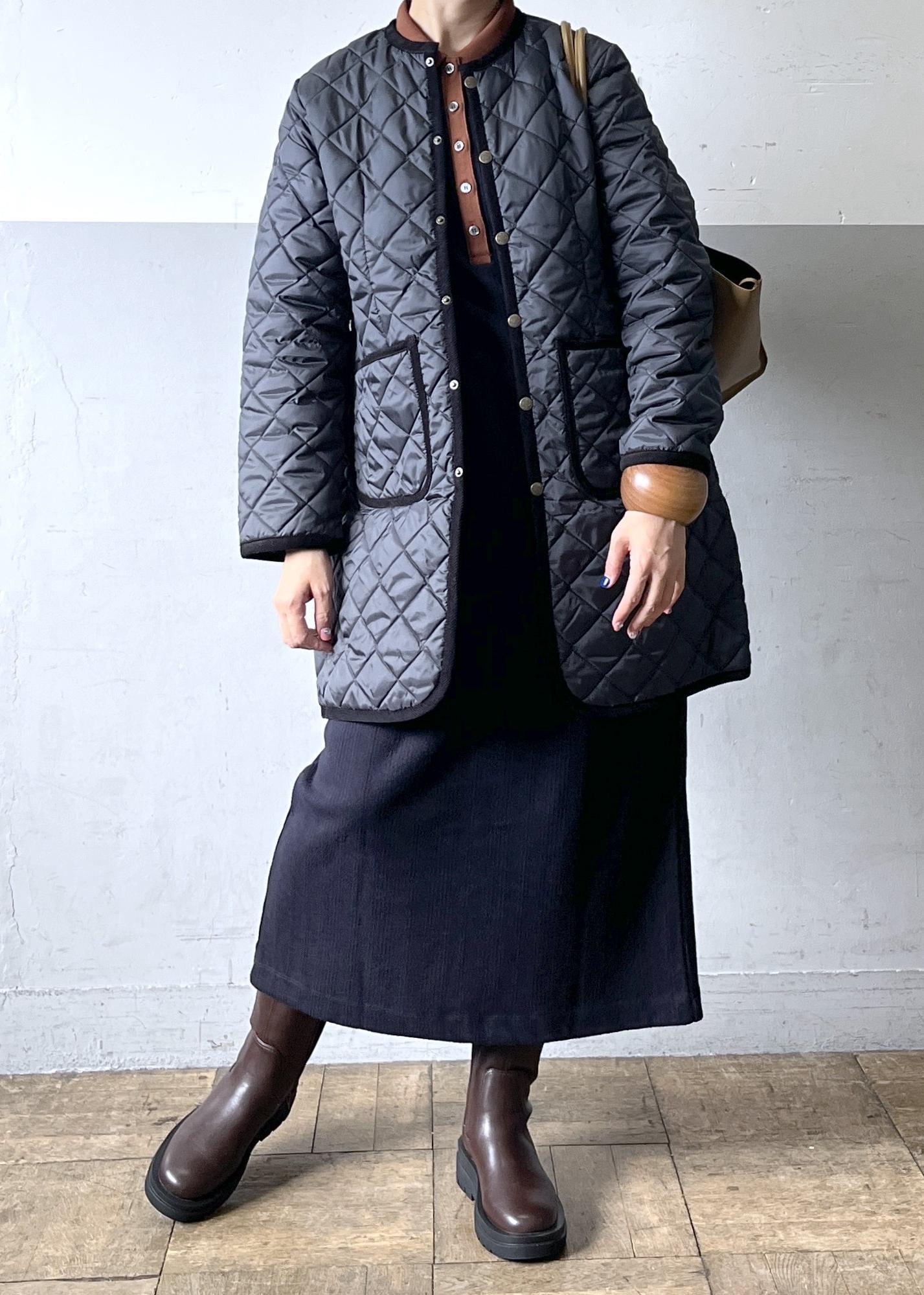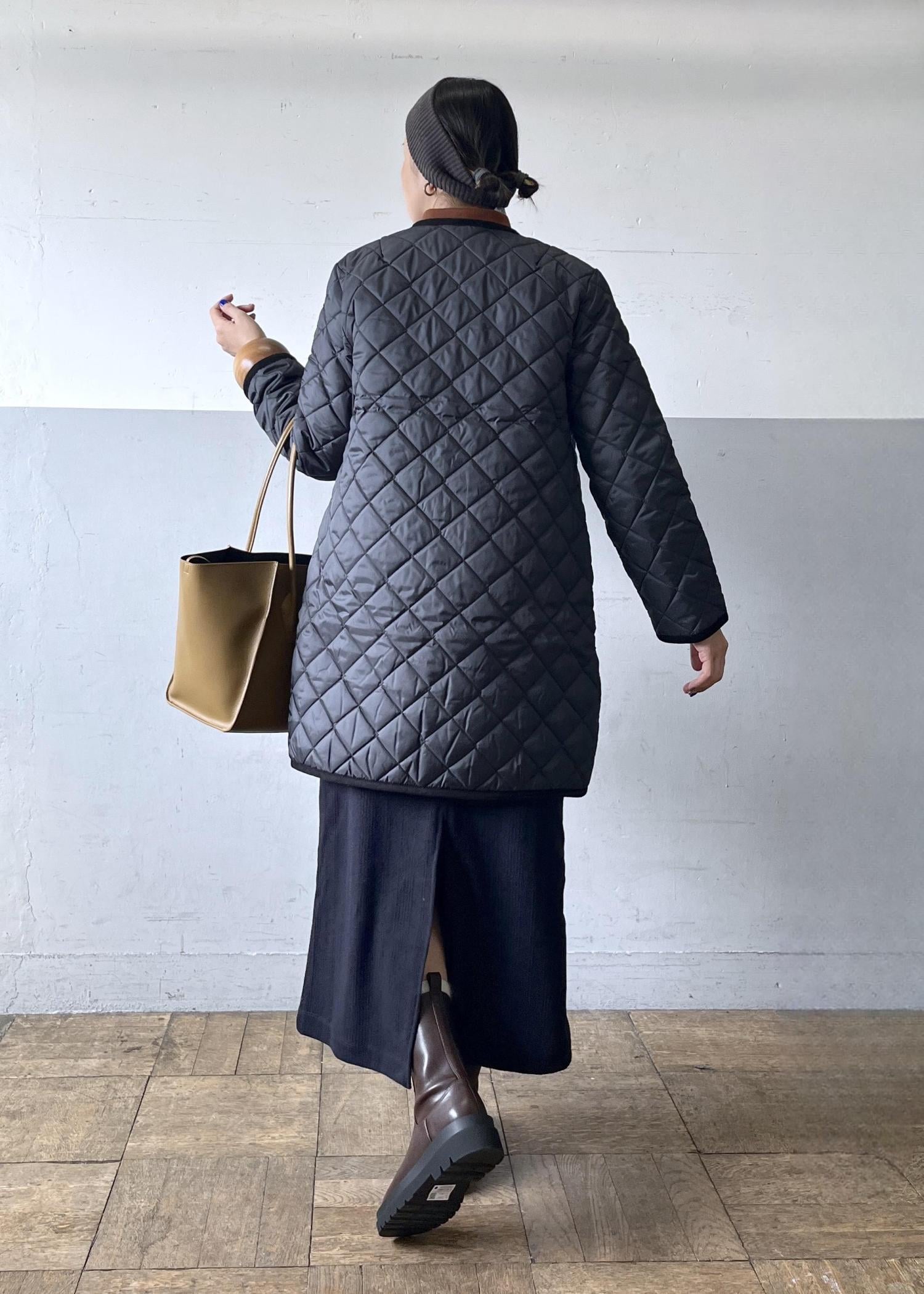 ラベンハムのキルティングコートを羽織った大人カジュアルスタイル。