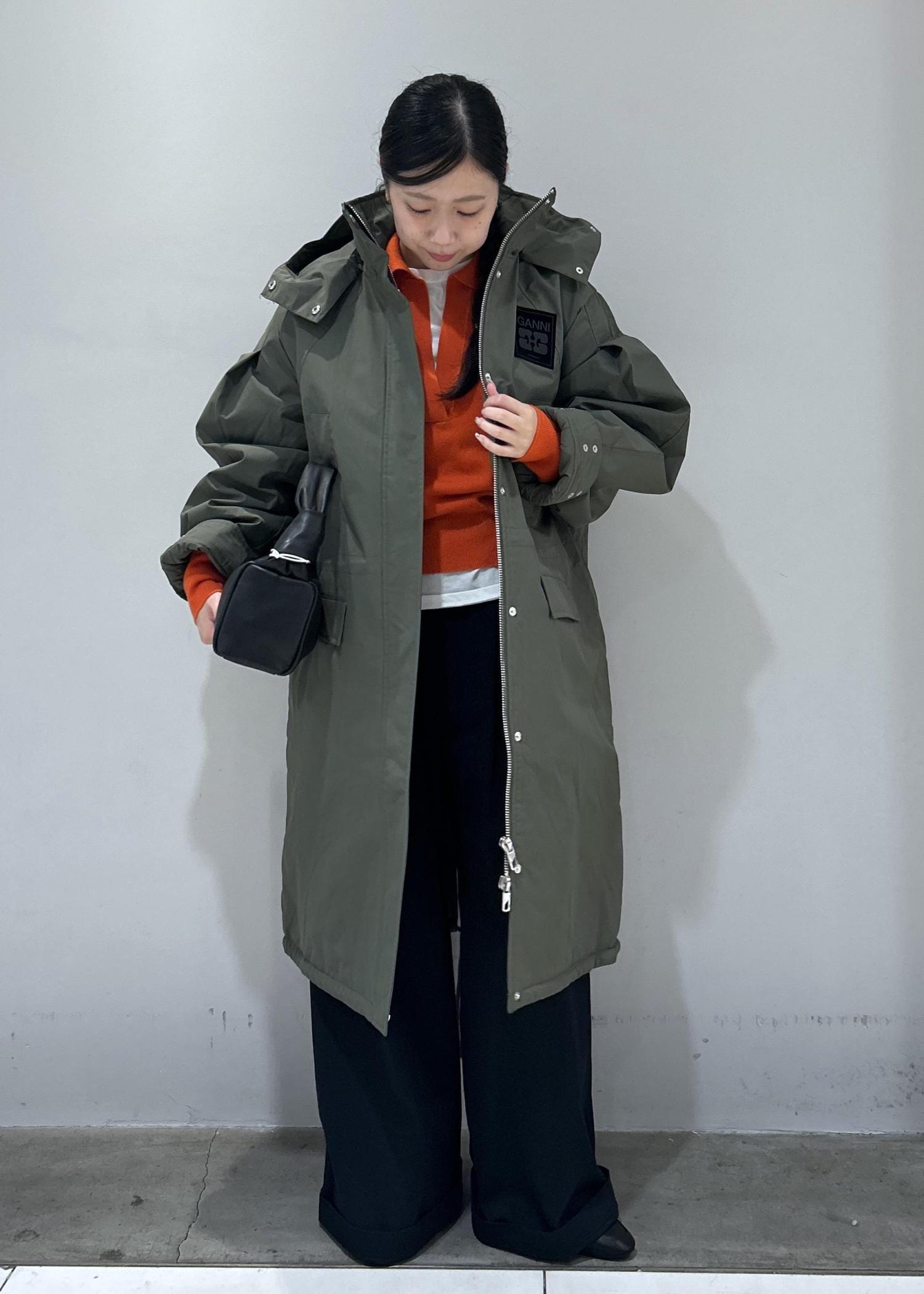 GANNIのロゴが入ったキルティングデザイナなっており、少し重さはありますが、とても保温性があるので寒さ対策はバッチリです☺︎