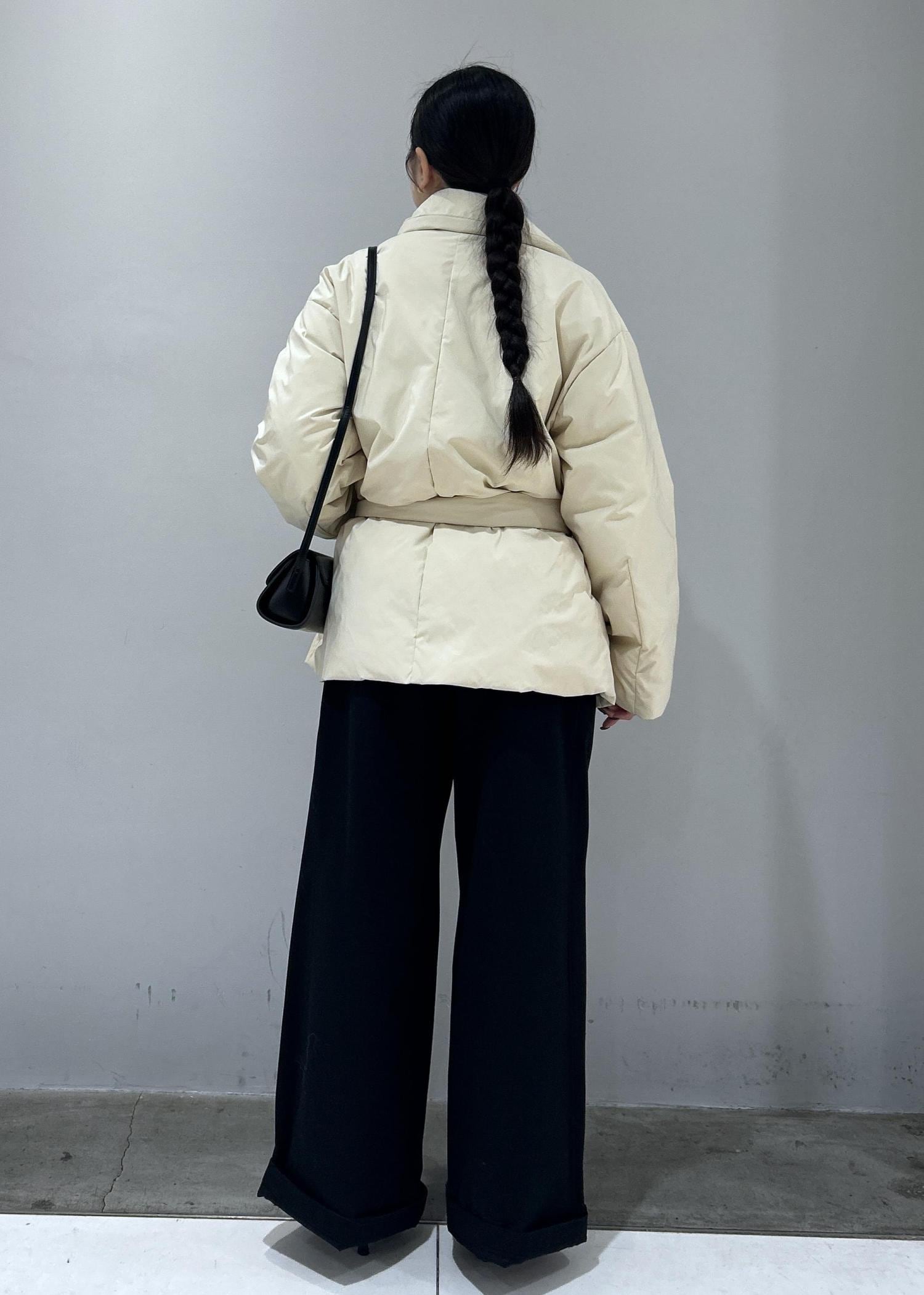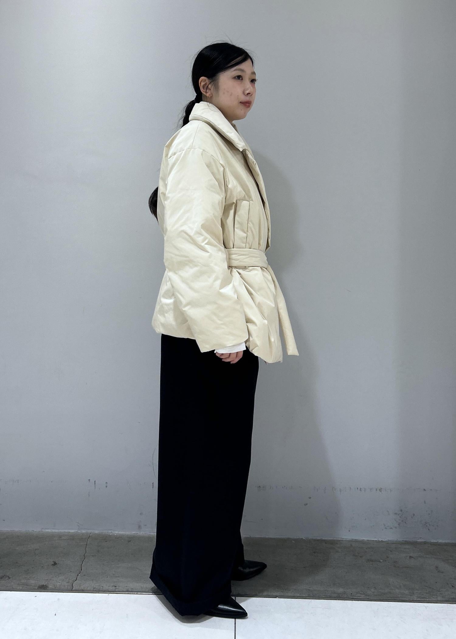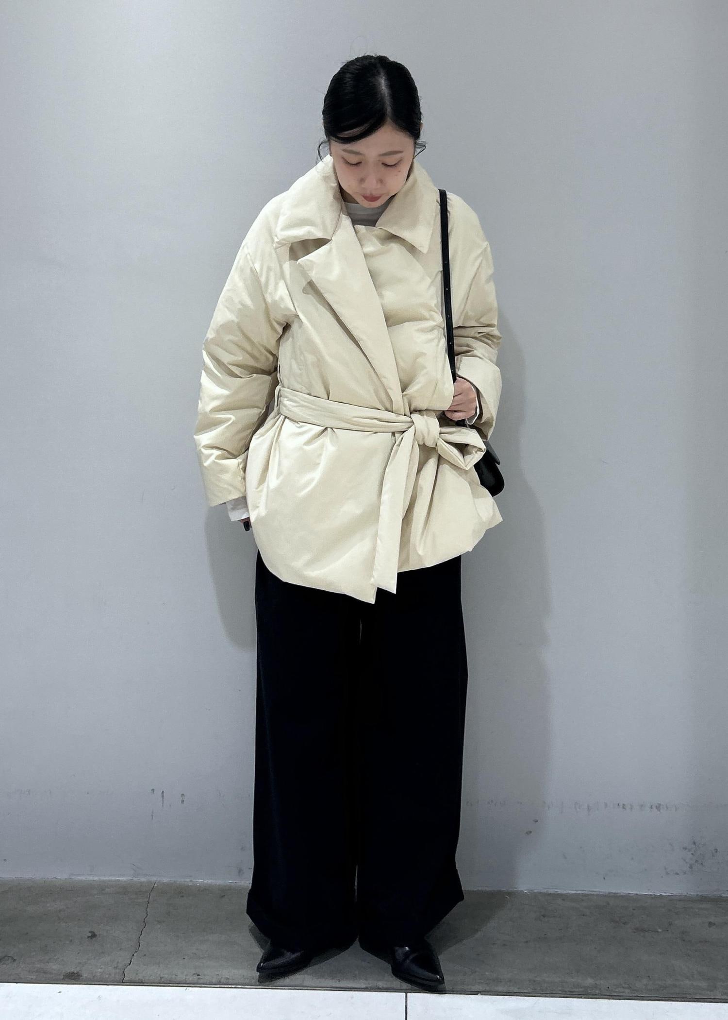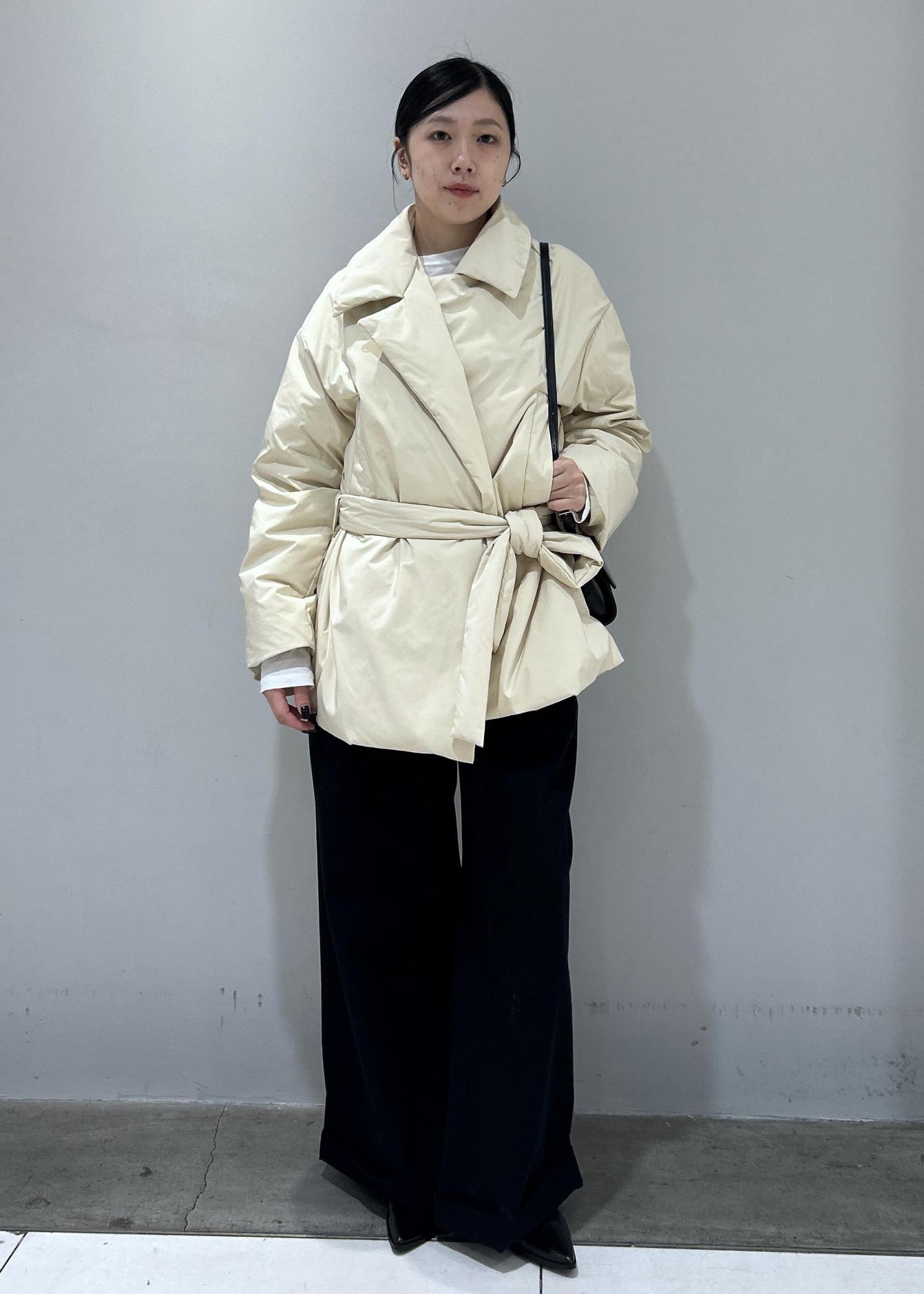 一般的なダウンよりも、キレイめかつモードよりなアイテムです。モコモコしすぎず、でもしっかり暖かく着ていただけます◎