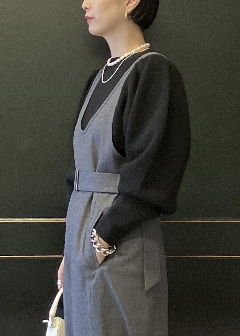 中に着ているニットも袖にデザインがあり、