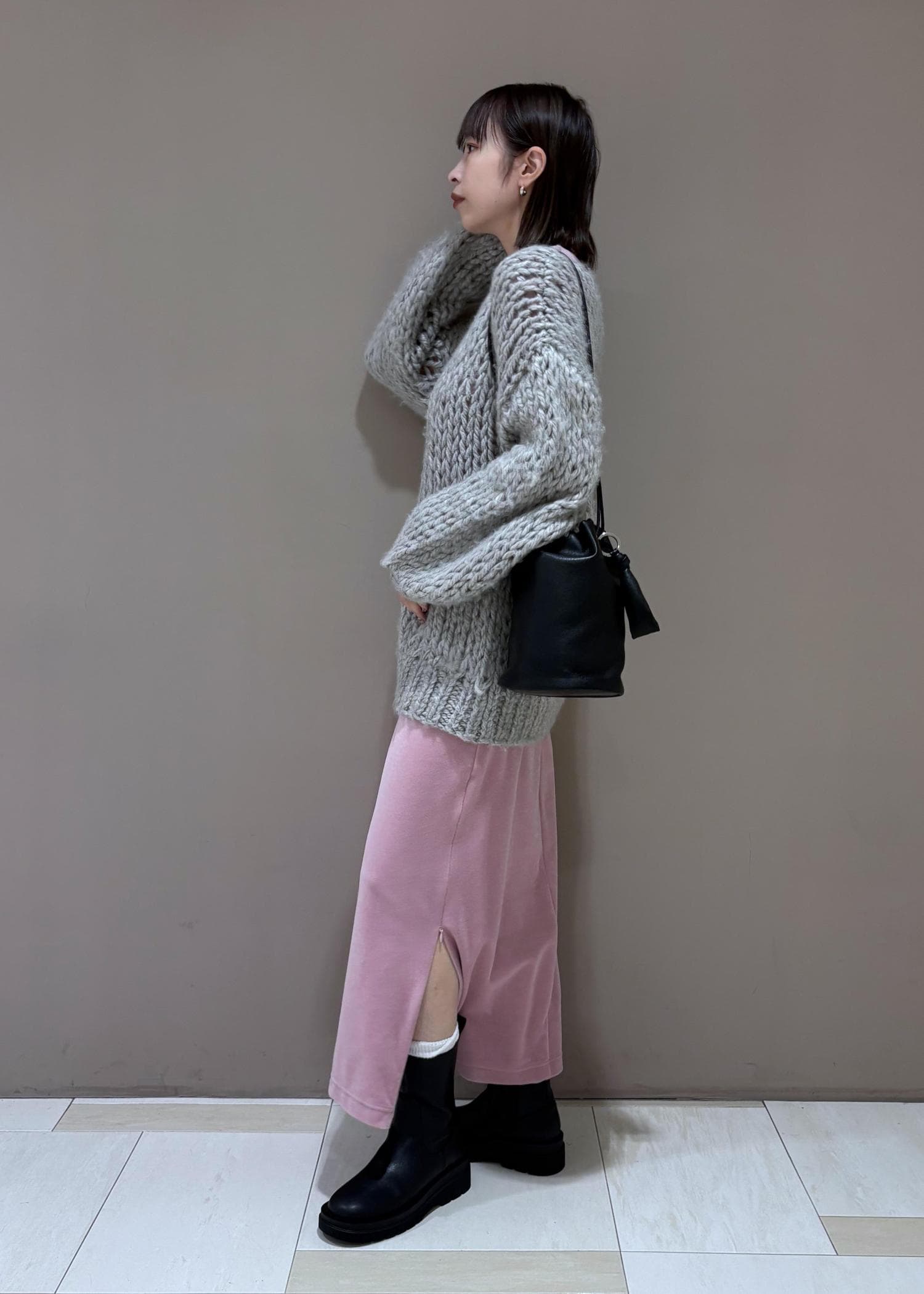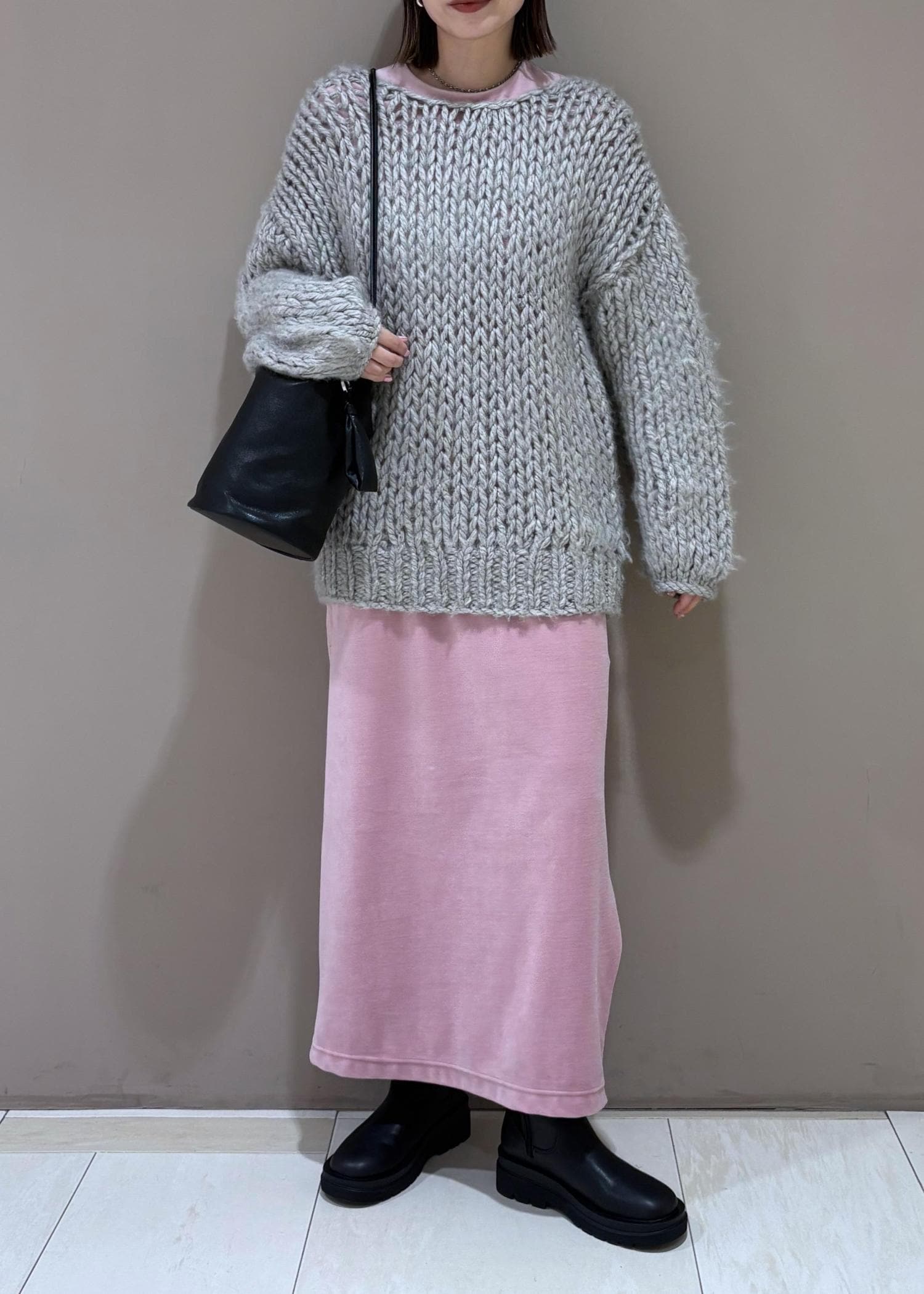 高身長の方でも、ざっくりボリュームのあるシルエットでゆったり着用できます。 -