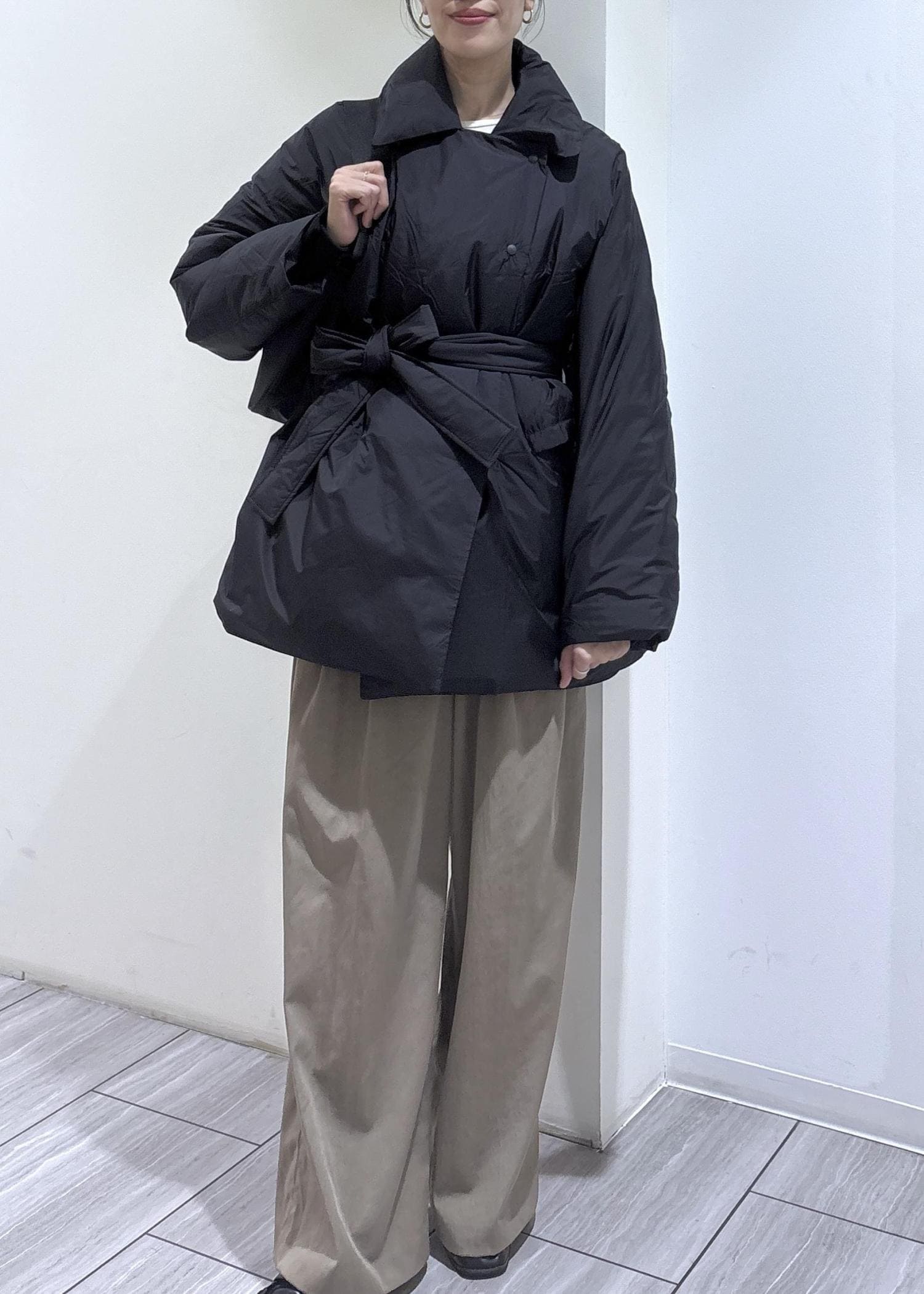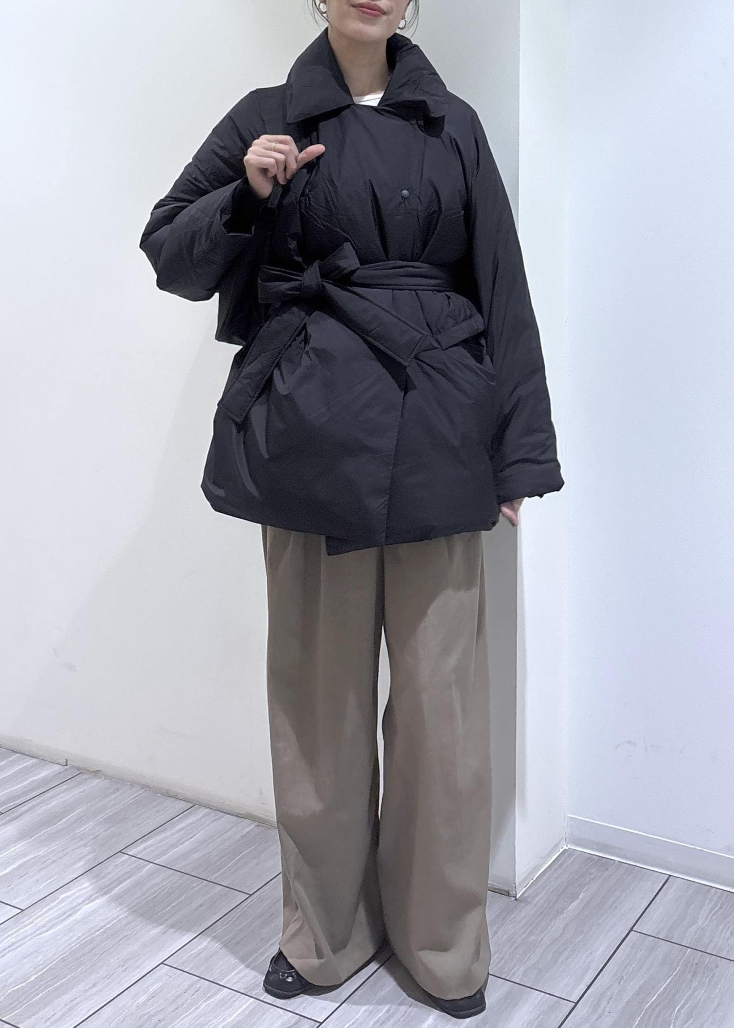 カシュクールで大人っぽく、前を閉めても羽織ってもサマになる万能ダウン。